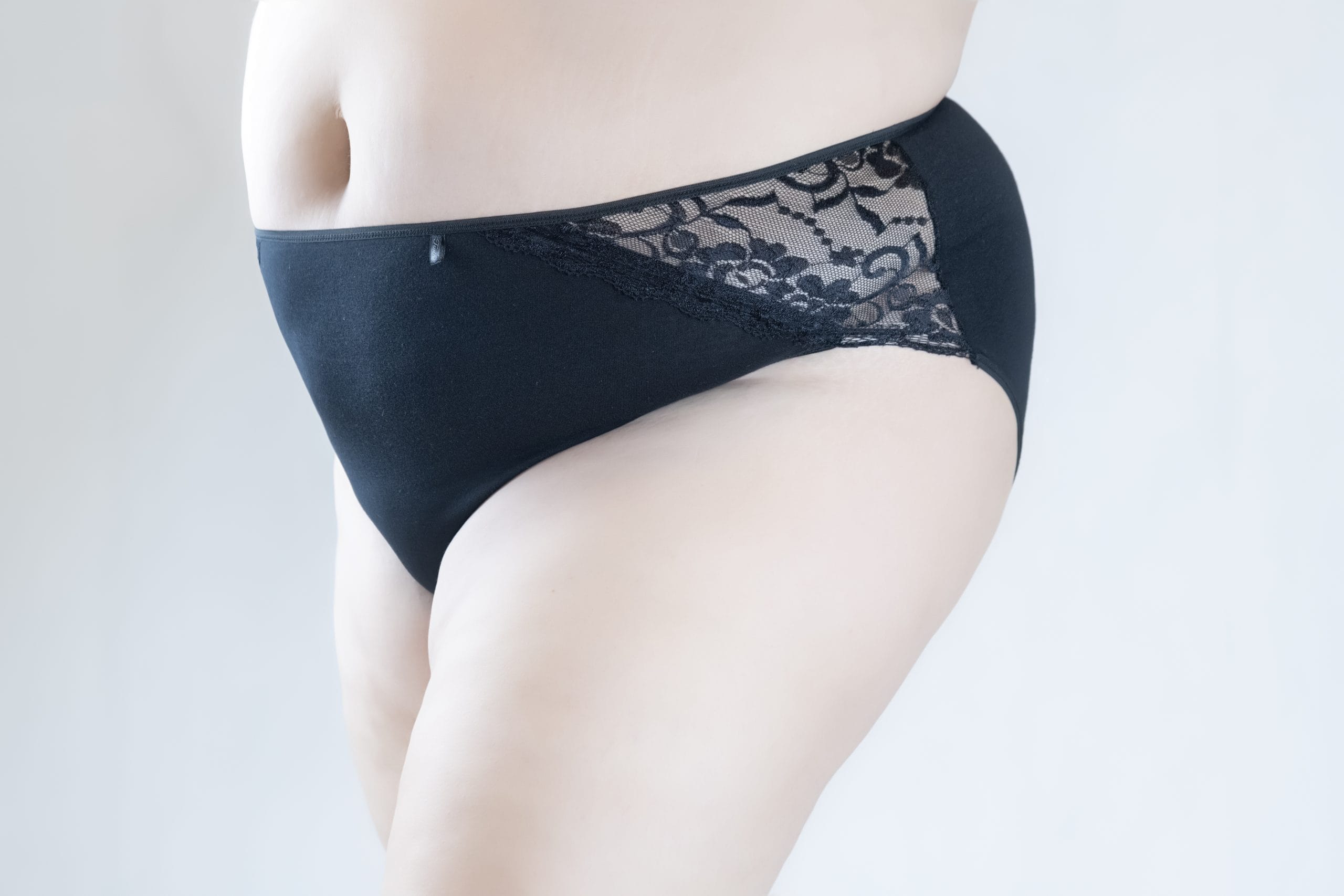 Γυναικείο βαμβακερό μαύρο σλιπ, ψηλόμεσο, με απαλό εξωτερικό λάστιχο και λοξή δαντέλα στο πλάι. Ελληνικής κατασκευής.