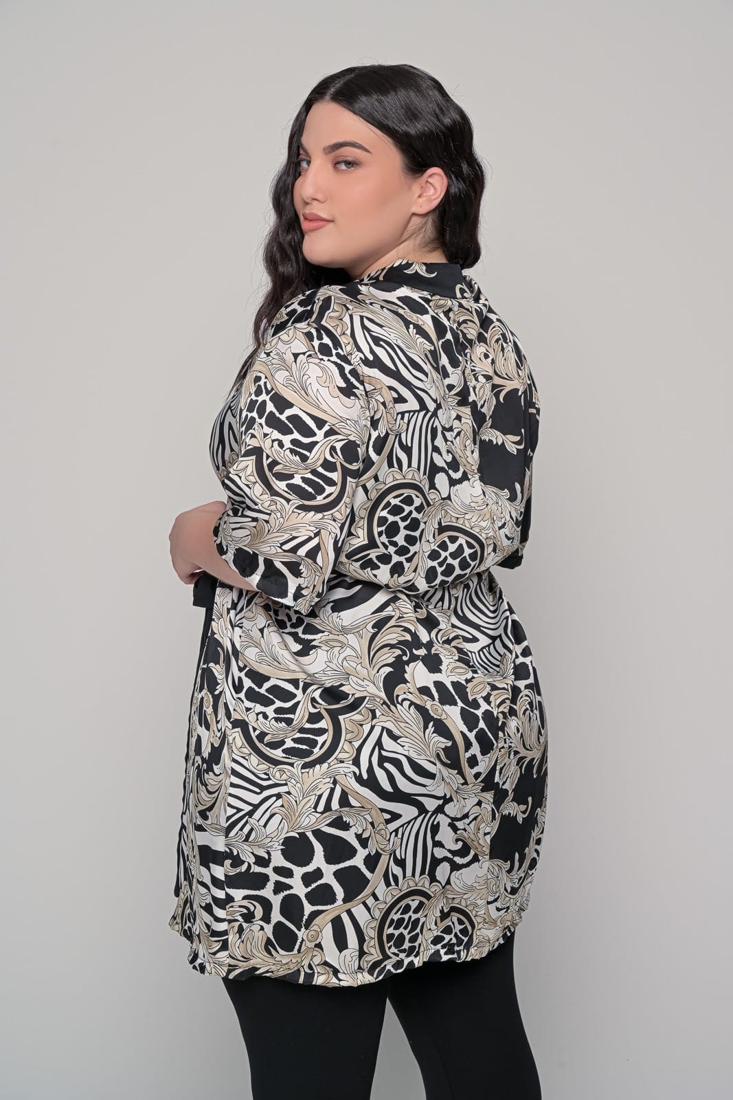 Αυτό το plus size εμπριμέ κιμονό είναι το απόλυτο ευέλικτο κομμάτι που θα δώσει αμέσως έναν αέρα μοντέρνου στυλ σε κάθε σας σύνολο. Είναι το ιδανικό ελαφρύ πανωφόρι για τη μεταβατική περίοδο, ικανό να μεταμορφώσει μια απλή εμφάνιση σε κάτι πραγματικά ξεχωριστό.