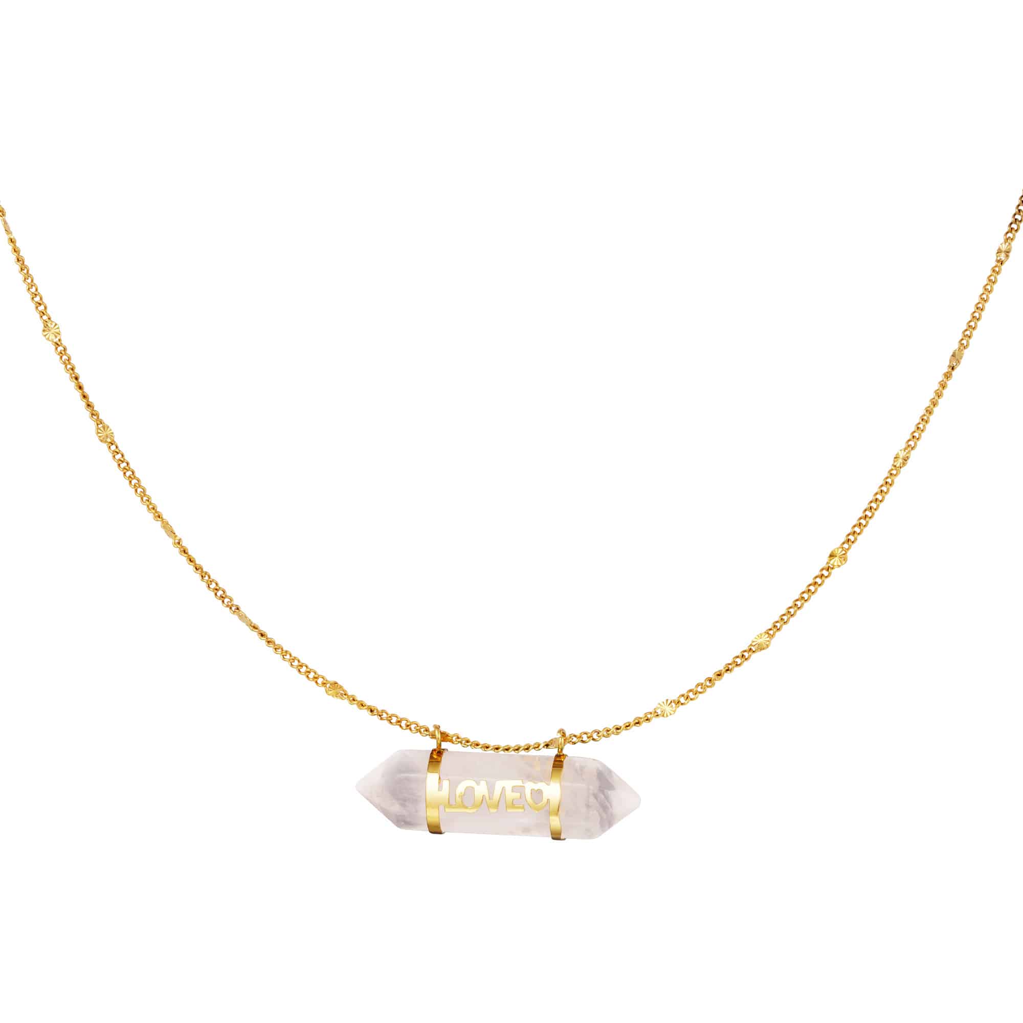 Κολιέ από ανοξείδωτο ατσάλι με φυσική πέτρα σε σχήμα σφαίρας με τη λέξη Love.