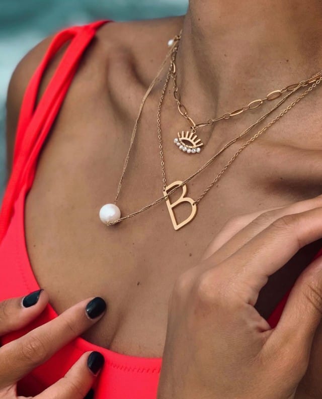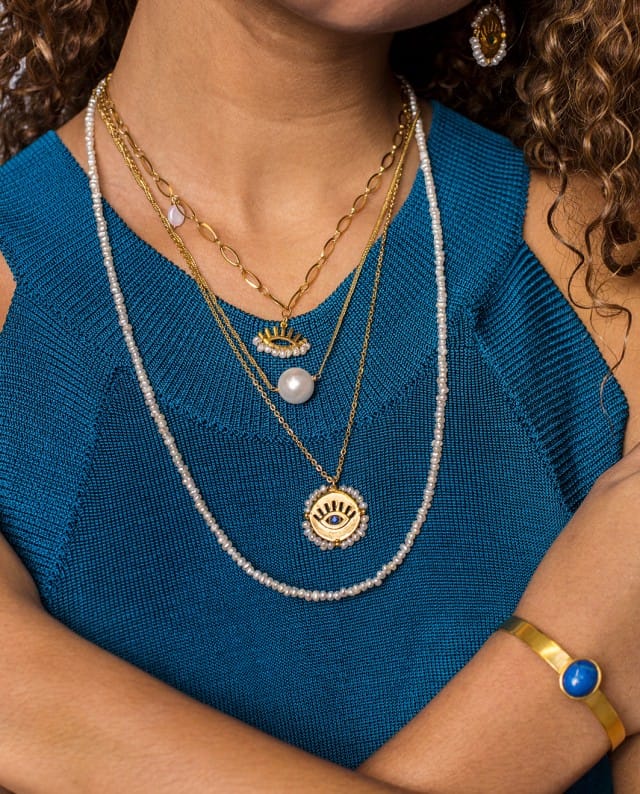 Χειροποίητο κολιέ με μεταλλική επιχρυσωμένη αλυσίδα & διακοσμητικές πέρλες γλυκού νερού.