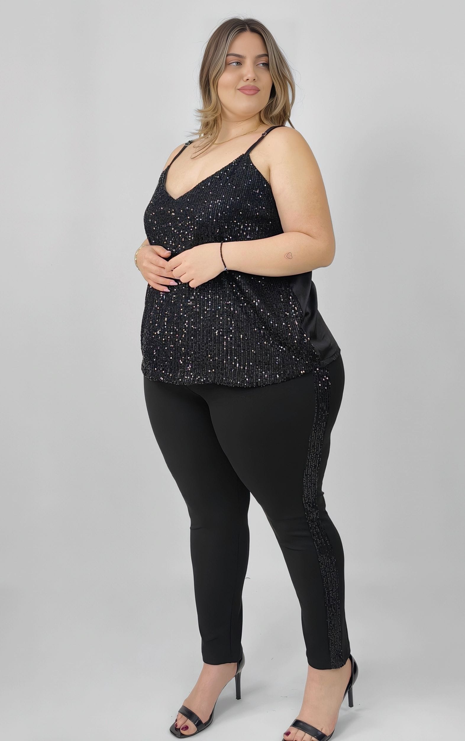 Το μαύρο plus size lingerie με παγιέτα είναι ένα εντυπωσιακό κομμάτι, απαραίτητο σε κάθε γκαρνταρόμπα με γυναικεία νούμερα σε μεγάλα μεγέθη. Το μπροστινό μέρος διαθέτει διπλό ύφασμα για άνετη εφαρμογή και το λεπτό ραντάκι προσαρμόζεται εύκολα σε κάθε σώμα.  Κάθε λεπτομέρεια σχεδιάστηκε με προσοχή για να προσφέρει μια εκλεπτυσμένη αίσθηση πολυτέλειας και στυλ, αποπνέοντας αυτοπεποίθηση και γοητεία. Είναι η ιδανική επιλογή για να αναδείξετε τη θηλυκότητά σας με έναν διακριτικό, αλλά εντυπωσιακό τρόπο.