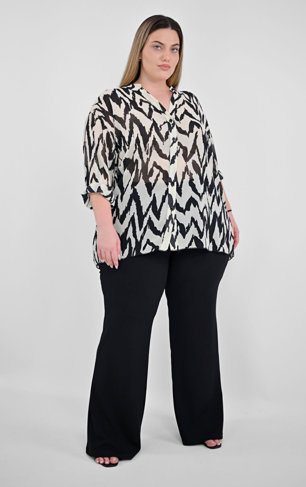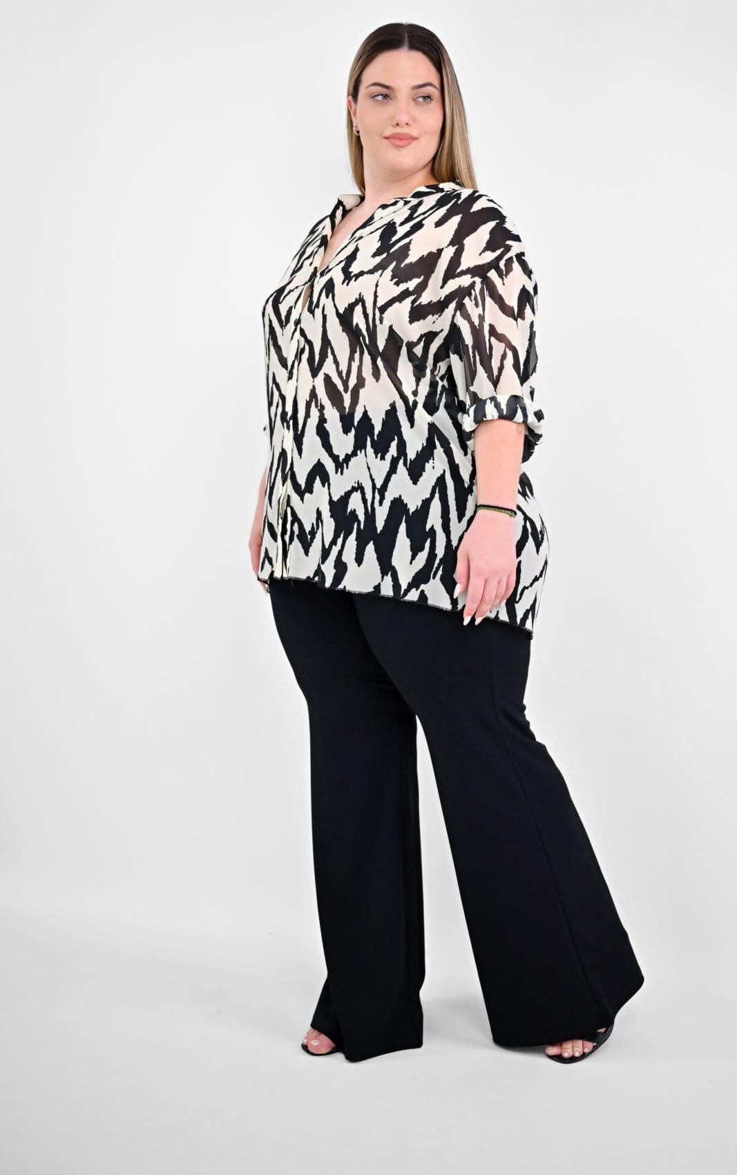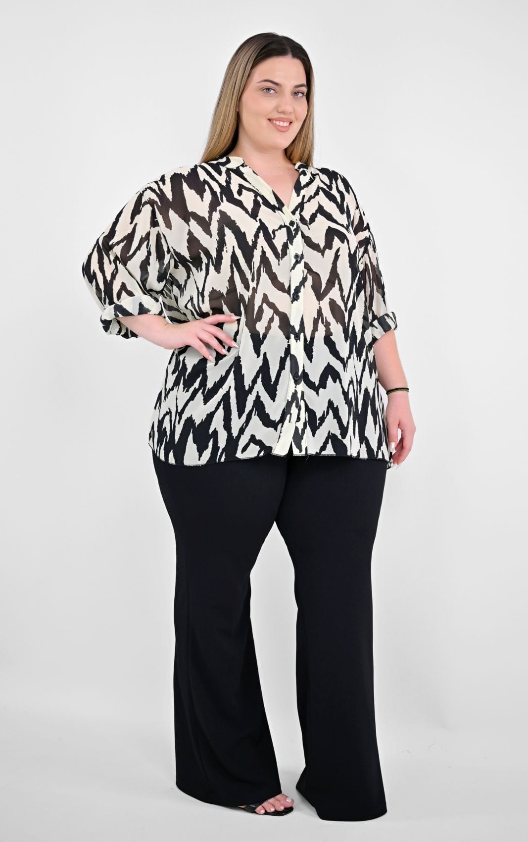Το μαύρο ψηλόμεσο plus size παντελόνι καμπάνα είναι το απόλυτα διαχρονικό trend!! Αποτελεί αναπόσπαστο κομμάτι κάθε γκαρνταρόμπας με γυναικεία ρούχα σε μεγάλα μεγέθη. Φτιαγμένο από ελαστικό κρέπ ύφασμα, παρέχει τέλεια εφαρμογή και εξαιρετική άνεση, ενώ η καμπάνα γραμμή αναδεικνύει το σύνολο. Αυτό το παντελόνι αγκαλιάζει και σμιλεύει υπέροχα την περιφέρεια, δίνοντας μια εντυπωσιακή εμφάνιση. Ο συνδυασμός άνεσης και στυλ καθιστά αυτό το παντελόνι μια ιδανική επιλογή για κάθε περίσταση. Συνοδέψτε το με ένα κομψό τοπ ή μπλούζα, με σακάκι ή ακόμα και με μπουφάν για μια εντυπωσιακή εμφάνιση που θα σας ξεχωρίσει, όλην τη διάρκεια της ημέρας.