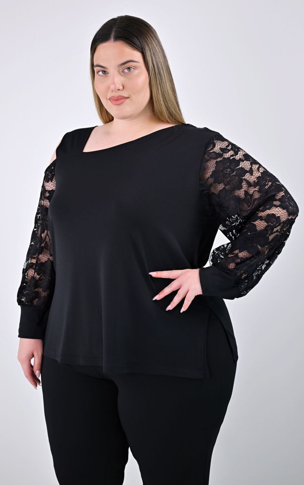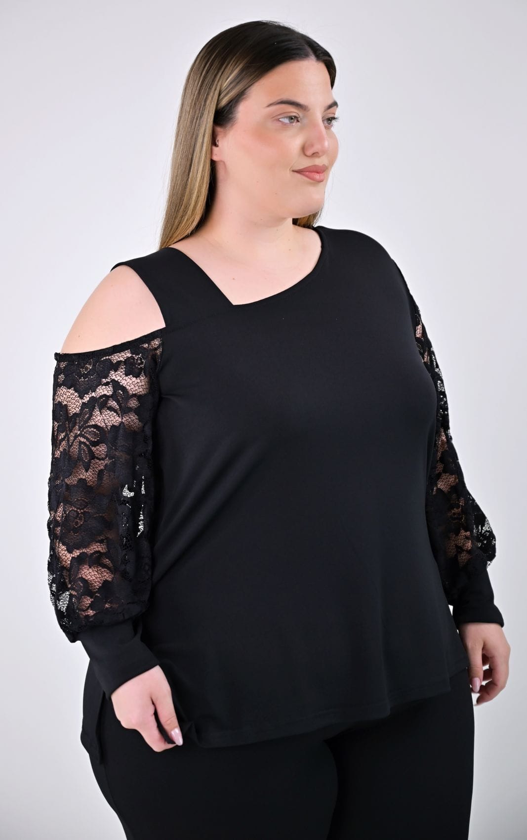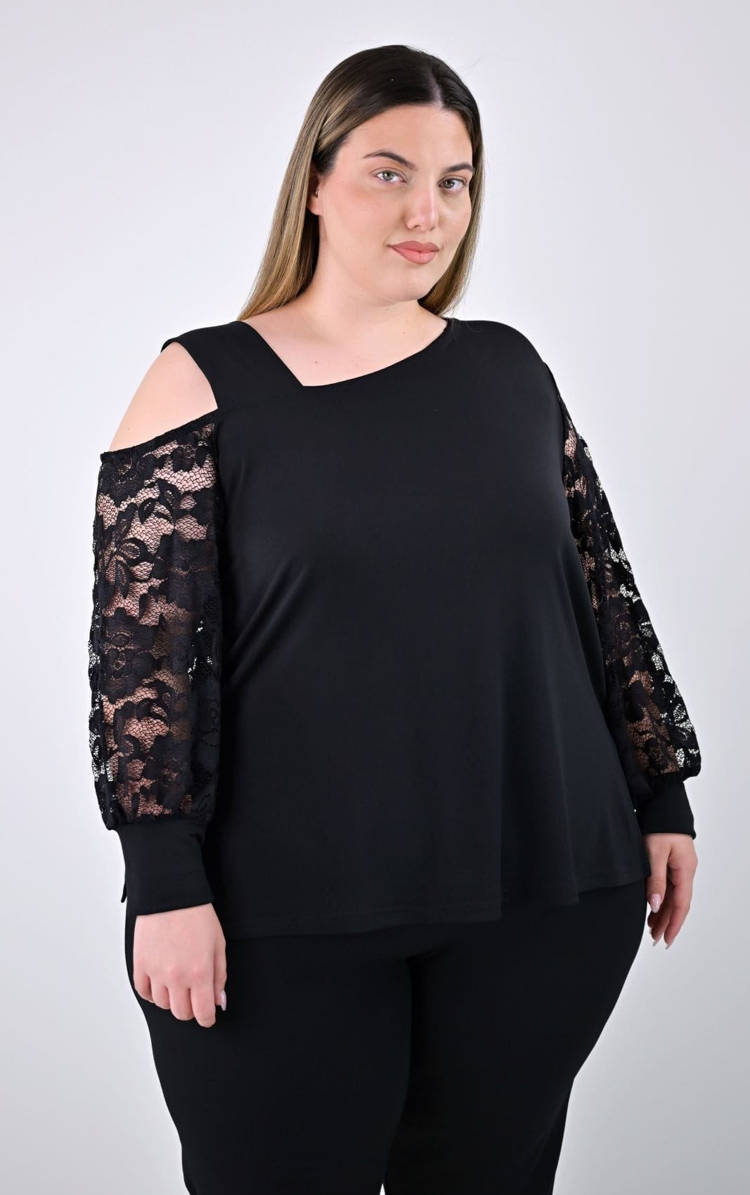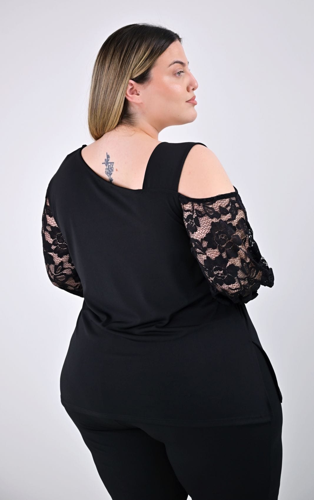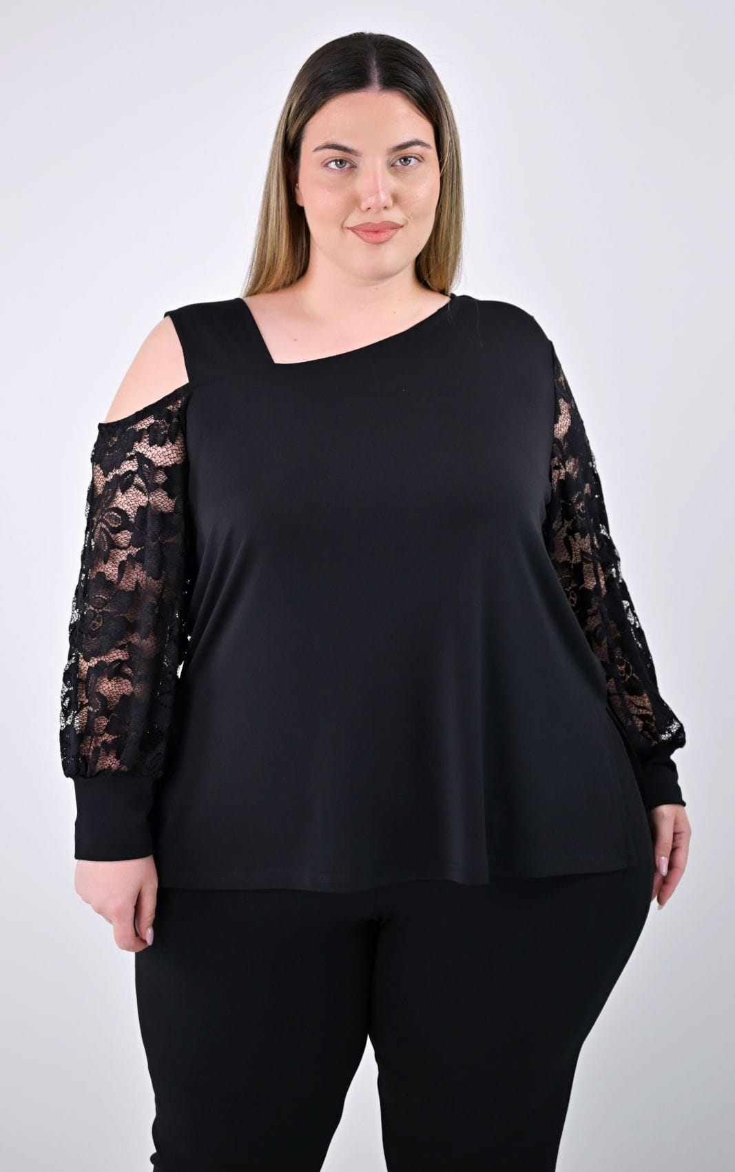 Μπλούζα Μαύρη με Δαντέλα και Έναν Ώμο Έξω