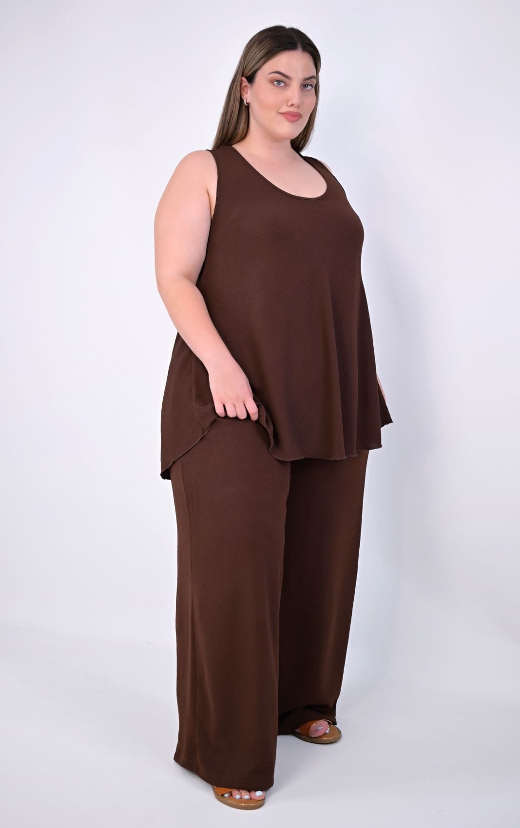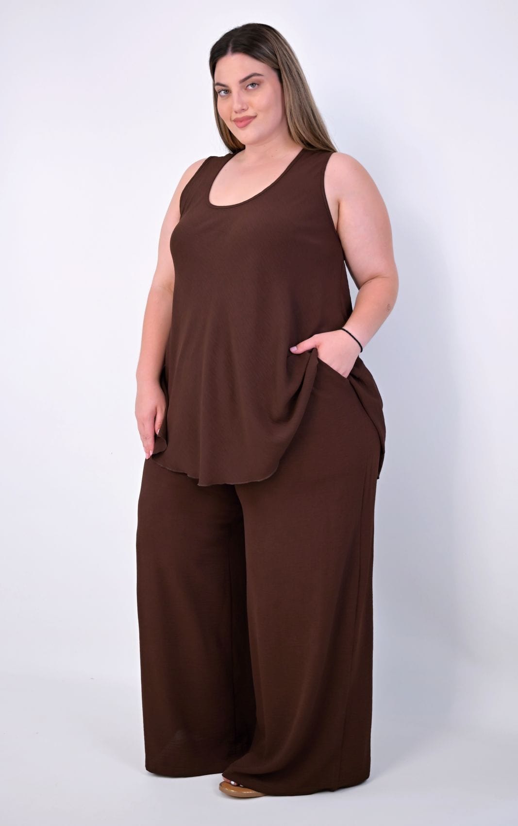 Αποκτήστε την plus size καφέ παντελόνα που συνδυάζει την απόλυτη άνεση με το σύγχρονο, χαλαρό στυλ!