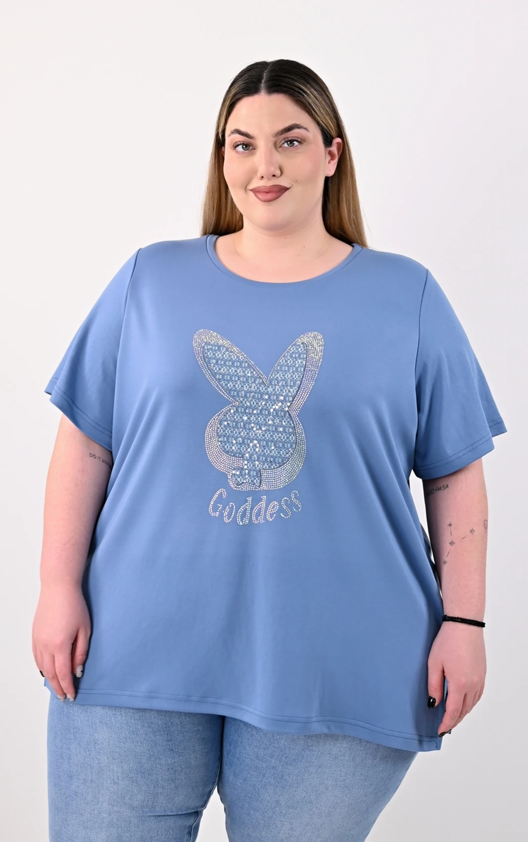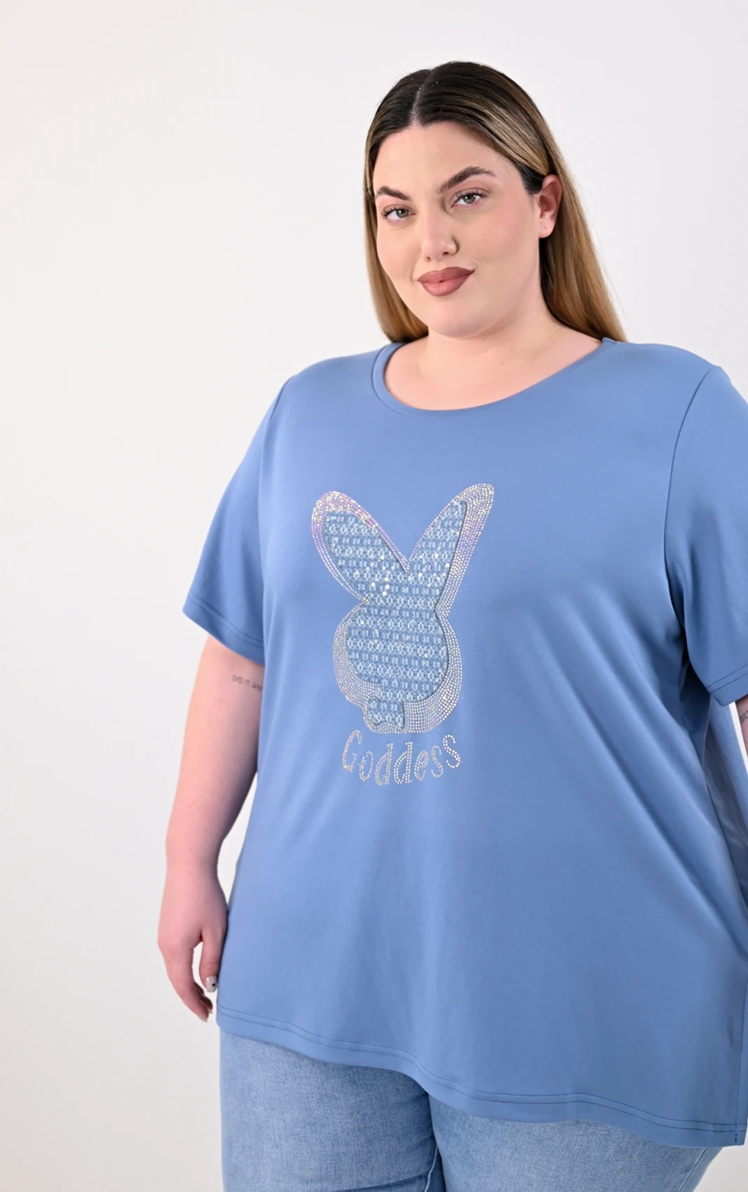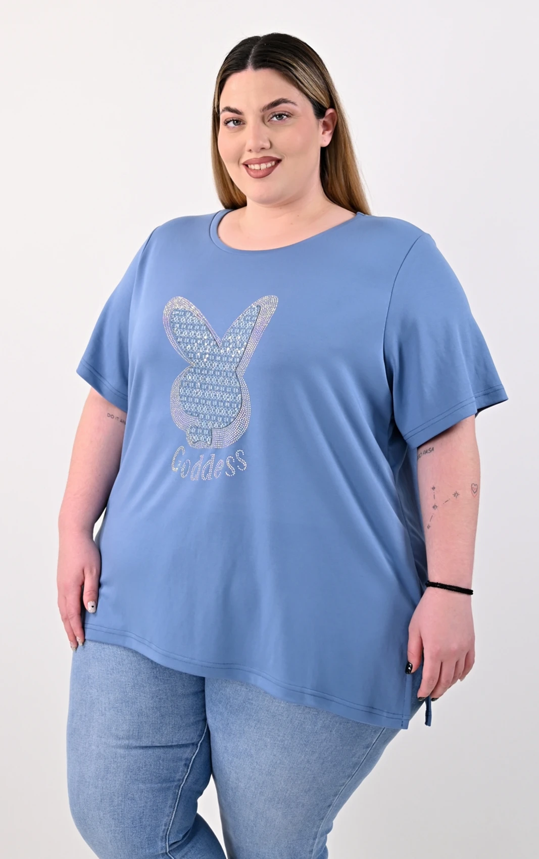 Μια καθημερινή μπλούζα που συνδυάζει την πραγματική άνεση με μια καλαίσθητη εμφάνιση. Σε μια όμορφη μπλε απόχρωση, το συγκεκριμένο κομμάτι ξεχωρίζει χάρη στο εντυπωσιακό σχέδιο με στρασάκια και λάμψη στο μπροστινό μέρος. Η άνετη γραμμή της εξασφαλίζει ελευθερία σε κάθε σας κίνηση, κάνοντάς τη μια ιδανική επιλογή για όλες τις ώρες της ημέρας.