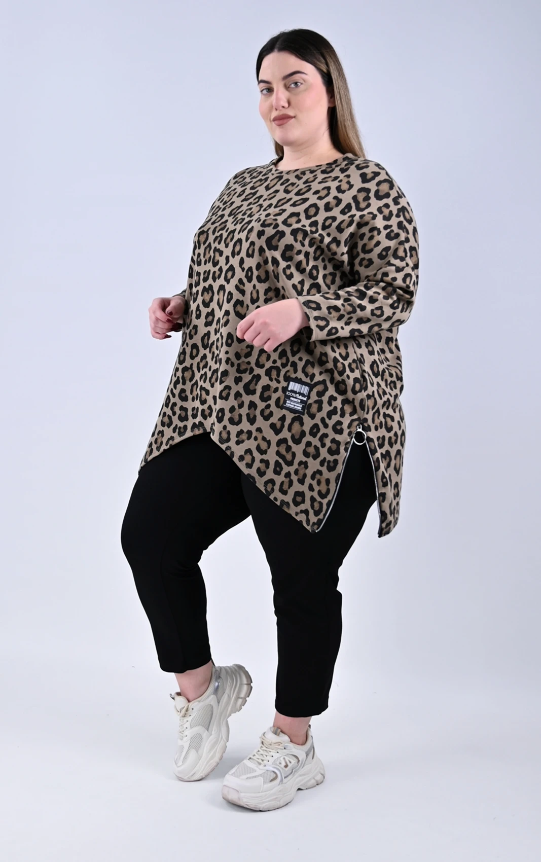 Ανανεώστε την καθημερινή σας γκαρνταρόμπα με αυτή τη μοντέρνα και άνετη μπλούζα. Συνδυάζοντας το διαχρονικό leopard print σε μια κλασική μπεζ απόχρωση, αυτή η μπλούζα προσφέρει ένα στυλάτο αποτέλεσμα χωρίς καμία προσπάθεια. Η φαρδιά, ασύμμετρη γραμμή της χαρίζει ελευθερία κινήσεων και μια ιδιαίτερα κολακευτική εφαρμογή, ενώ οι λεπτομέρειες με τα φερμουάρ στα πλαϊνά προσθέτουν μια σύγχρονη πινελιά. Φτιαγμένη από ποιοτικό, μαλακό ύφασμα, είναι η ιδανική επιλογή για άνεση και στυλ από το πρωί μέχρι το βράδυ.
