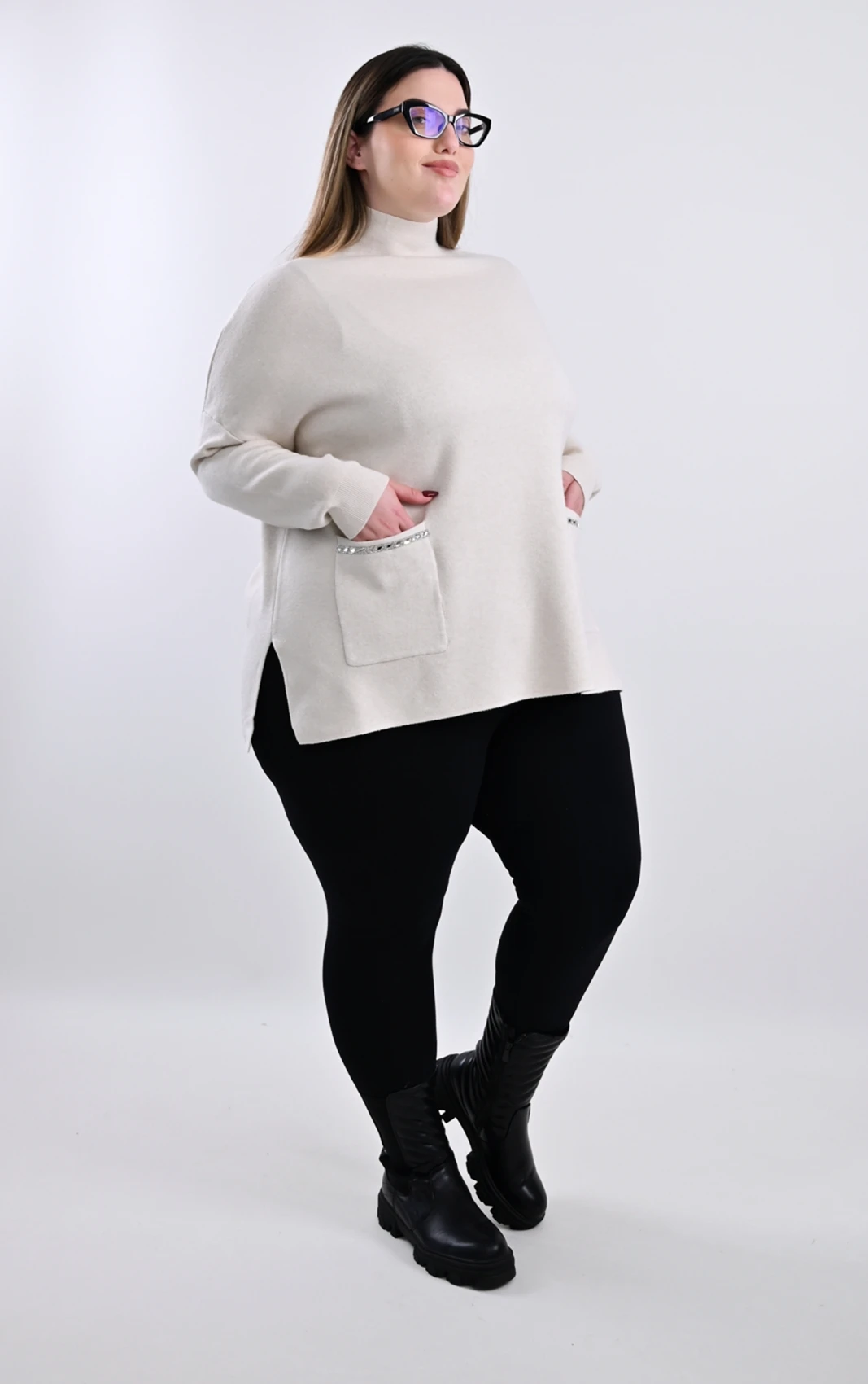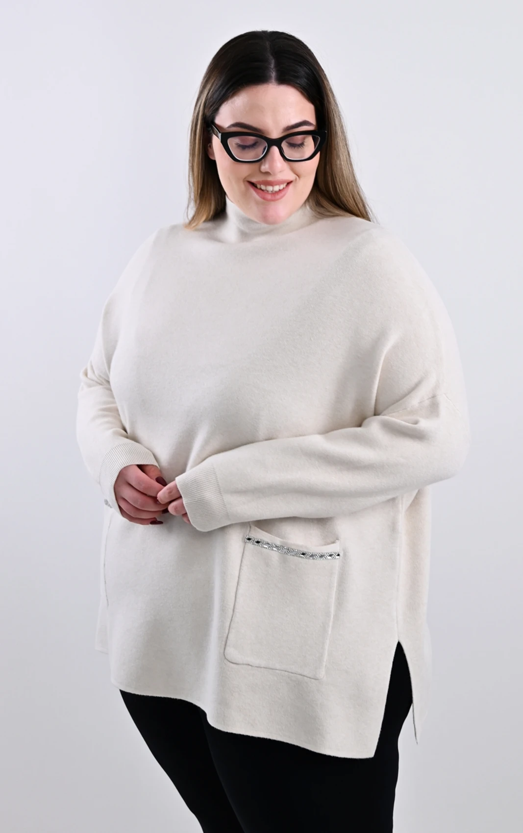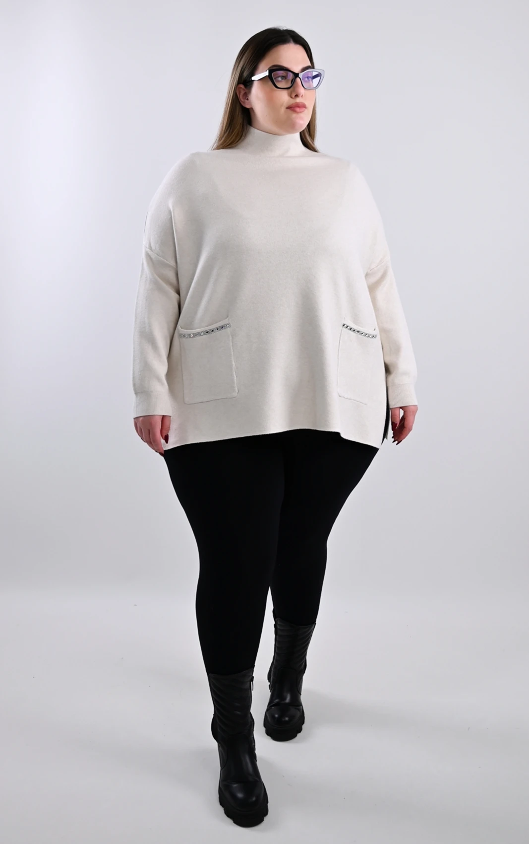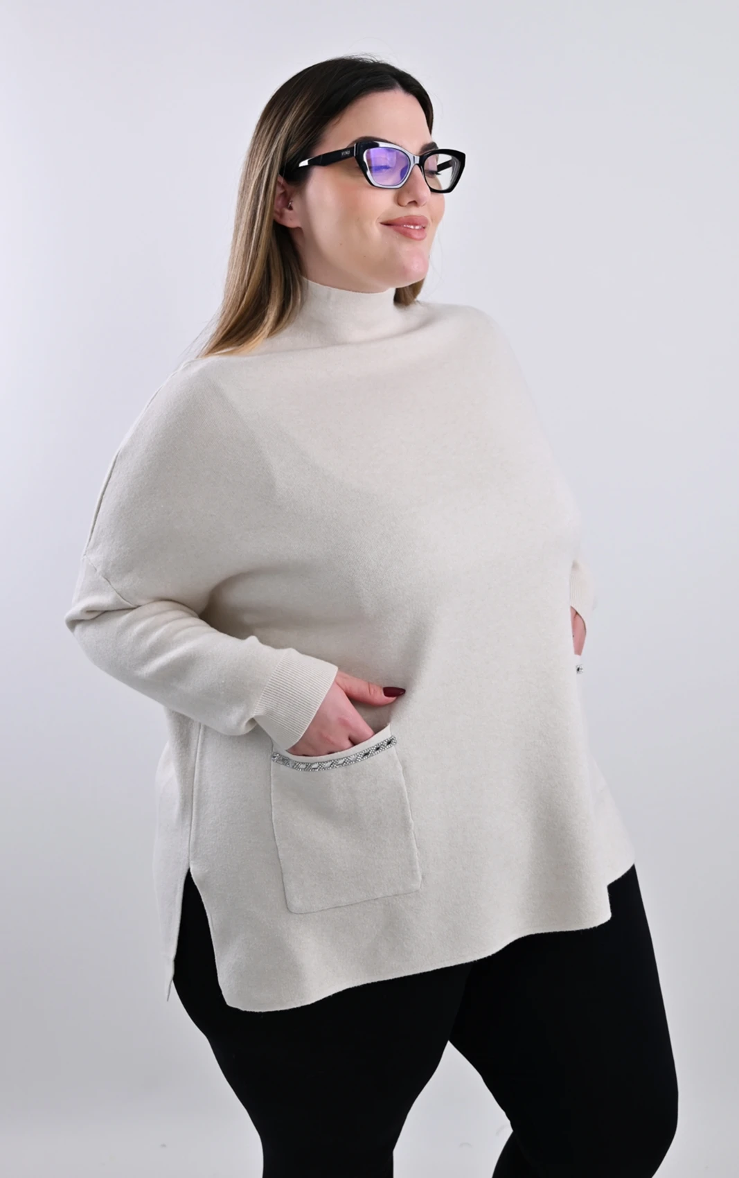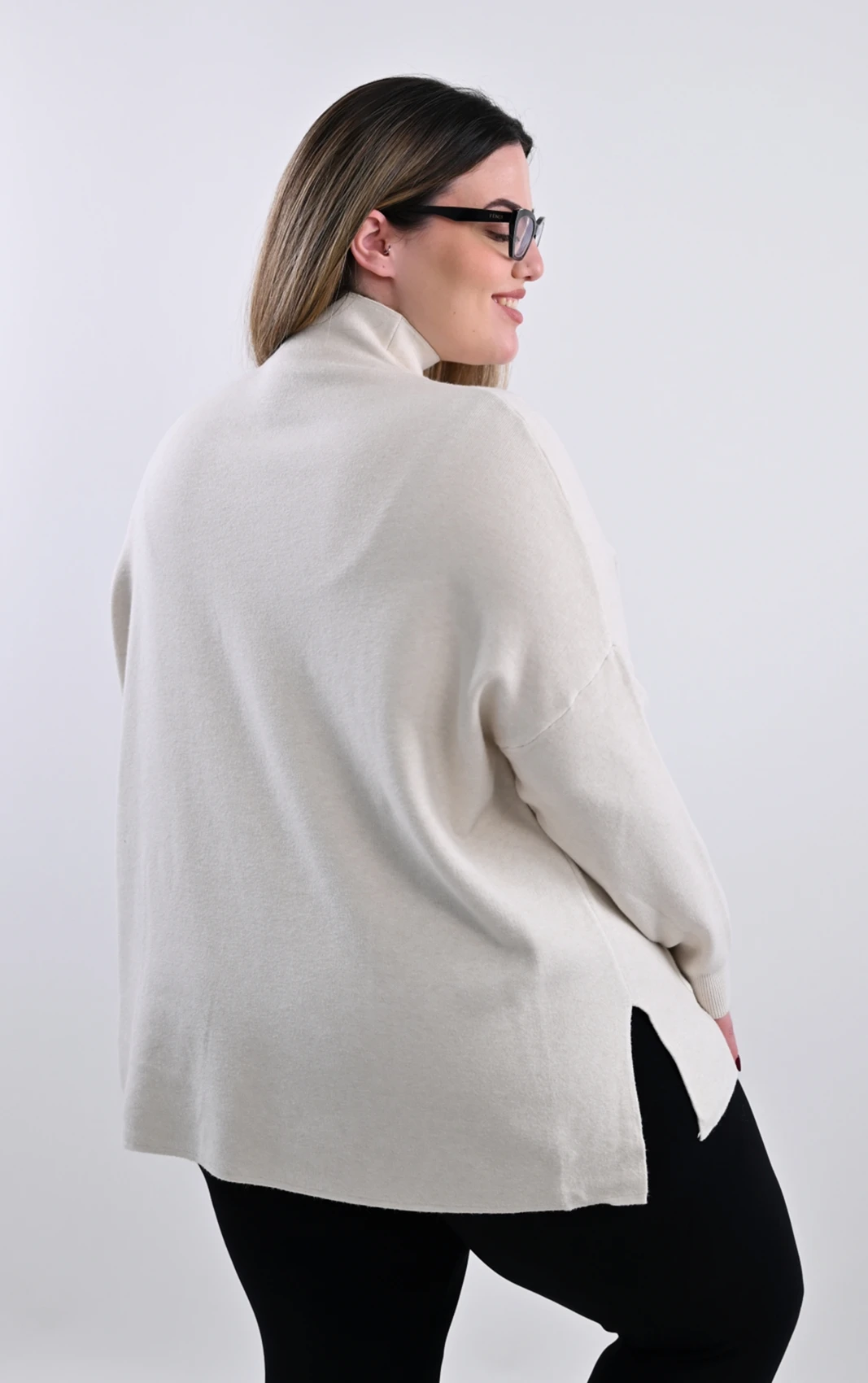 Φωτίστε τις εμφανίσεις σας με αυτή την υπέροχη πλεκτή μπλούζα. Σχεδιασμένη σε μια άνετη, χαλαρή γραμμή που αγκαλιάζει όμορφα το σώμα χωρίς να το περιορίζει, είναι το ιδανικό κομμάτι για plus size σιλουέτες. Η μαλακή, ζεστή πλέξη της προσφέρει μια υπέροχη αίσθηση, κάνοντάς την την τέλεια επιλογή για τις κρύες μέρες.