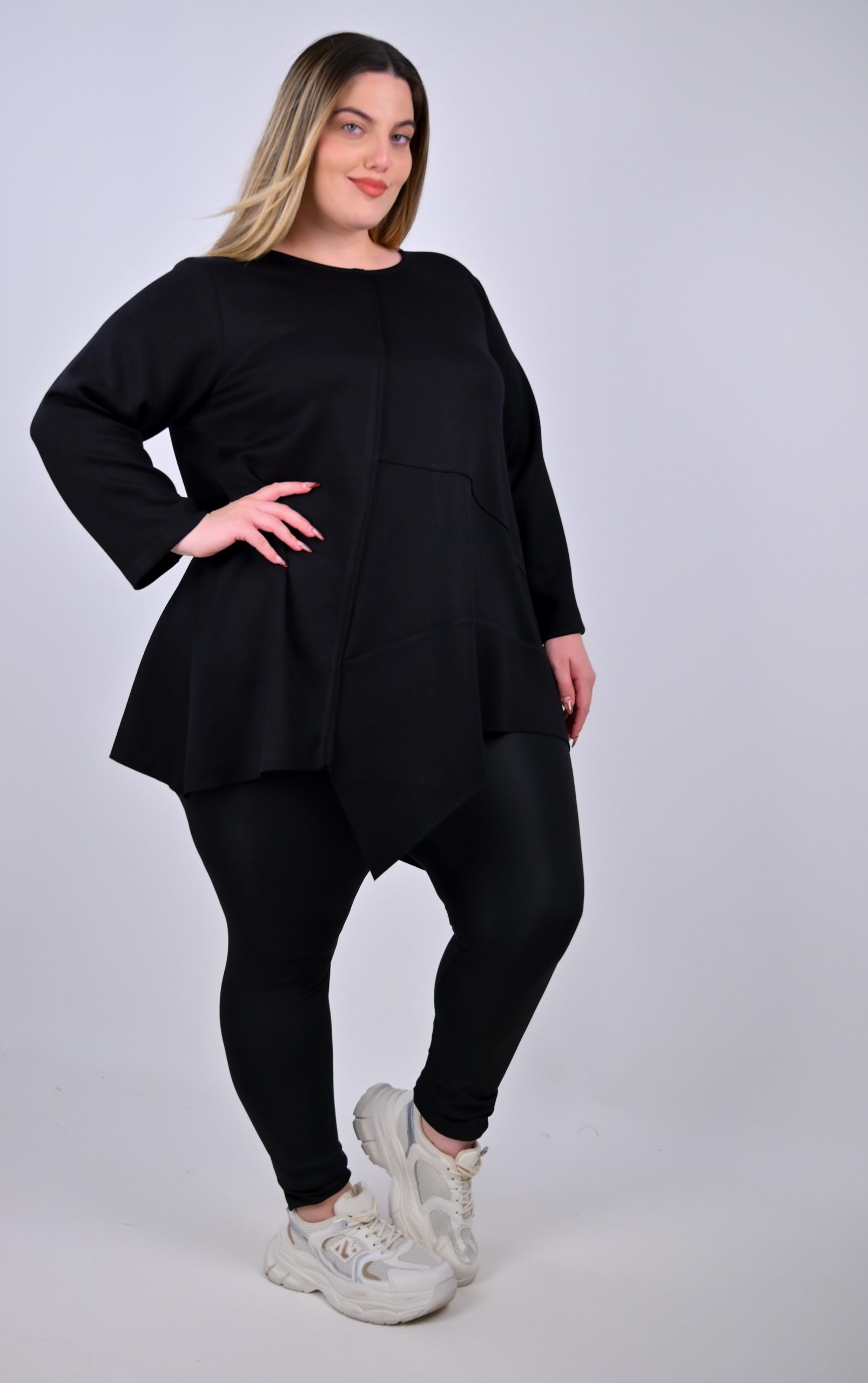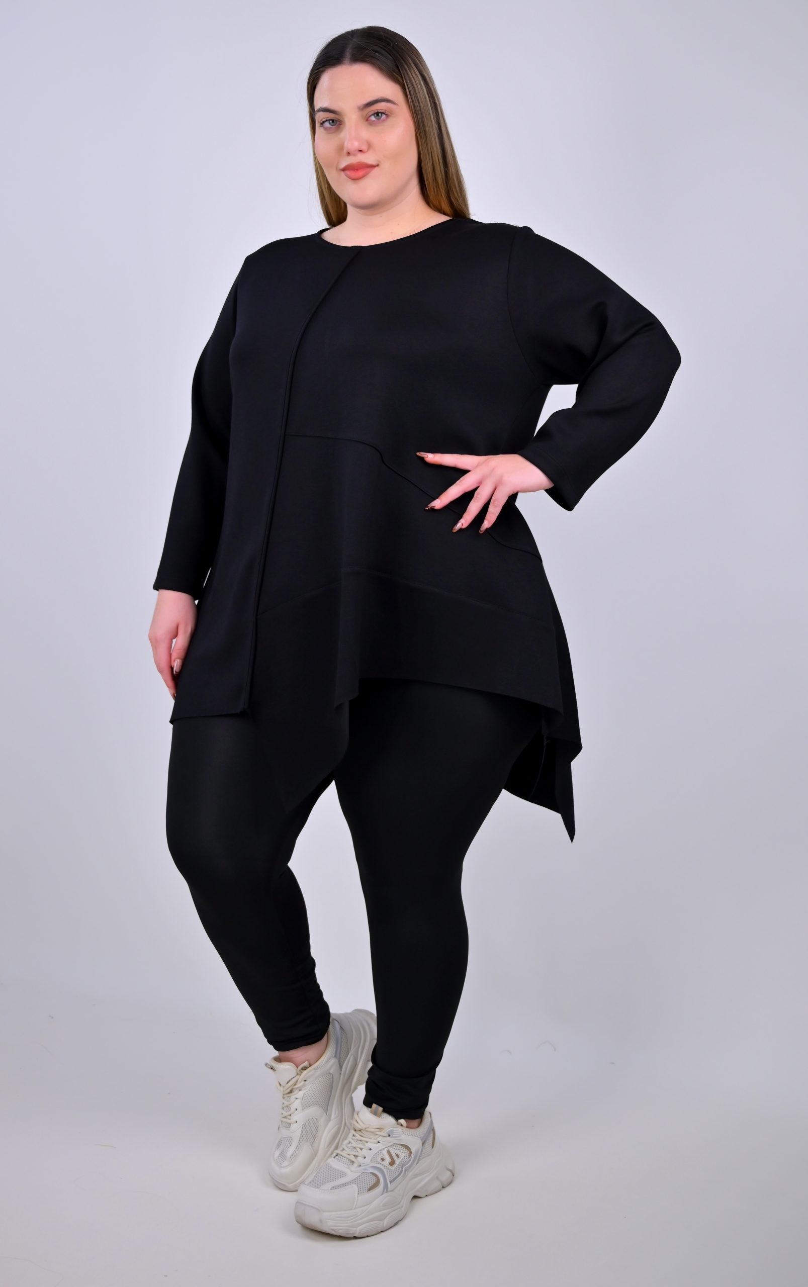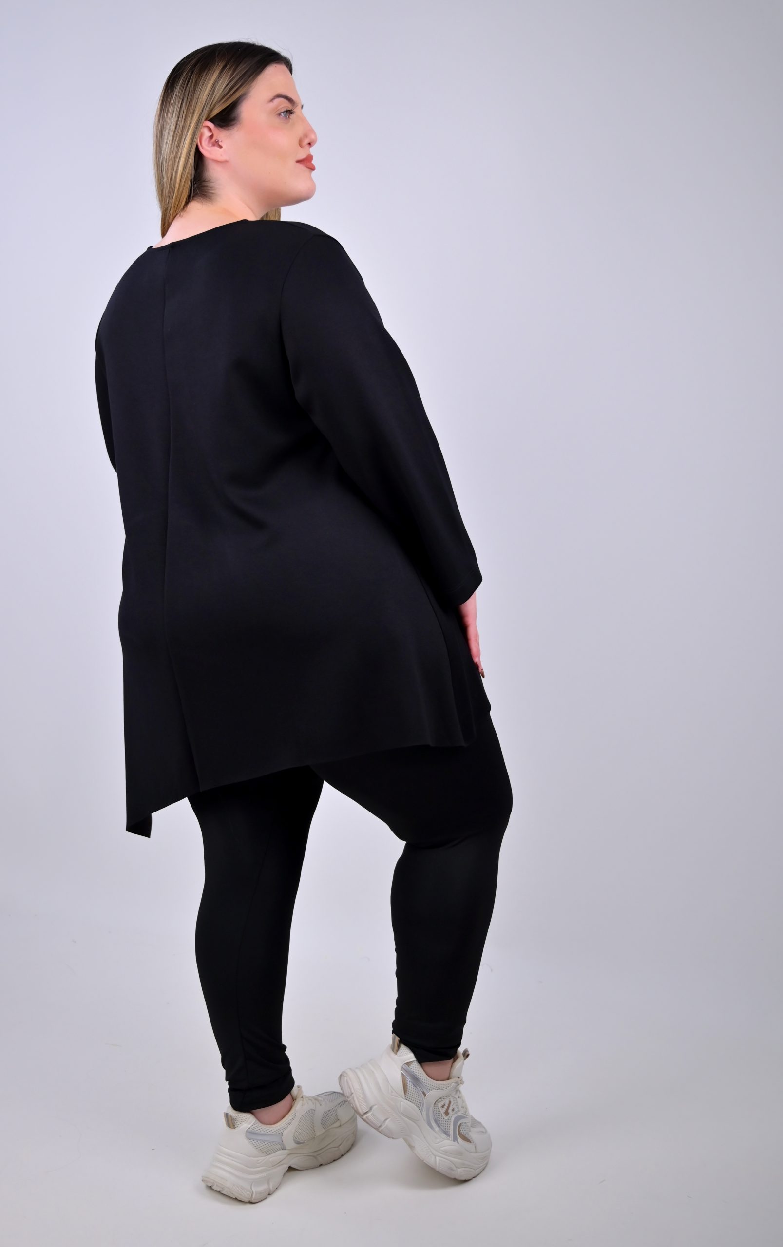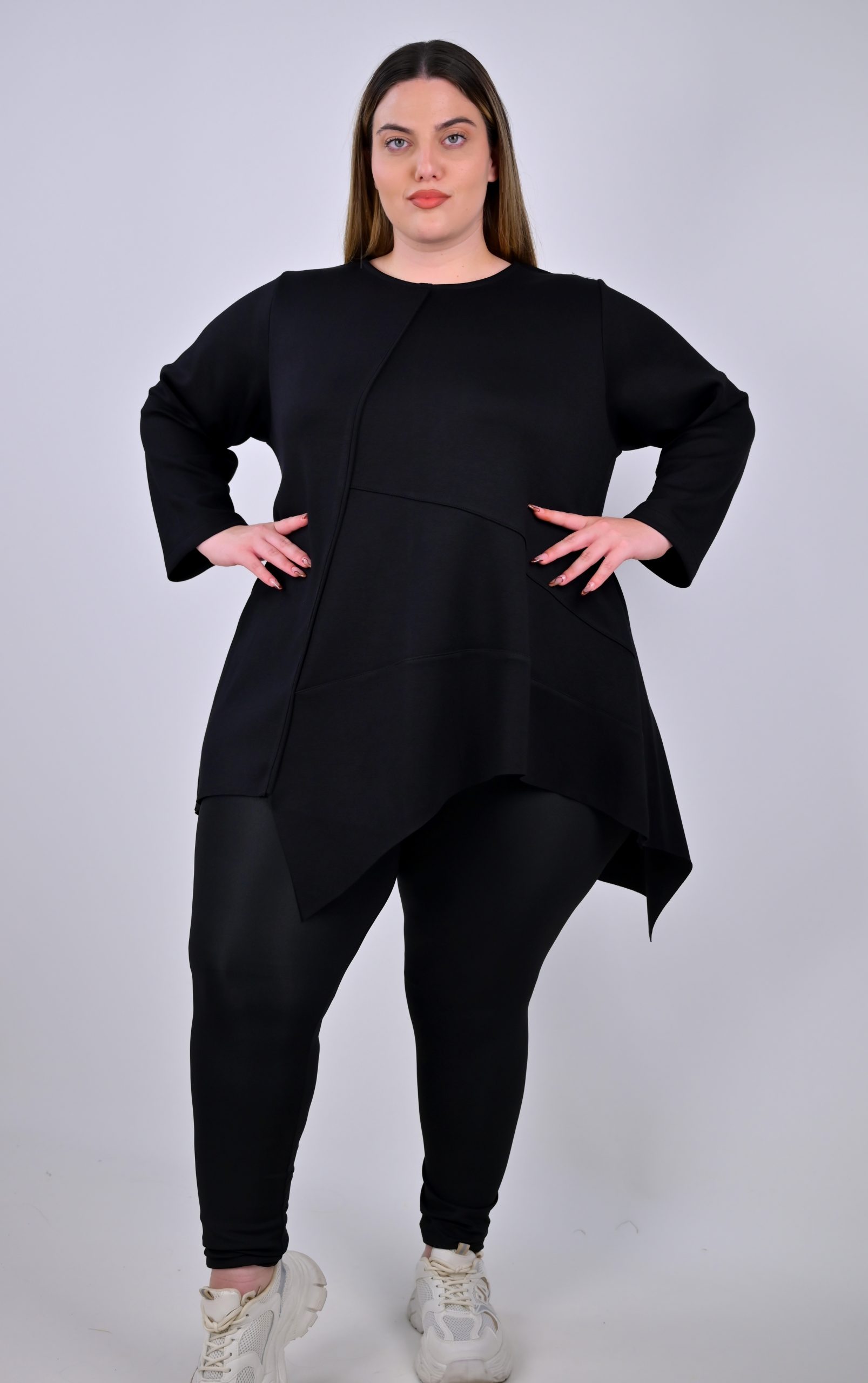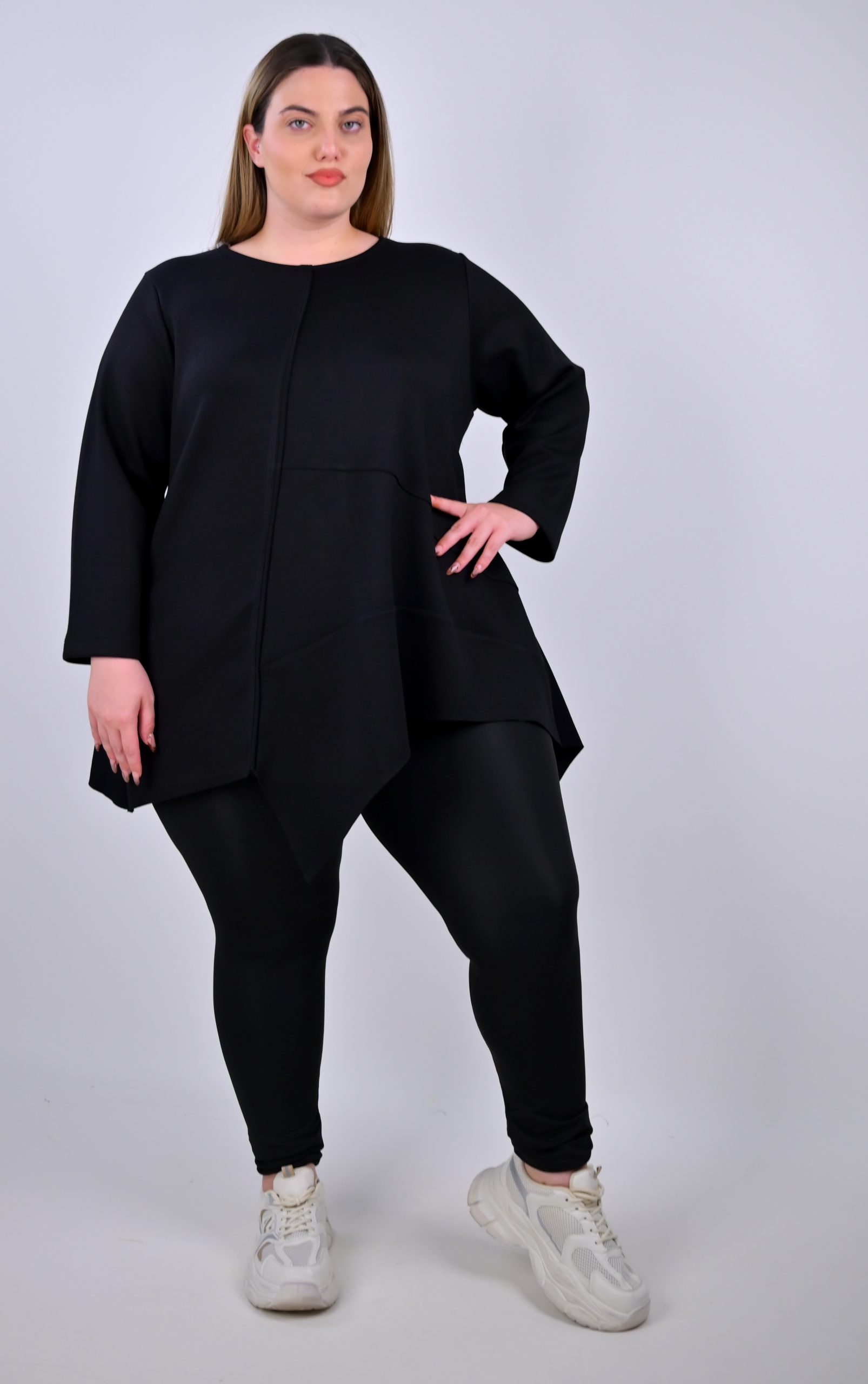 Ανακαλύψτε τη νέα αγαπημένη σας plus size μαύρη ασύμμετρη μπλούζα, ένα μοναδικό κομμάτι που συνδυάζει διαχρονικό στυλ με την απόλυτη άνεση. Με το ιδιαίτερο ασύμμετρο κόψιμό της και την άριστη ποιότητα του υφάσματός της, είναι σχεδιασμένη για να σας προσφέρει στυλ και αυτοπεποίθηση, αποτελώντας ένα κλασικό κομμάτι που μπορεί να φορεθεί με πολλούς τρόπους.