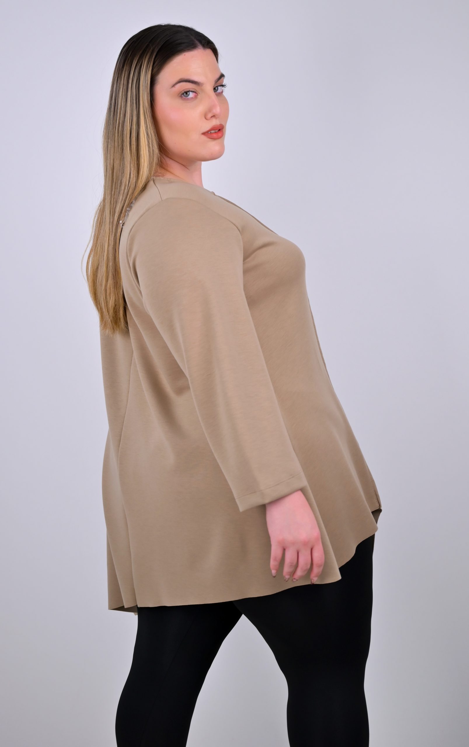 - Για Απόλυτη Αρμονία: Συνδυάστε την plus size μπεζ μπλούζα με ένα παντελόνι σε κοντινή απόχρωση, όπως κρεμ ή λευκό, για ένα σύγχρονο σύνολο.
