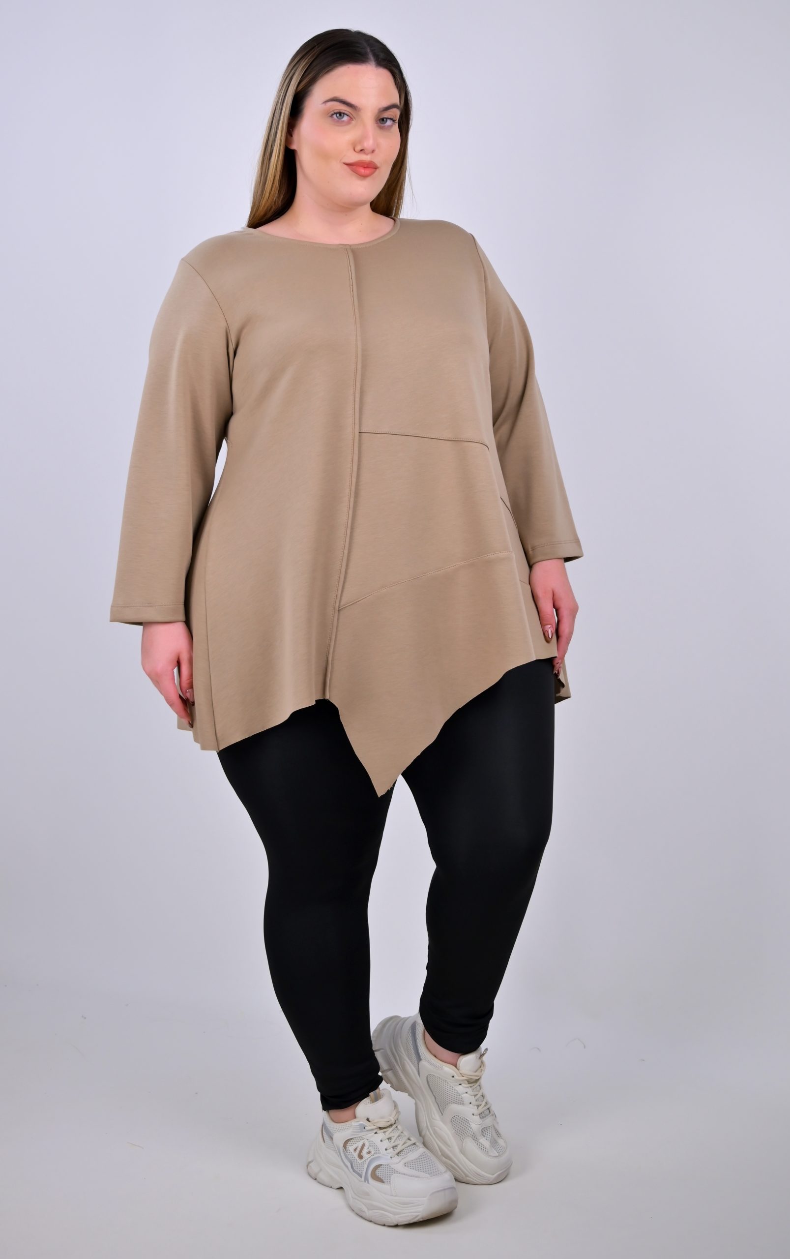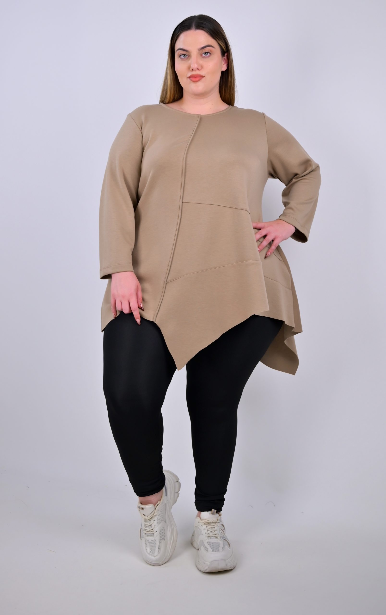 Ανακαλύψτε τη νέα αγαπημένη σας plus size μπεζ ασύμμετρη μπλούζα, ένα μοναδικό κομμάτι που συνδυάζει τη φωτεινή, ήρεμη αισθητική με την απόλυτη άνεση. Με το ιδιαίτερο ασύμμετρο κόψιμό της και την άριστη ποιότητα του υφάσματός της, είναι σχεδιασμένη για να σας προσφέρει στυλ και αυτοπεποίθηση, αποτελώντας έναν καθαρό καμβά για να εκφράσετε την προσωπικότητά σας.
