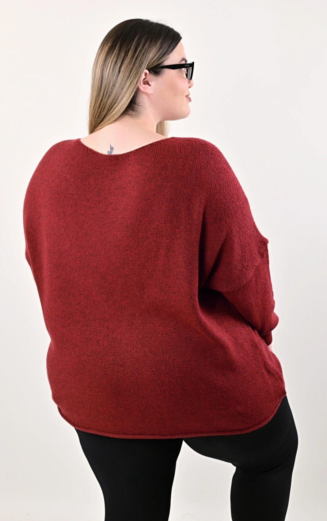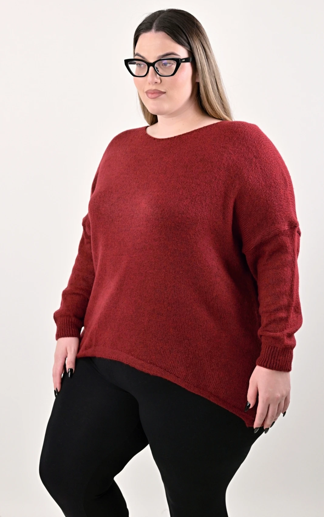 Ασύμμετρη Μπορντό Πλεκτή Μπλούζα