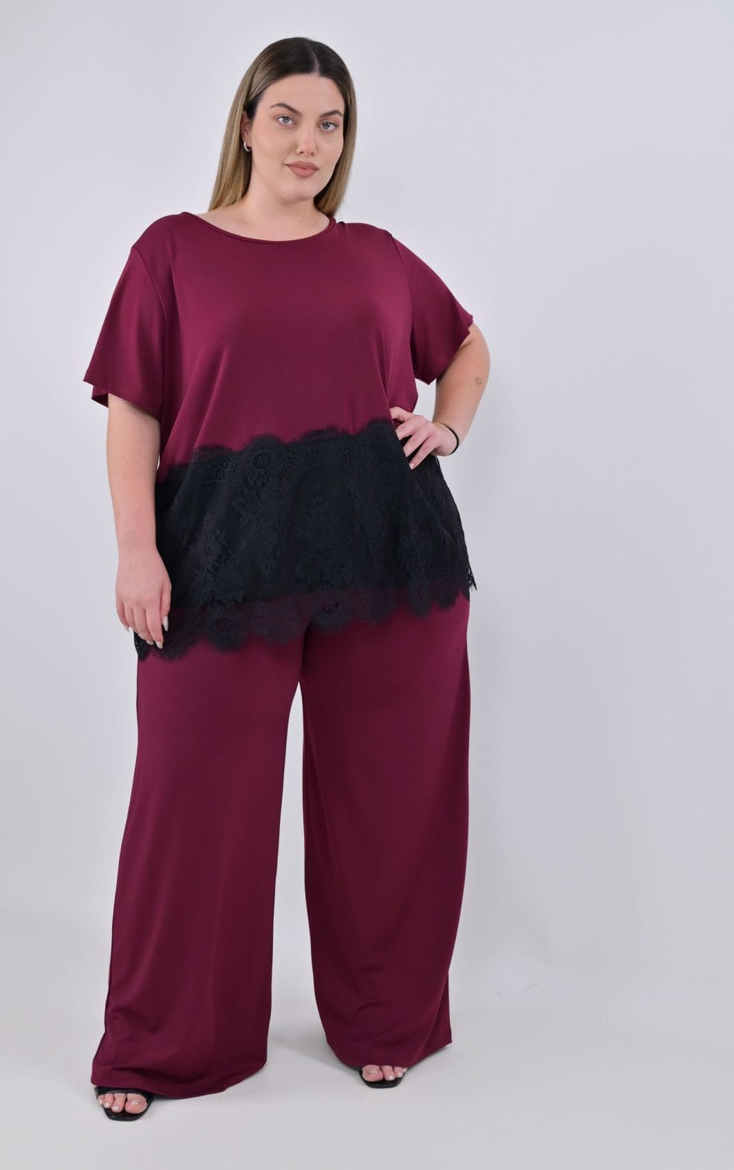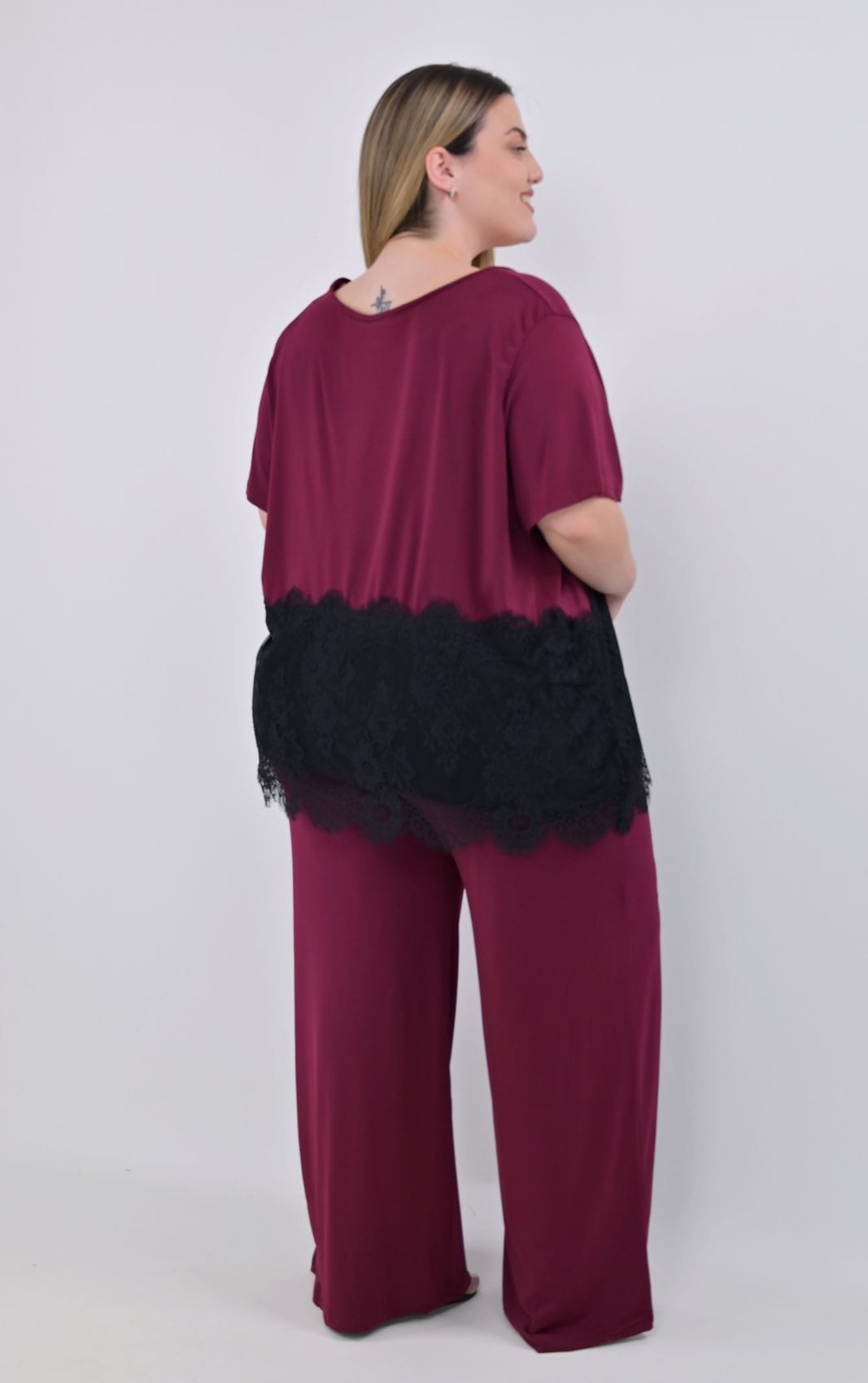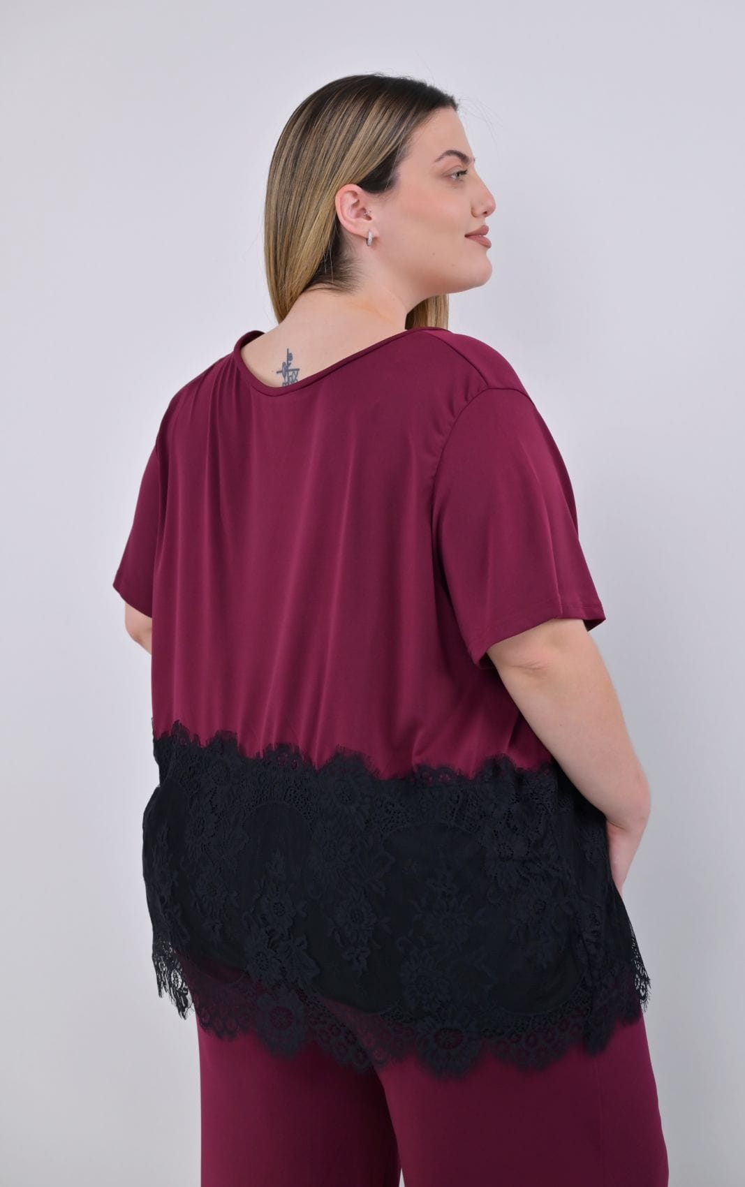Μπορντό Μπλούζα με Μαύρη Δαντέλα