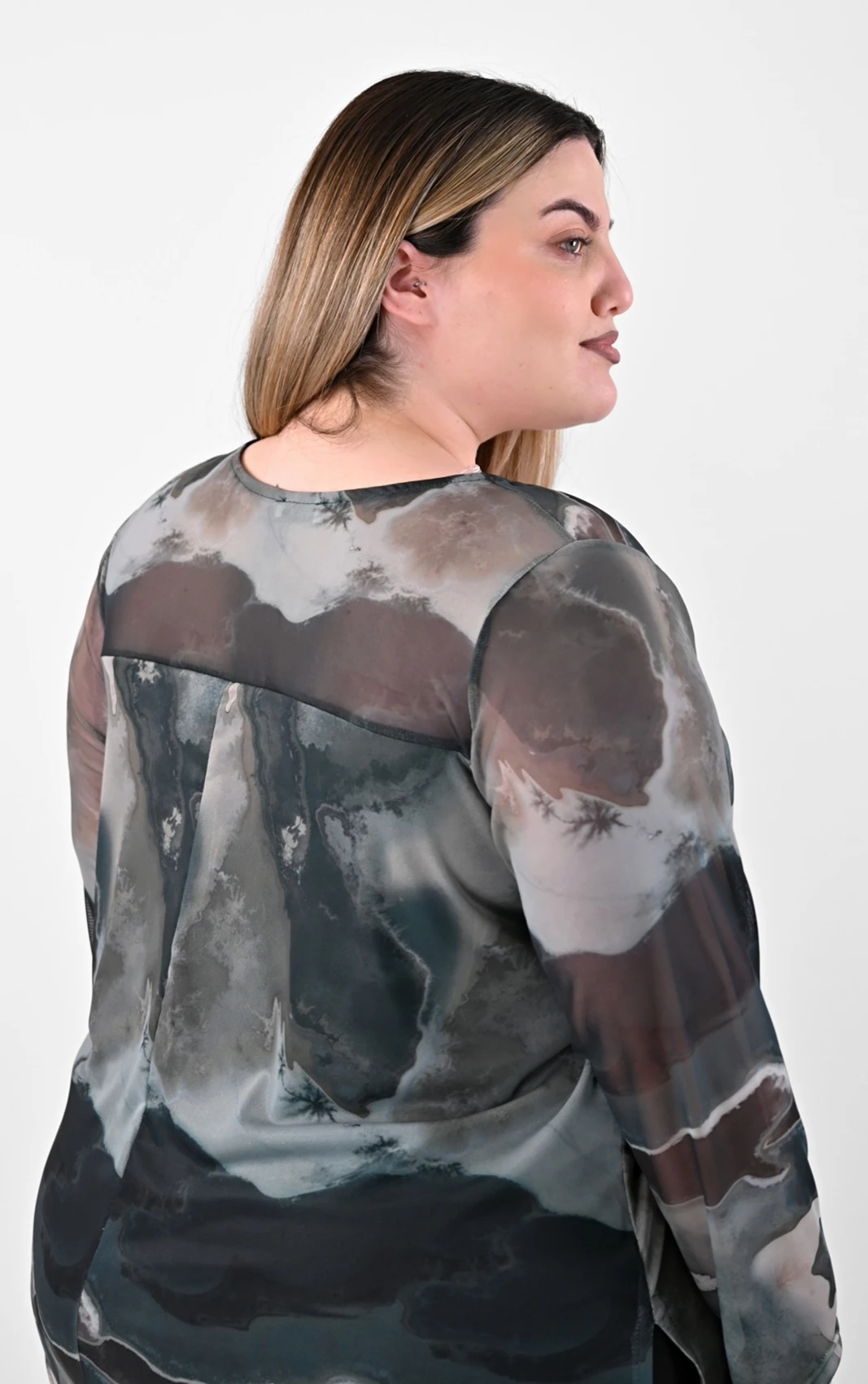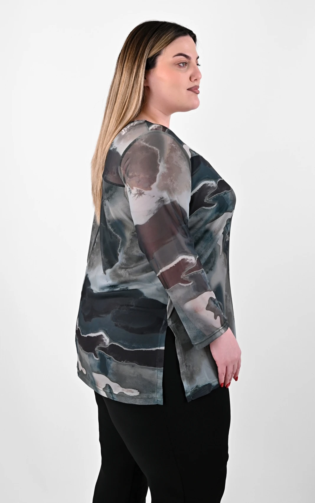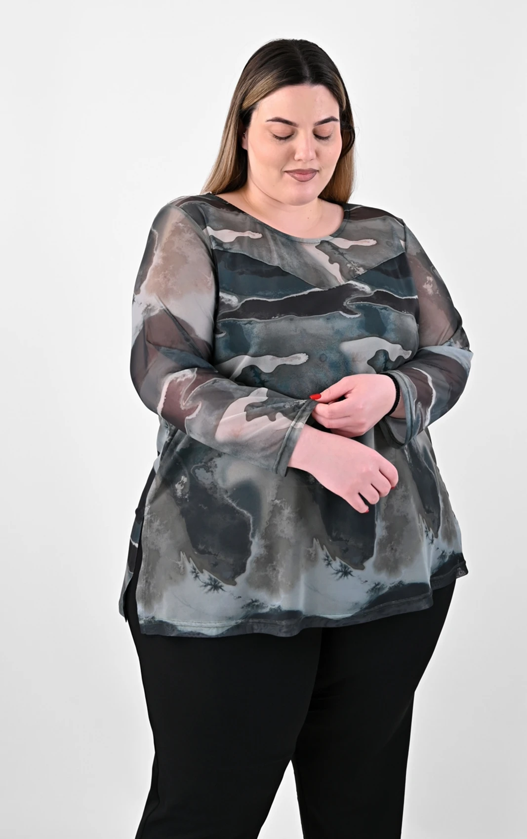 Αυτή η plus size μπλούζα σε χακί γήινη απόχρωση με το εντυπωσιακό εμπριμέ μοτίβο και τη διακριτική διαφάνεια είναι ένα κομμάτι που συνδυάζει τη μοντέρνα αισθητική με την απόλυτη άνεση. Το ανάλαφρο ύφασμα και οι ζεστοί τόνοι την καθιστούν ιδανική για να αναβαθμίσετε κάθε σας εμφάνιση, προσφέροντας μια αίσθηση ποιότητας και ελευθερίας σε κάθε κίνηση.