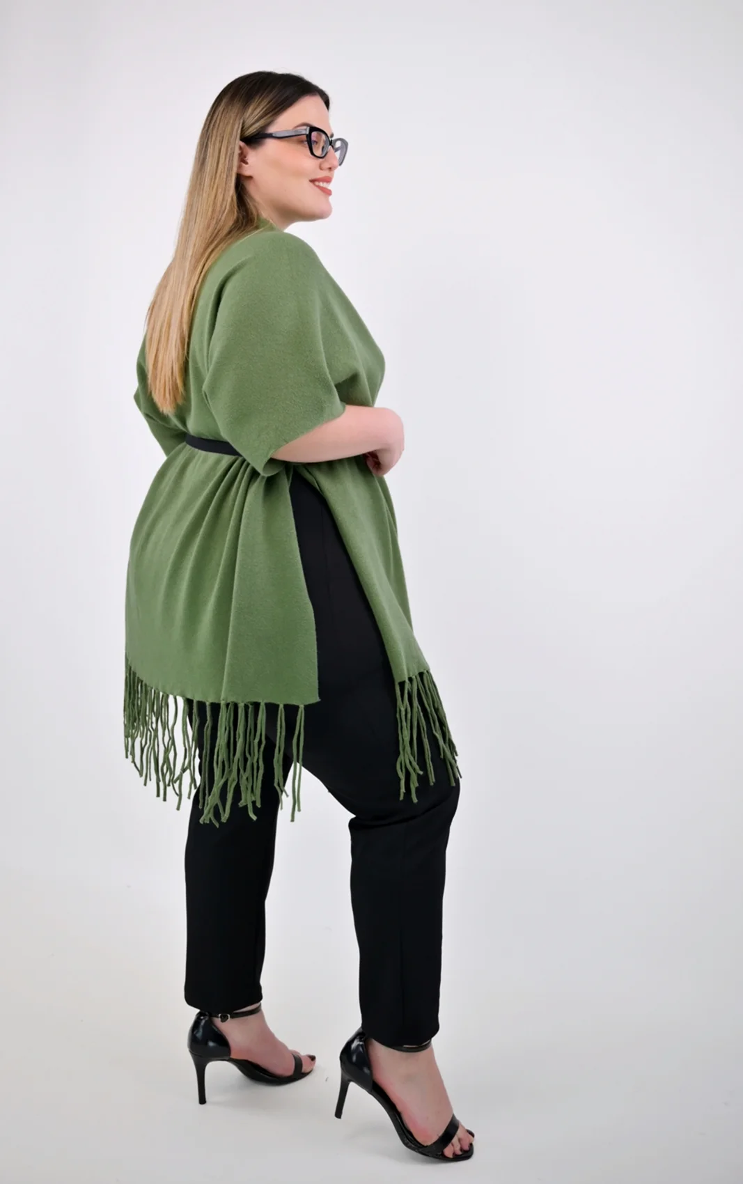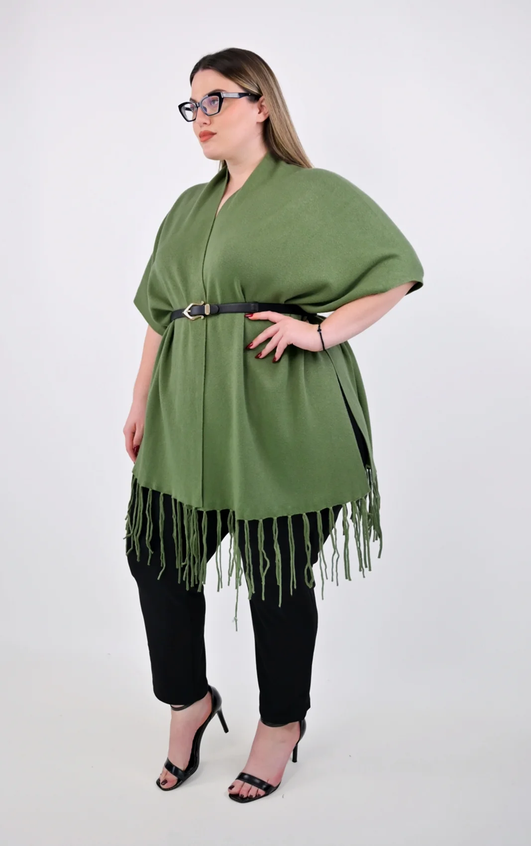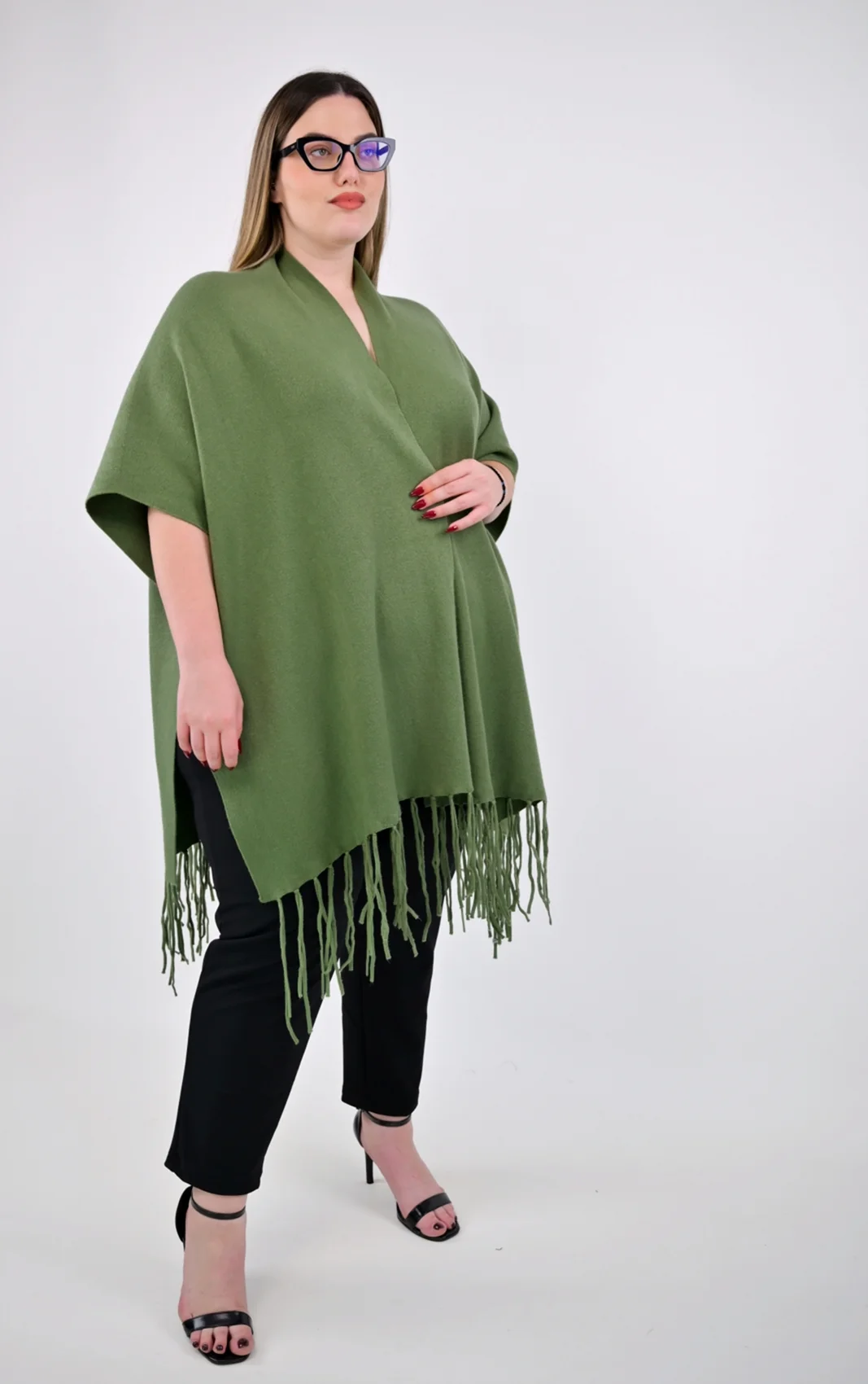 Ο σχεδιασμός της είναι ανοιχτός μπροστά, επιτρέποντας να φορεθεί με πολλούς τρόπους, ενώ τα μακριά κρόσσια στο τελείωμα προσθέτουν μια boho-chic πινελιά. Το διακριτικό κουμπί στο πλάι σας επιτρέπει να τη σταθεροποιήσετε, δημιουργώντας ένα εφέ μανικιού για μεγαλύτερη πρακτικότητα. Το μοντέρνο χακί χρώμα είναι μια ήρεμη και ταυτόχρονα πολύ στυλάτη απόχρωση που συνδυάζεται αρμονικά με τα πάντα.