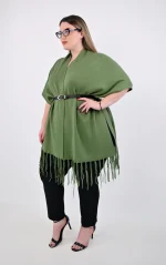 Πλεκτή Κάπα-Poncho Χακί με Κρόσσια