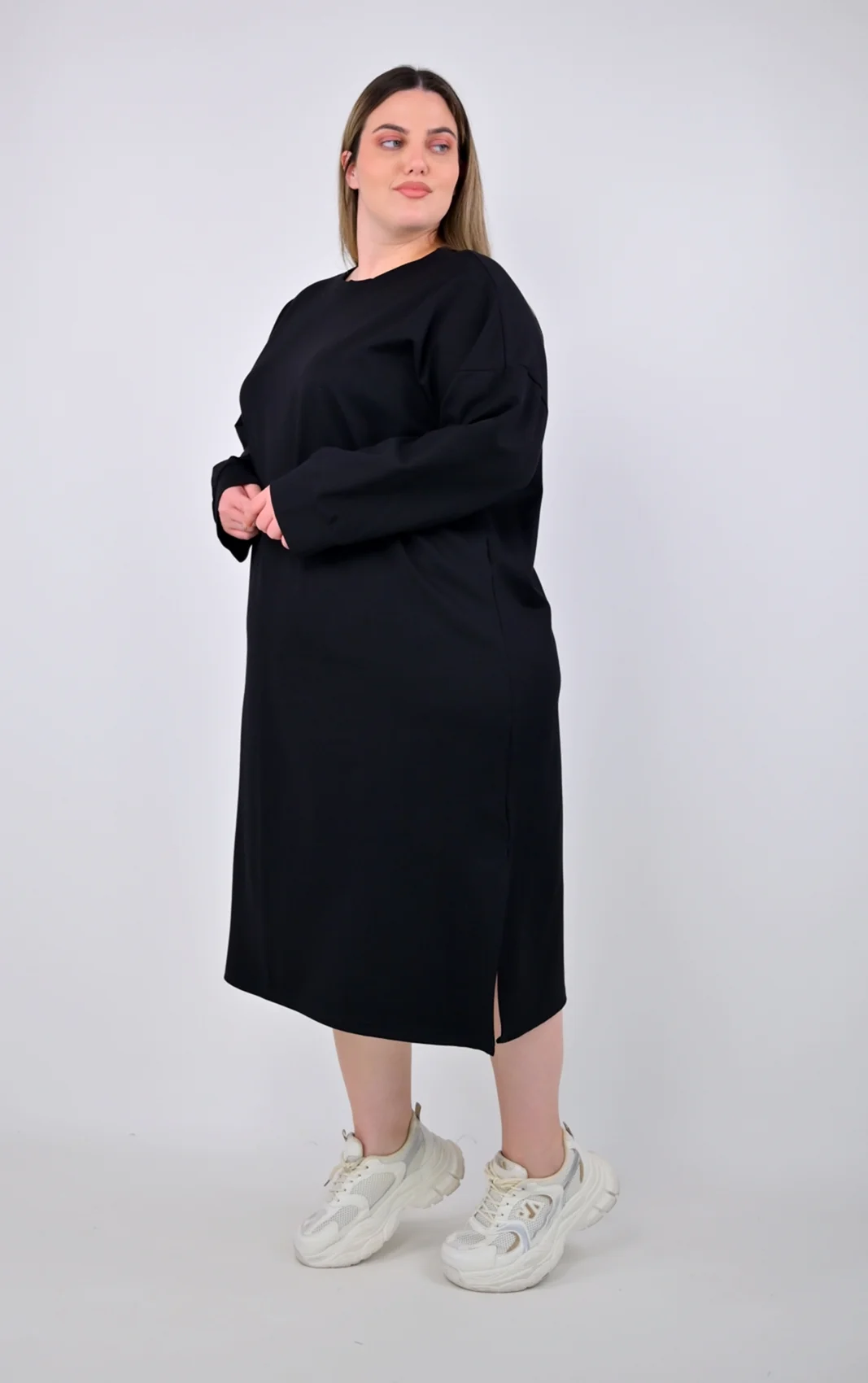Μαύρο Φόρεμα-Φούτερ σε Άνετη Γραμμή