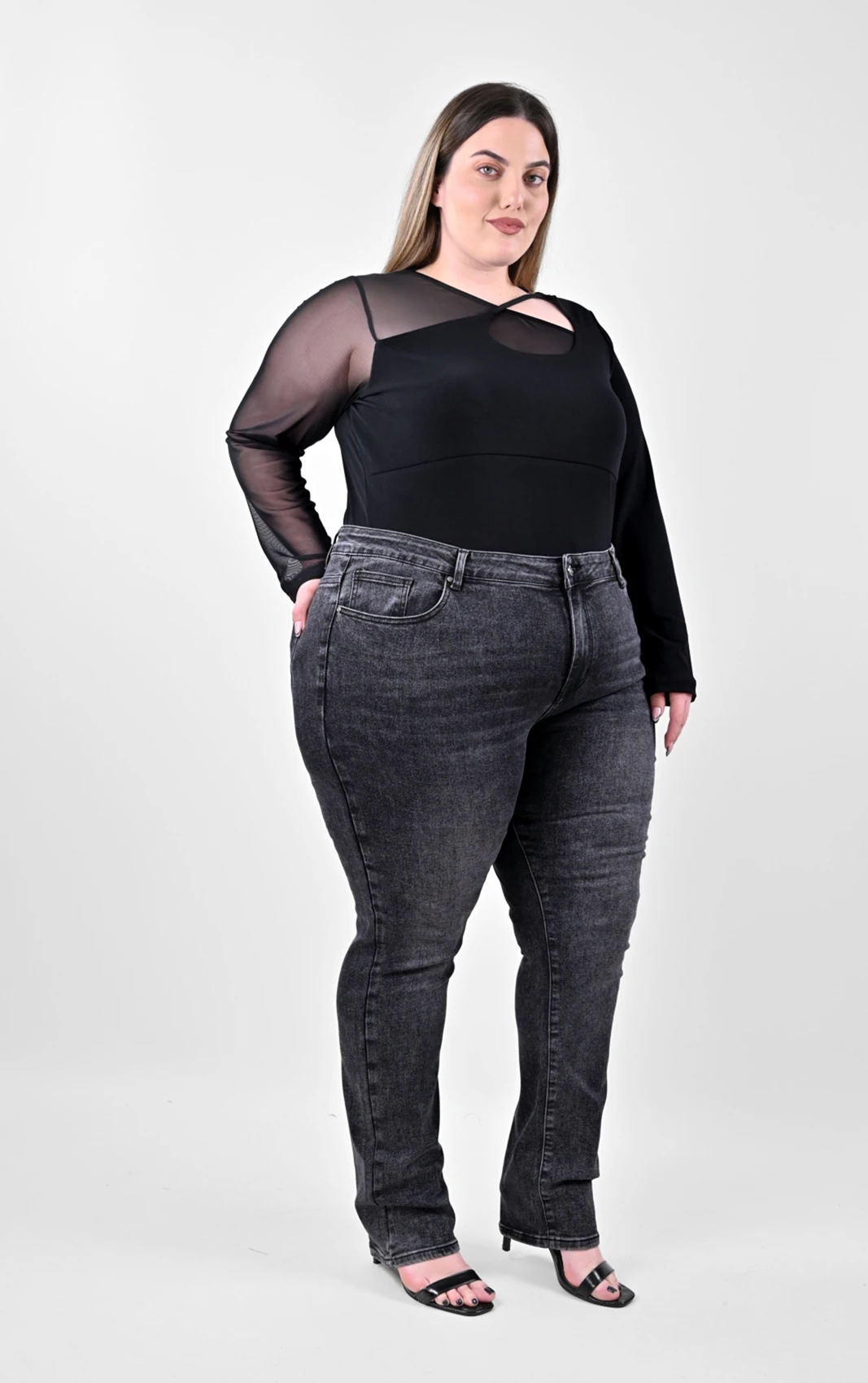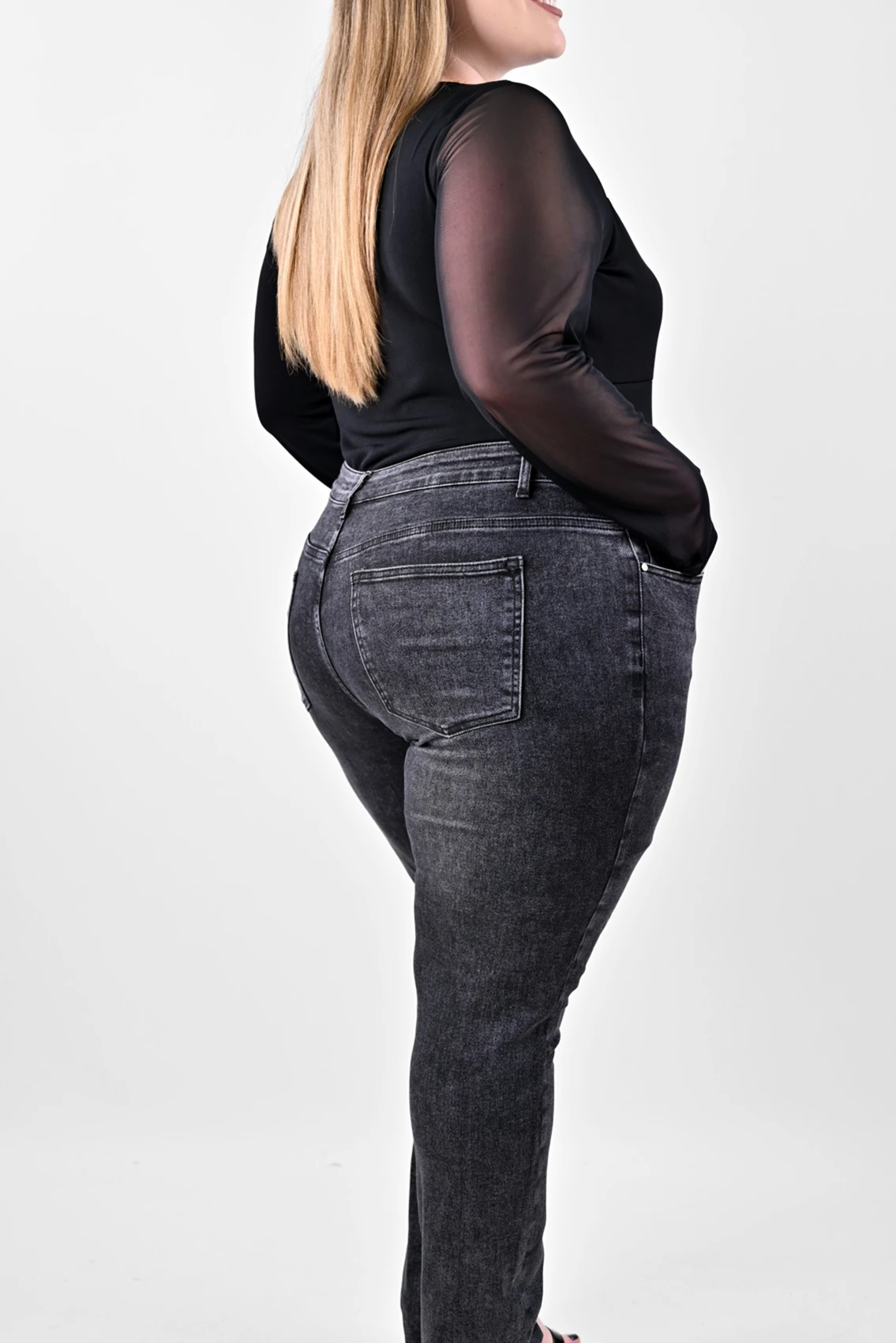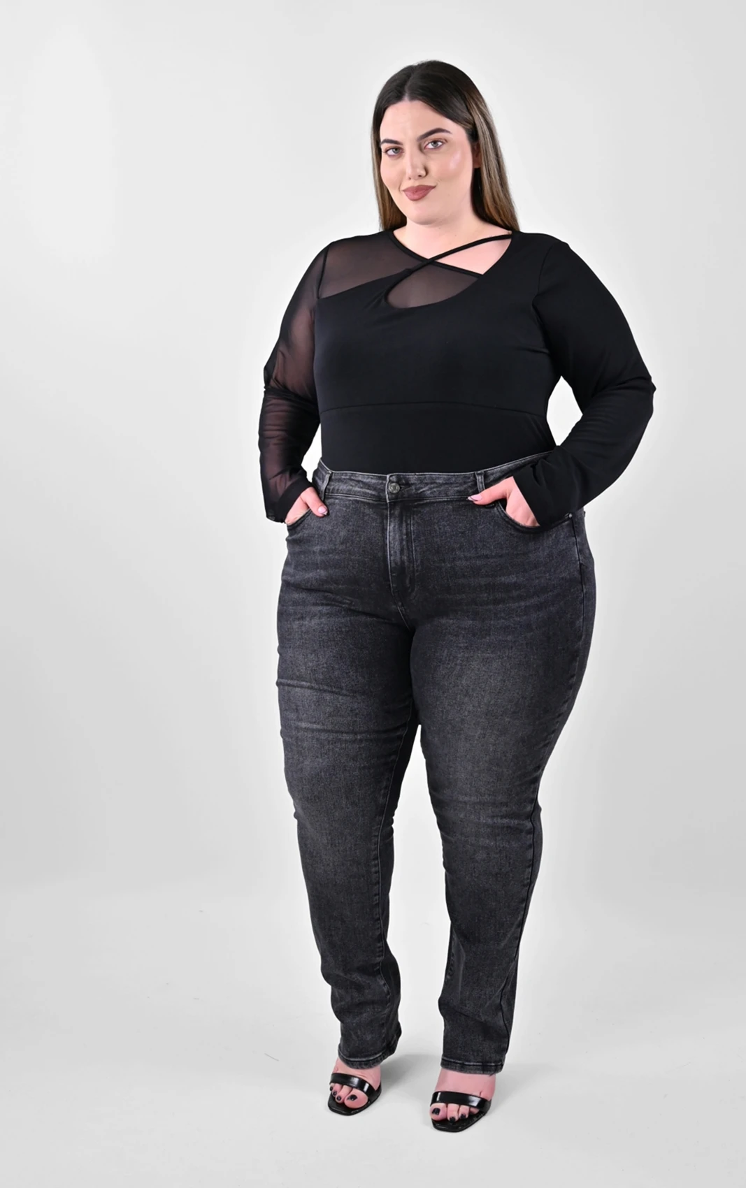 Αυτό το plus size τζιν παντελόνι ήρθε για να γίνει το αγαπημένο σας κομμάτι. Σε μια μοντέρνα, φθαρμένη γκρι/ανθρακί απόχρωση (faded grey), συνδυάζει τέλεια το στυλ με την απόλυτη άνεση.