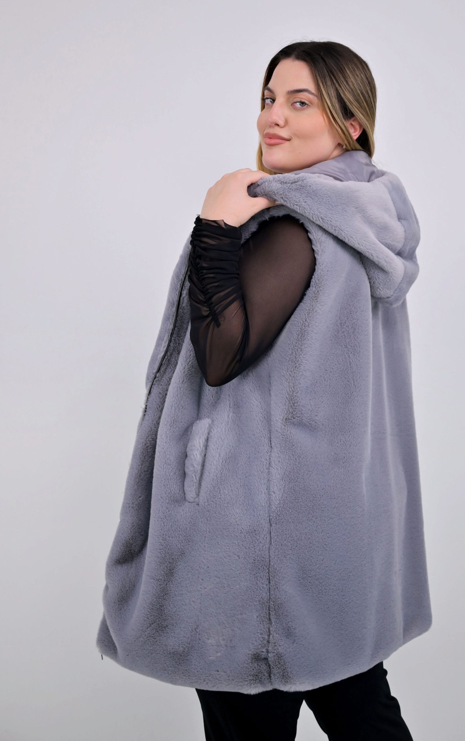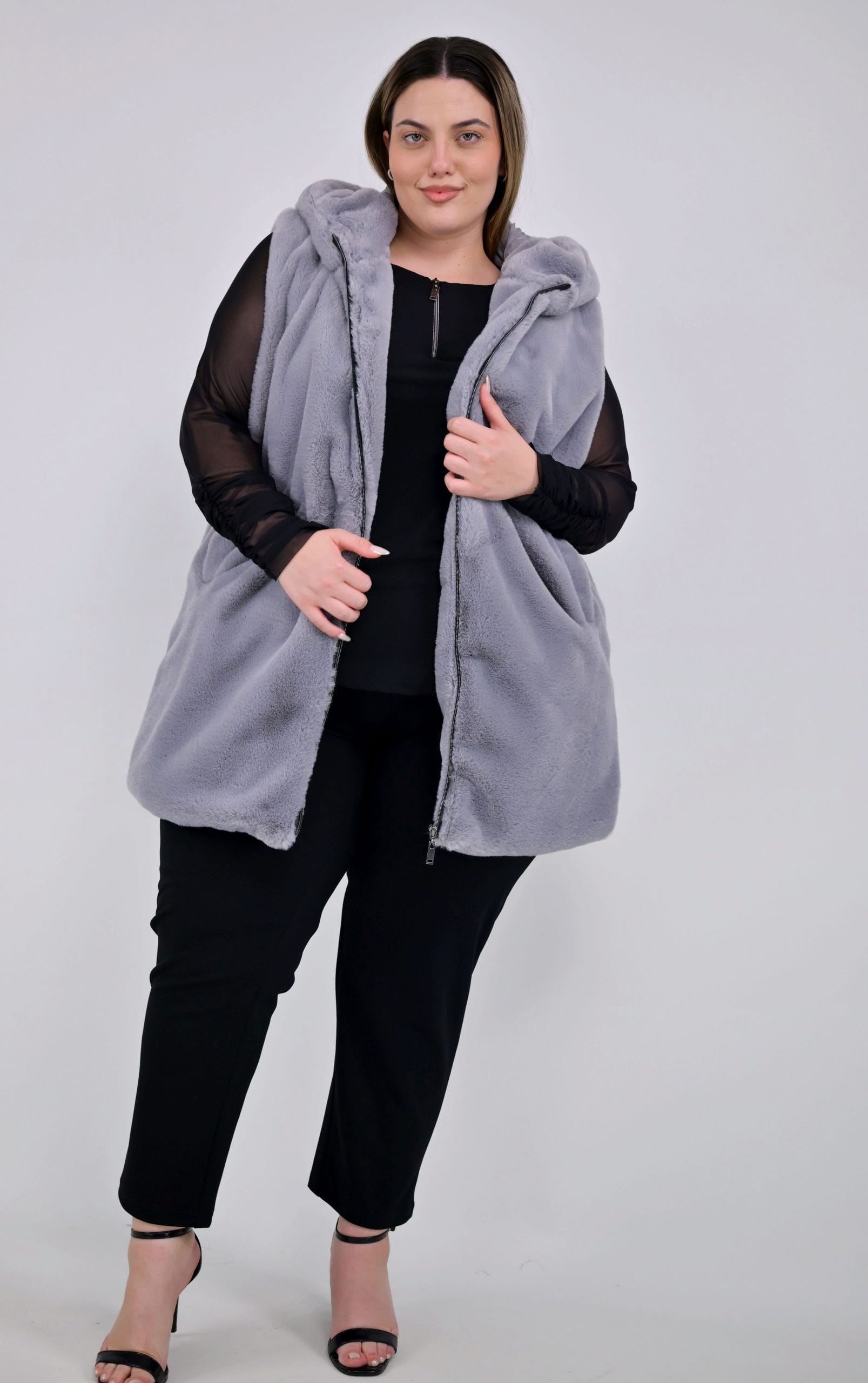 Γούνινο Γιλέκο με Κουκούλα – Γκρι