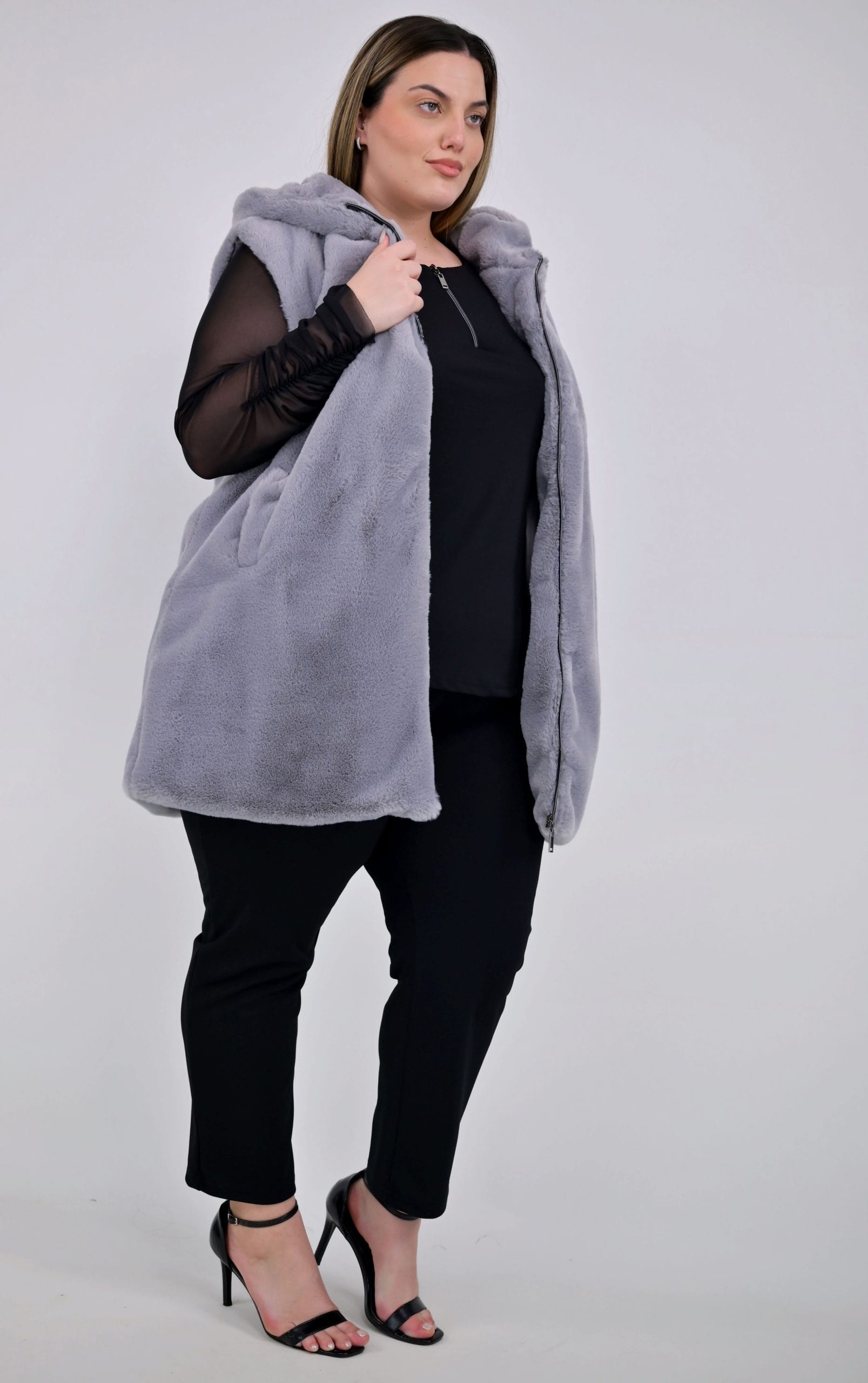 Αυτό το plus size γούνινο γιλέκο με κουκούλα είναι ένα βασικό κομμάτι που προσφέρει άνεση και στυλ σε μεγάλα μεγέθη. Το γούνινο γιλέκο σε μια μοντέρνα γκρι απόχρωση, είναι ο ιδανικός σας σύντροφος για τις μεταβατικές εποχές, προσθέτοντας μια ζεστή πινελιά σε κάθε σας σύνολο.