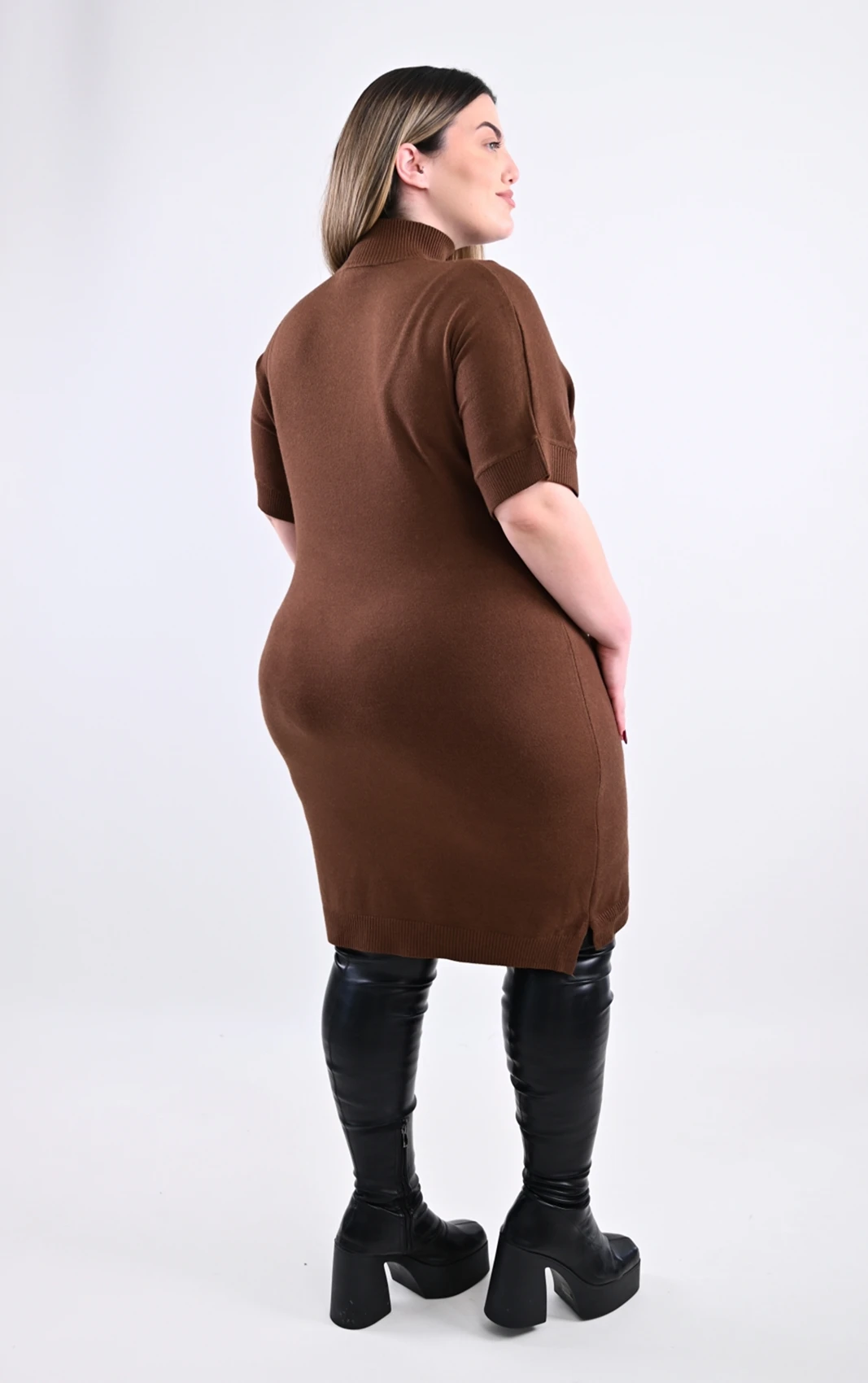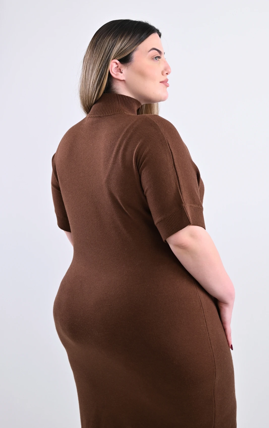 Αναδείξτε το στυλ και την άνεσή σας με αυτό το μοντέρνο πλεκτό φόρεμα. Σχεδιασμένο για να αγκαλιάζει με χάρη τις καμπύλες, προσφέρει μια κολακευτική, εφαρμοστή γραμμή χωρίς να περιορίζει την κίνηση, χάρη στην ποιοτική και ελαστική πλέξη του. Το ζεστό καφέ χρώμα του το καθιστά ιδανική επιλογή για τις φθινοπωρινές και χειμερινές σας εμφανίσεις.