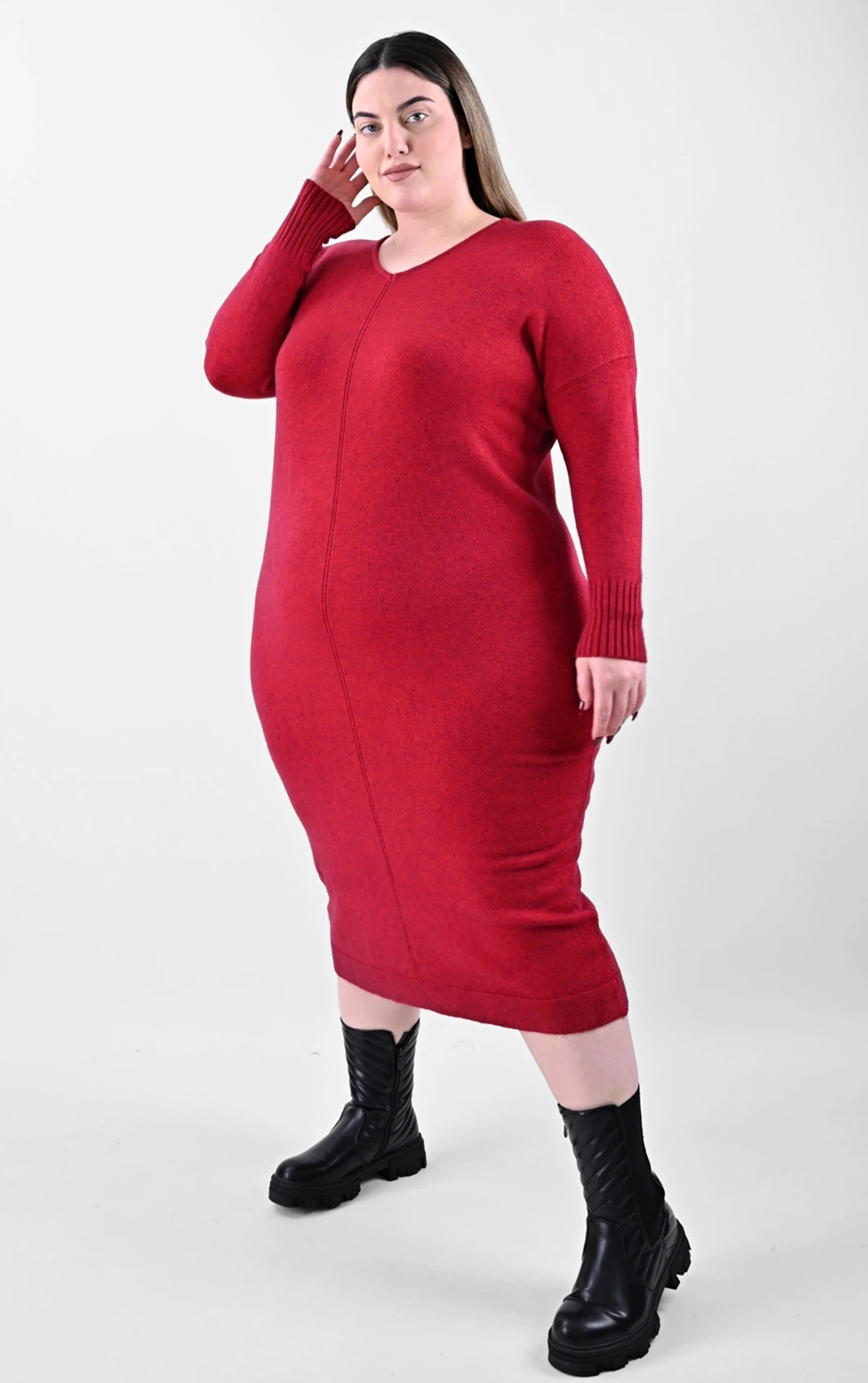 - Πώς είναι η εφαρμογή του σε plus size σώματα; Το φόρεμα είναι ειδικά σχεδιασμένο για plus size σωματότυπους. Η γραμμή του είναι άνετη και η πλέξη έχει μεγάλη ελαστικότητα, επιτρέποντάς του να αγκαλιάζει τις καμπύλες χωρίς να είναι υπερβολικά στενό.