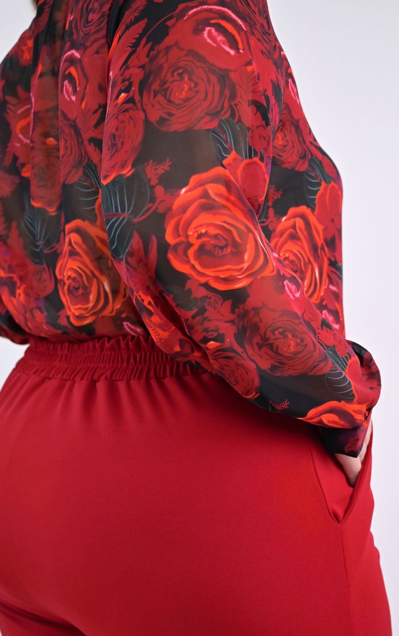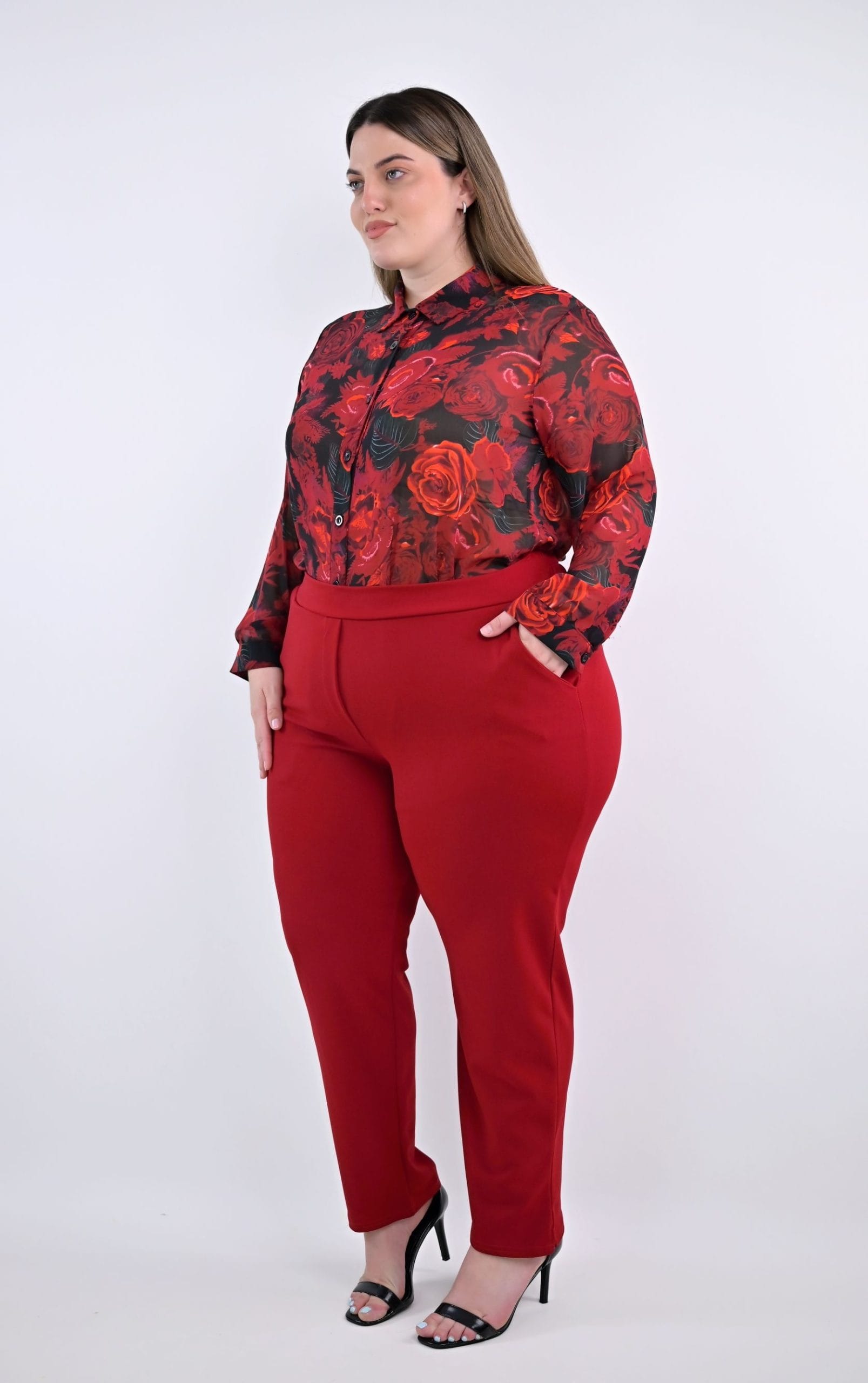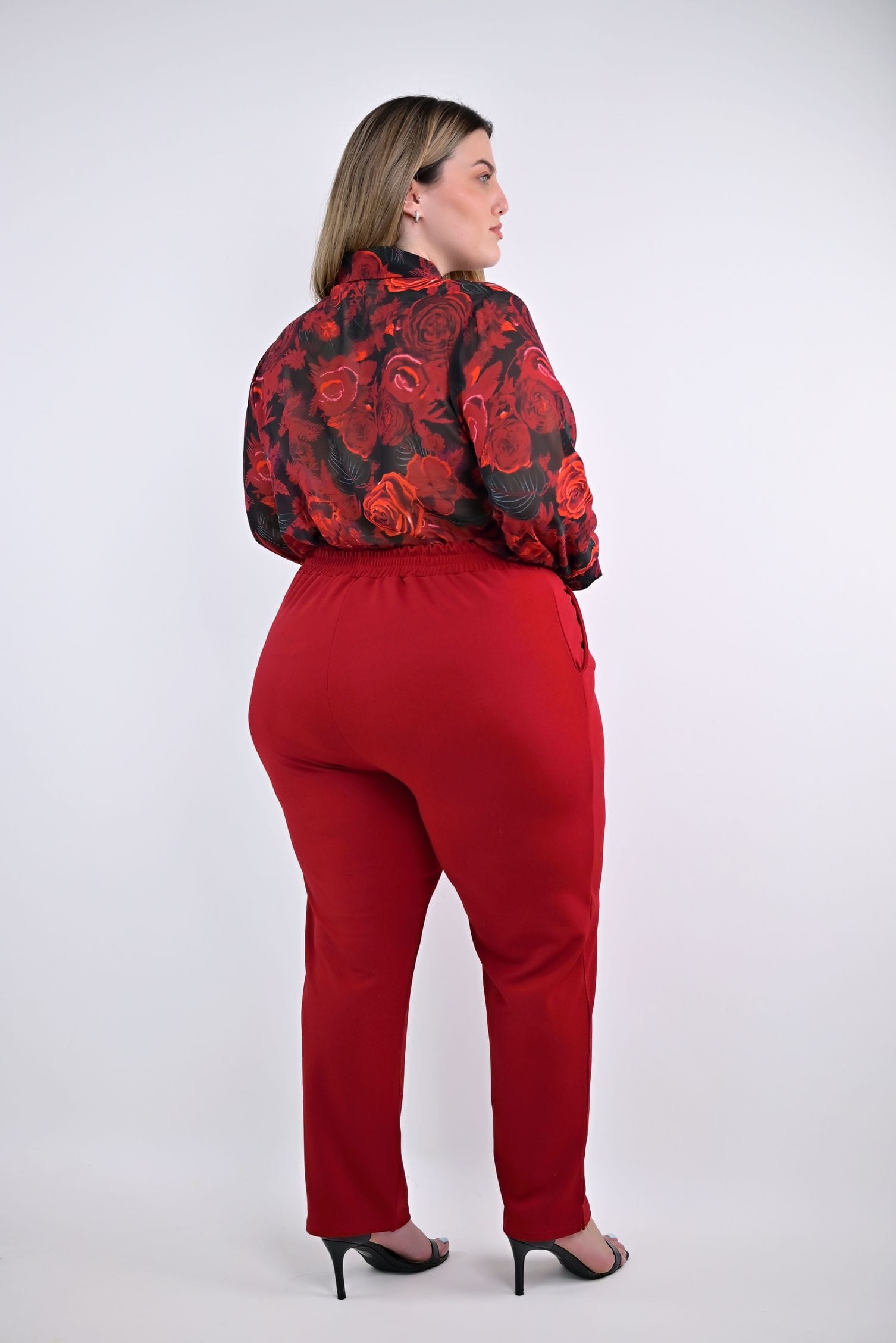 Προσθέστε χρώμα και στυλ στην γκαρνταρόμπα σας με αυτό το μοντέρνο plus size κόκκινο παντελόνι, κατασκευασμένο από υψηλής ποιότητας ύφασμα scuba crepe. Σχεδιασμένο για να προσφέρει απόλυτη άνεση και άψογη εφαρμογή, αυτό το παντελόνι θα γίνει το αγαπημένο σας κομμάτι για κάθε περίσταση.