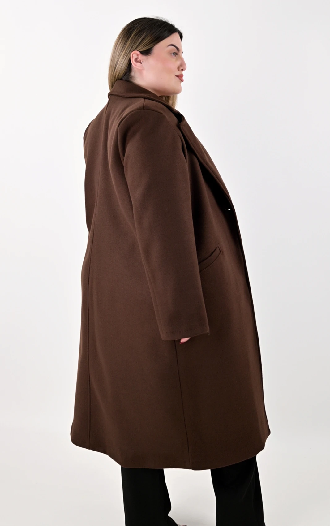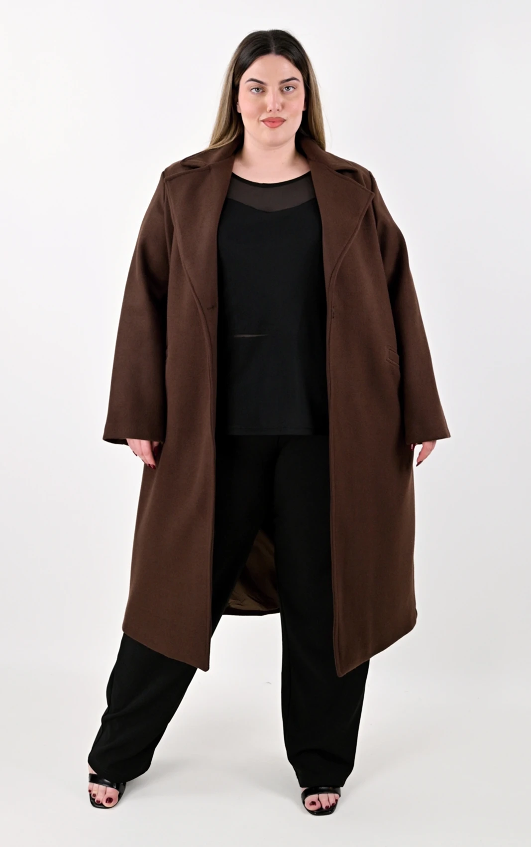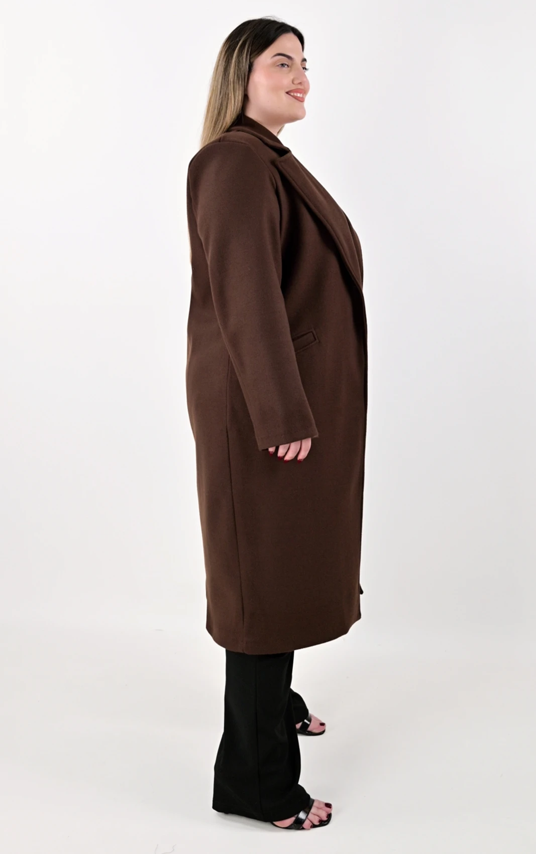 Δώστε μια ζεστή νότα στην γκαρνταρόμπα σας με αυτό το διαχρονικό μακρύ παλτό σε μια υπέροχη, βαθιά καφέ απόχρωση. Το καφέ χρώμα αποτελεί μια εξαιρετικά στυλάτη εναλλακτική του κλασικού μαύρου, συνδυάζεται εύκολα και προσδίδει κομψότητα σε κάθε εμφάνιση. Σχεδιασμένο με την ίδια ίσια, χαλαρή γραμμή, κολακεύει τη σιλουέτα και επιτρέπει άνετο layering, καθιστώντας το ιδανική επιλογή για όλες τις ώρες της ημέρας.