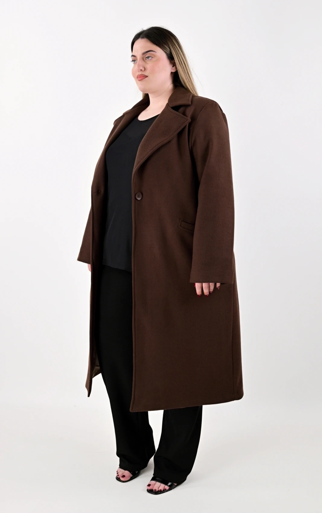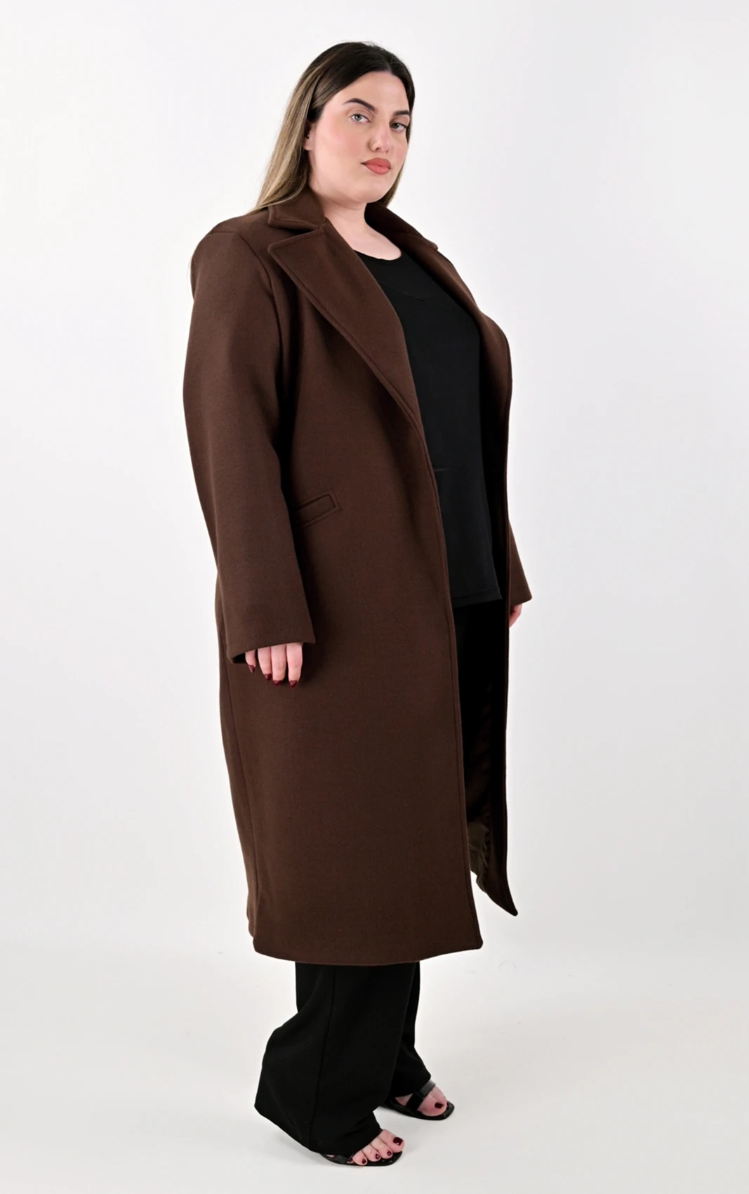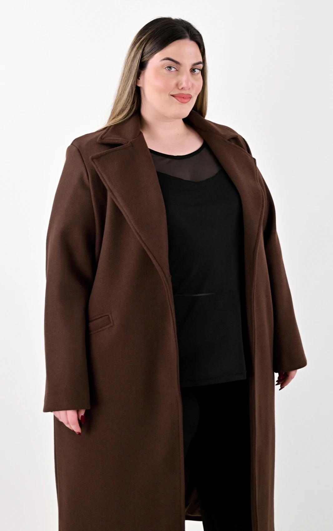 Δώστε μια ζεστή νότα στην γκαρνταρόμπα σας με αυτό το διαχρονικό μακρύ παλτό σε μια υπέροχη, βαθιά καφέ απόχρωση. Το καφέ χρώμα αποτελεί μια εξαιρετικά στυλάτη εναλλακτική του κλασικού μαύρου, συνδυάζεται εύκολα και προσδίδει κομψότητα σε κάθε εμφάνιση. Σχεδιασμένο με την ίδια ίσια, χαλαρή γραμμή, κολακεύει τη σιλουέτα και επιτρέπει άνετο layering, καθιστώντας το ιδανική επιλογή για όλες τις ώρες της ημέρας.