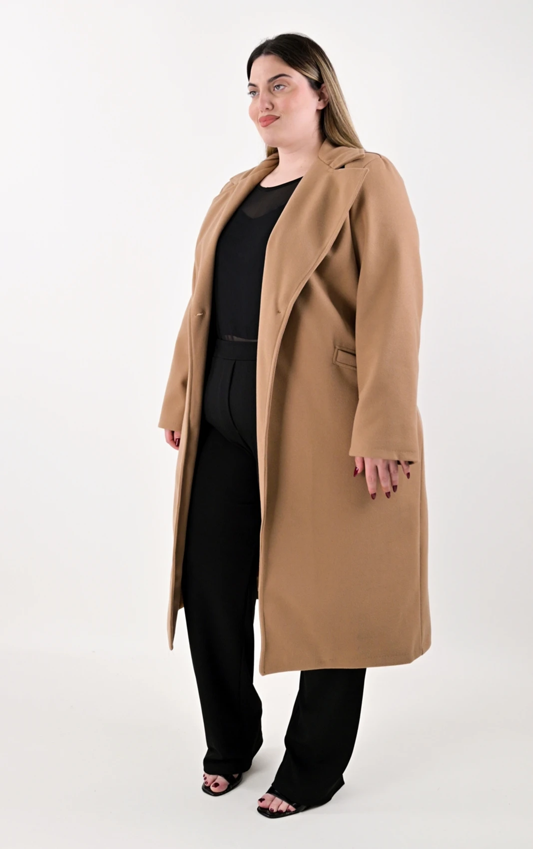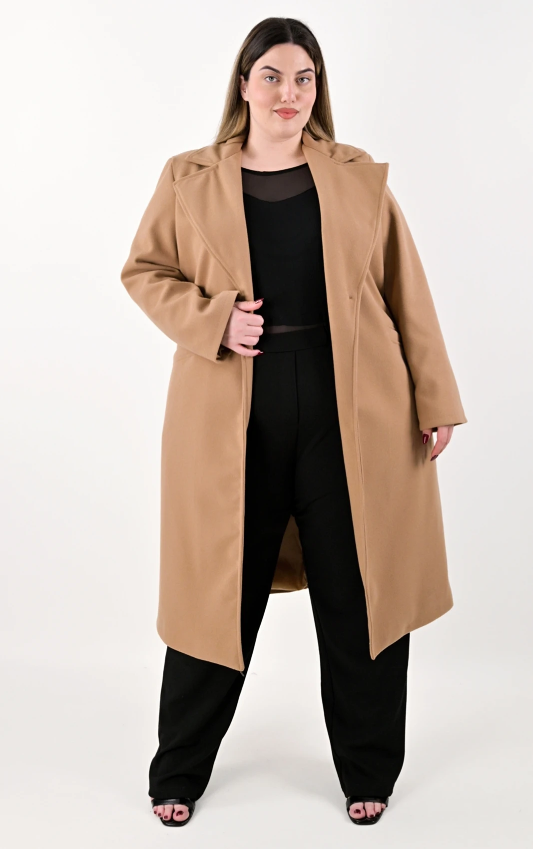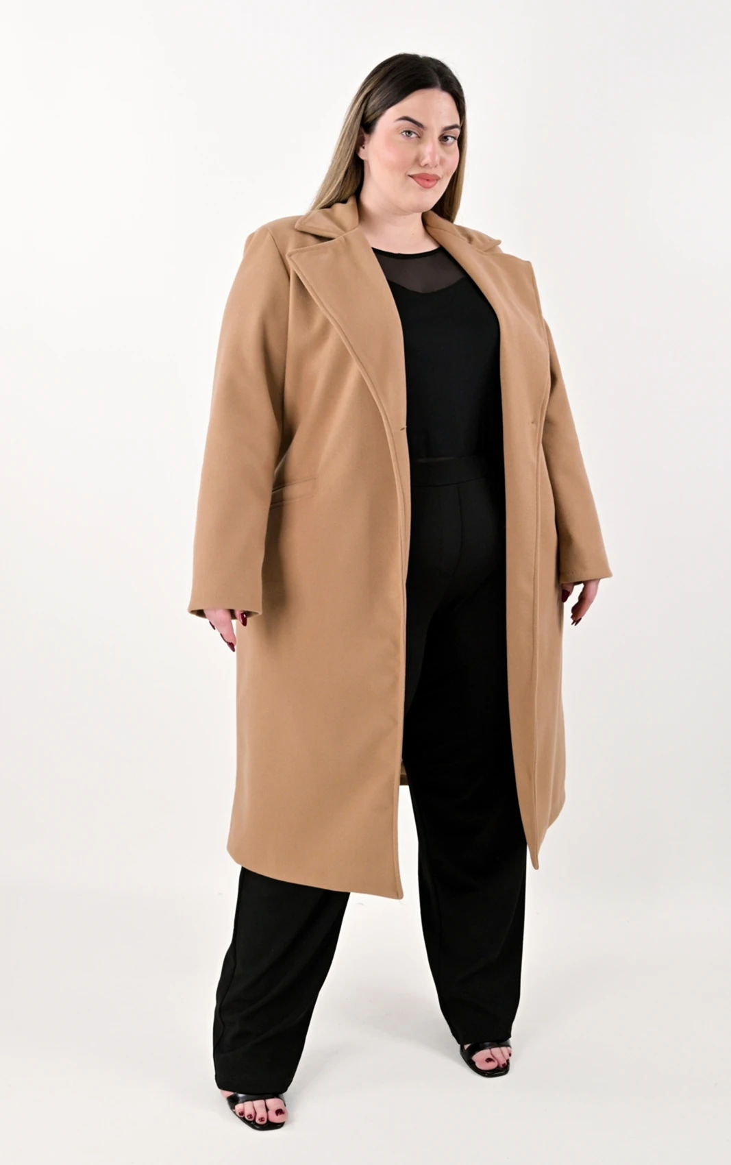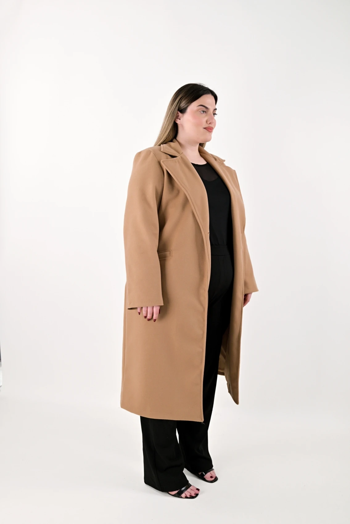 Καμηλό Μακρύ Παλτό σε Ίσια Γραμμή