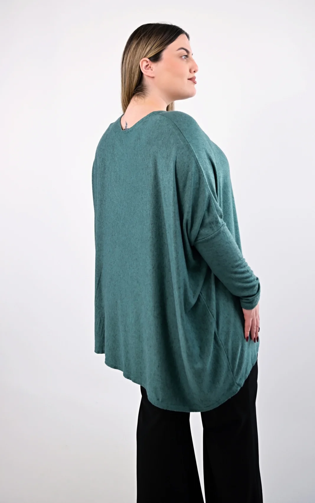 Ανανεώστε την γκαρνταρόμπα σας με αυτό το plus size μακρυμάνικο μπλουζοφόρεμα σε ένα διαχρονικό κυπαρισσί χρώμα.