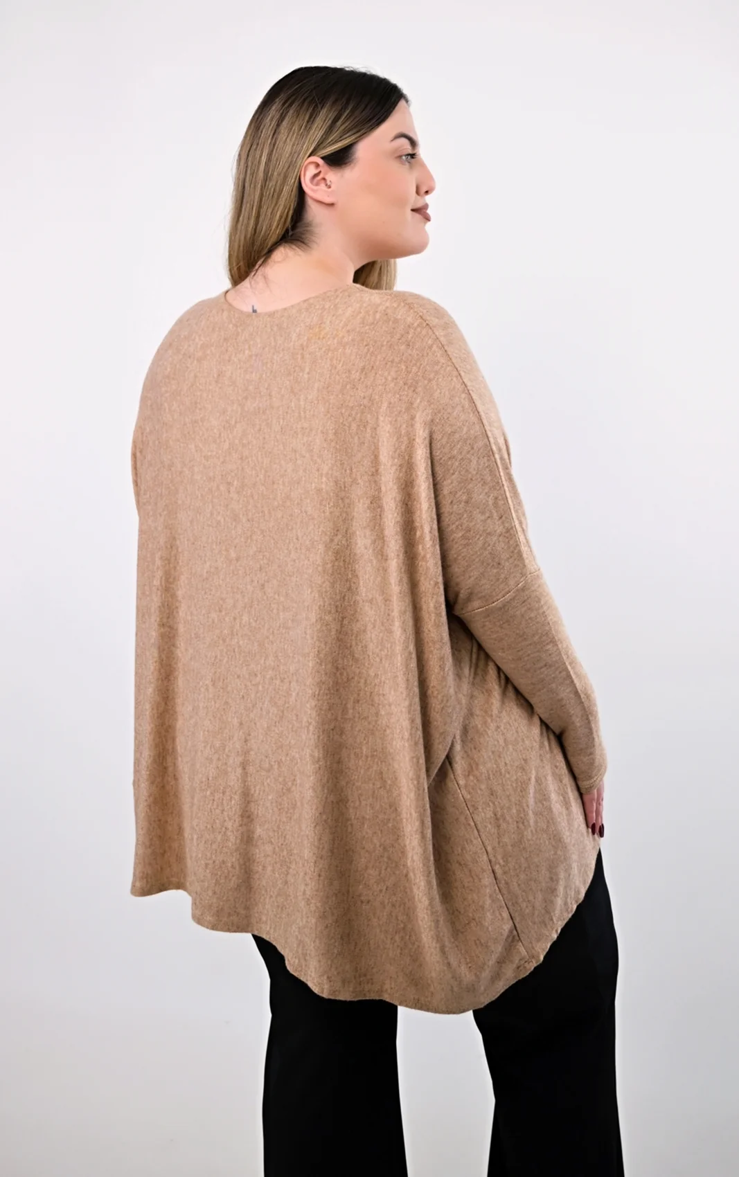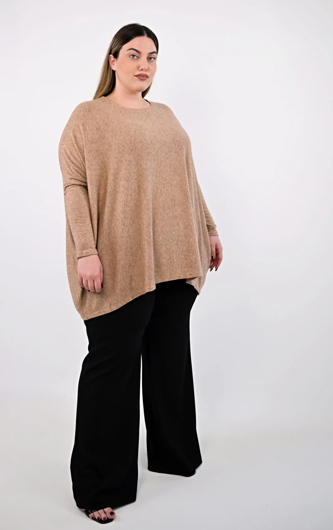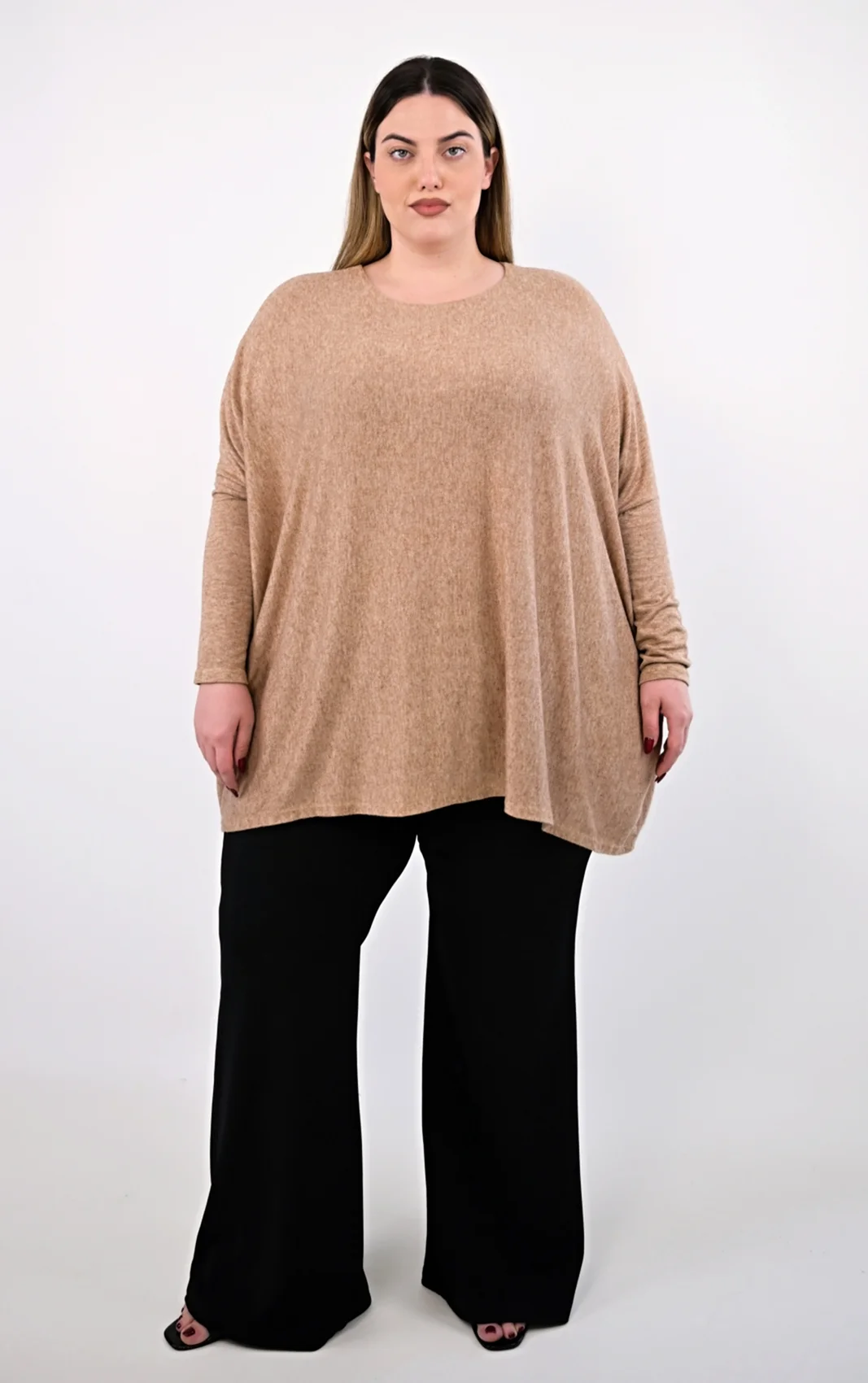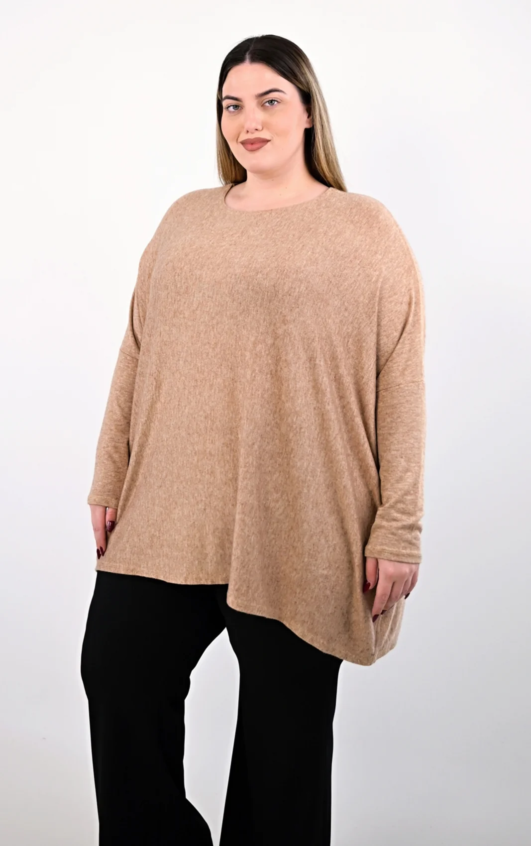 Ανανεώστε την γκαρνταρόμπα σας με αυτό το plus size μακρυμάνικο μπλουζοφόρεμα σε ένα ουδέτερο και μοντέρνο μπεζ χρώμα.