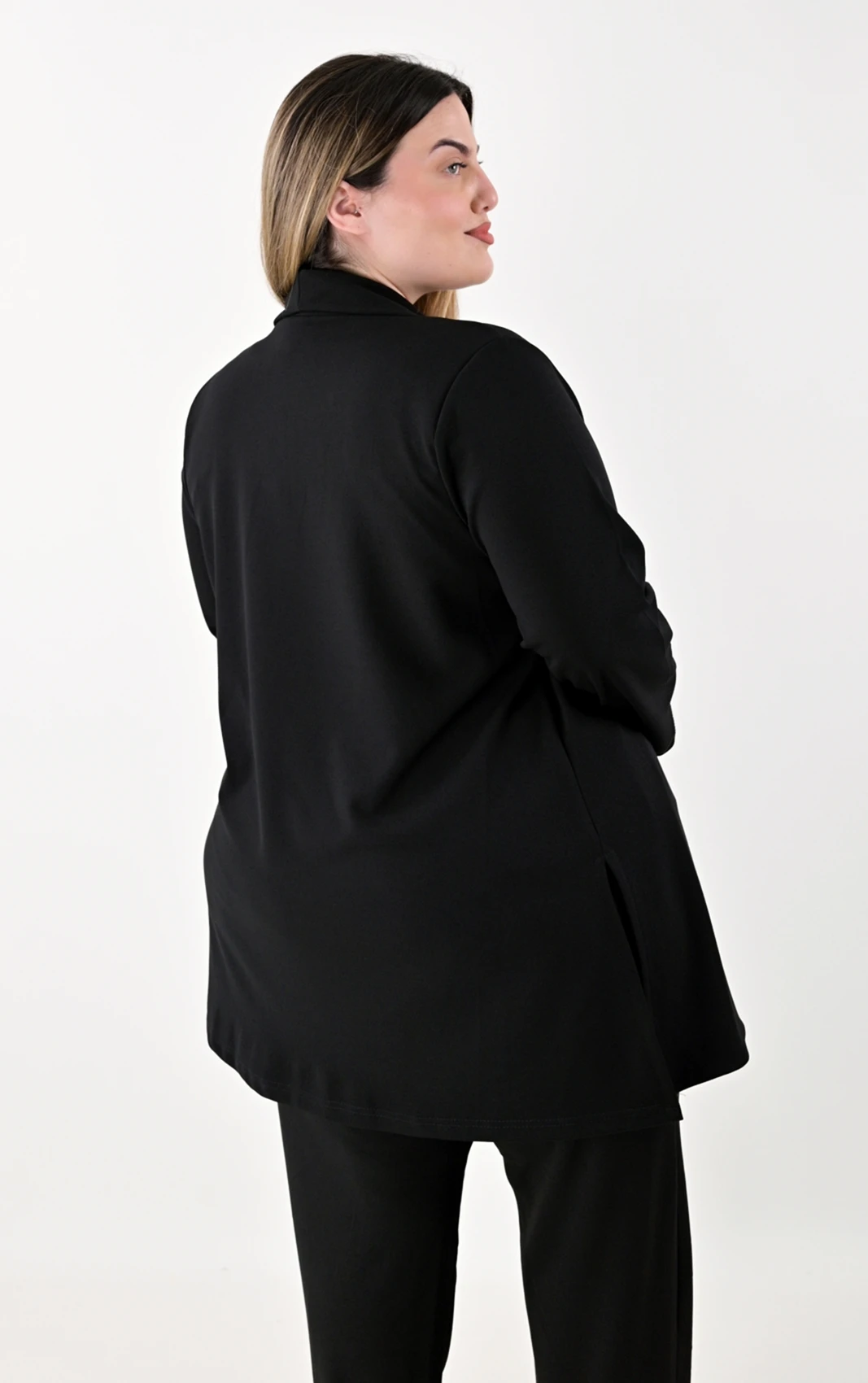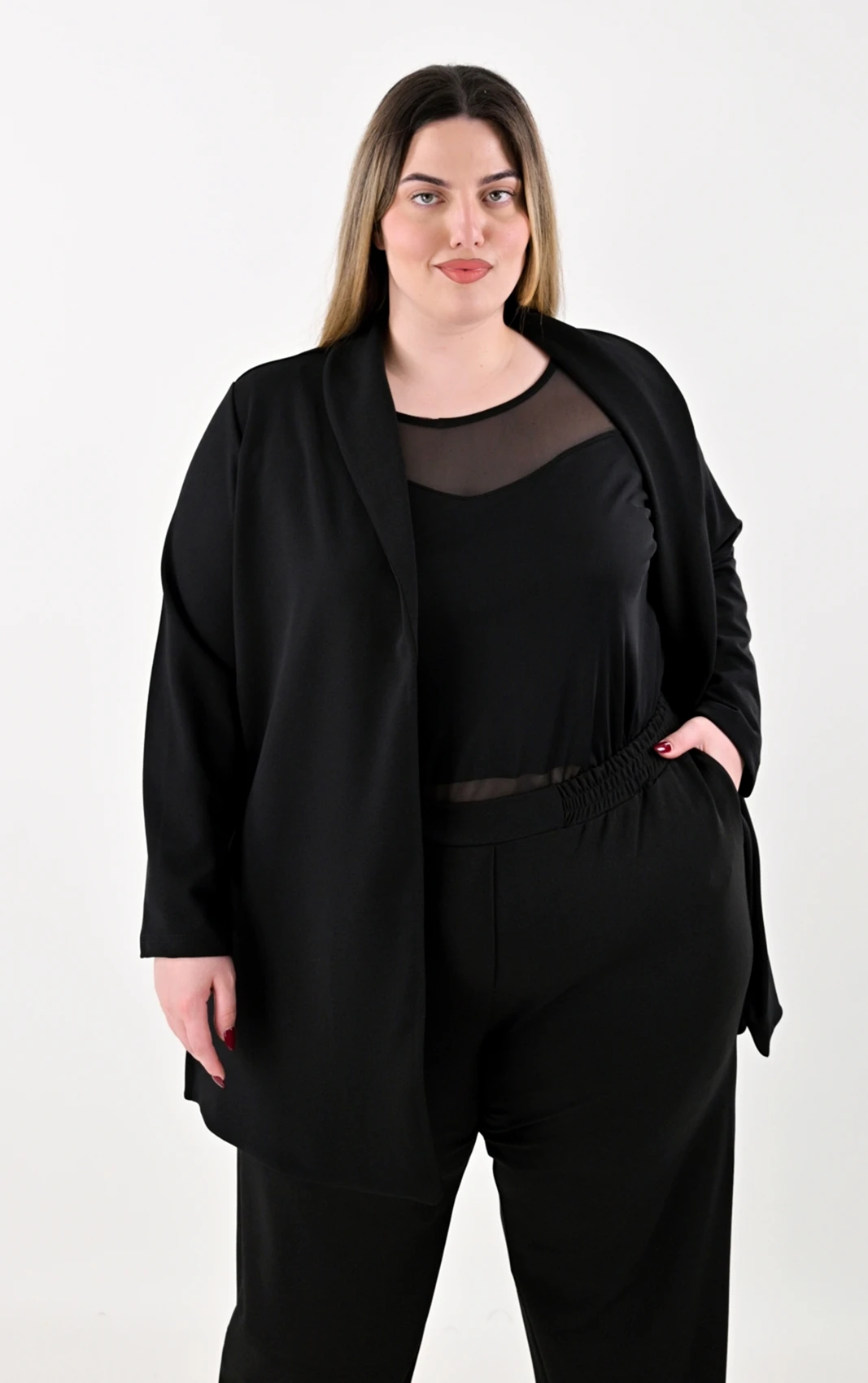 lus Size Μαύρη Ζακέτα Τύπου Σακάκι