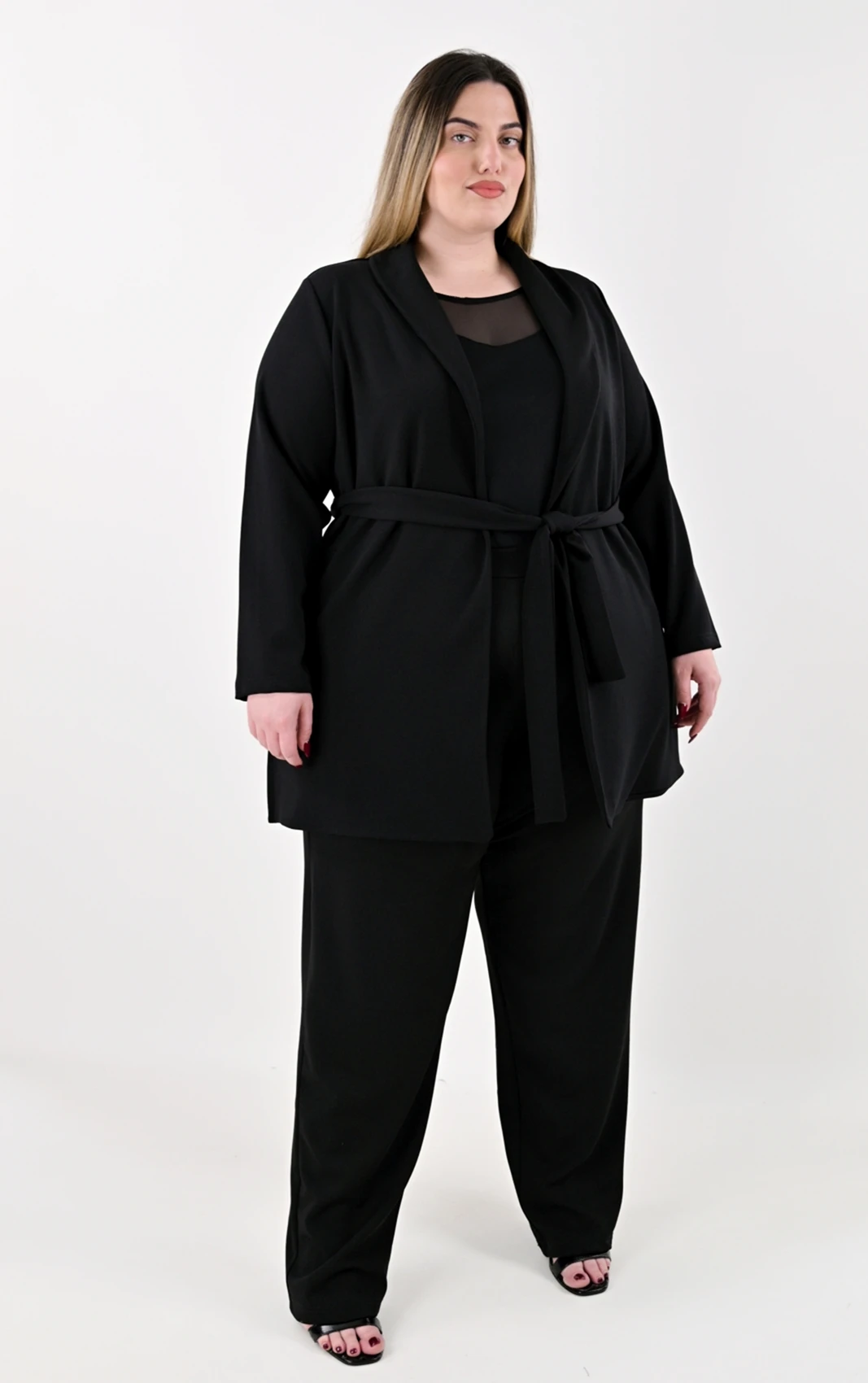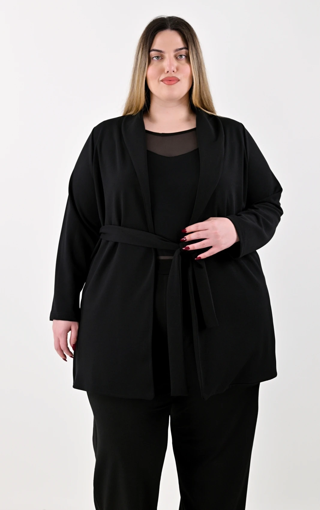 Ένα απόλυτα ευέλικτο και στυλάτο κομμάτι που συνδυάζει την άνεση μιας ζακέτας με τη μοντέρνα δομή ενός σακακιού. Κατασκευασμένο από ποιοτικό, μαλακό ύφασμα με όμορφη υφή, προσφέρει μια υπέροχη αίσθηση και άνετη εφαρμογή. Διαθέτει ένα κομψό, ανοιχτό πέτο και έρχεται με μια ασορτί, αποσπώμενη ζώνη από το ίδιο ύφασμα, επιτρέποντάς σας να το φορέσετε είτε χαλαρά ανοιχτό, είτε δεμένο για να τονίσετε τη μέση. Η μακριά, άνετη γραμμή του και τα διακριτικά πλαϊνά ανοίγματα προσφέρουν ελευθερία κινήσεων. Είναι το ιδανικό πανωφόρι για να ολοκληρώσει τόσο τα καθημερινά όσο και τα πιο προσεγμένα σας σύνολα.