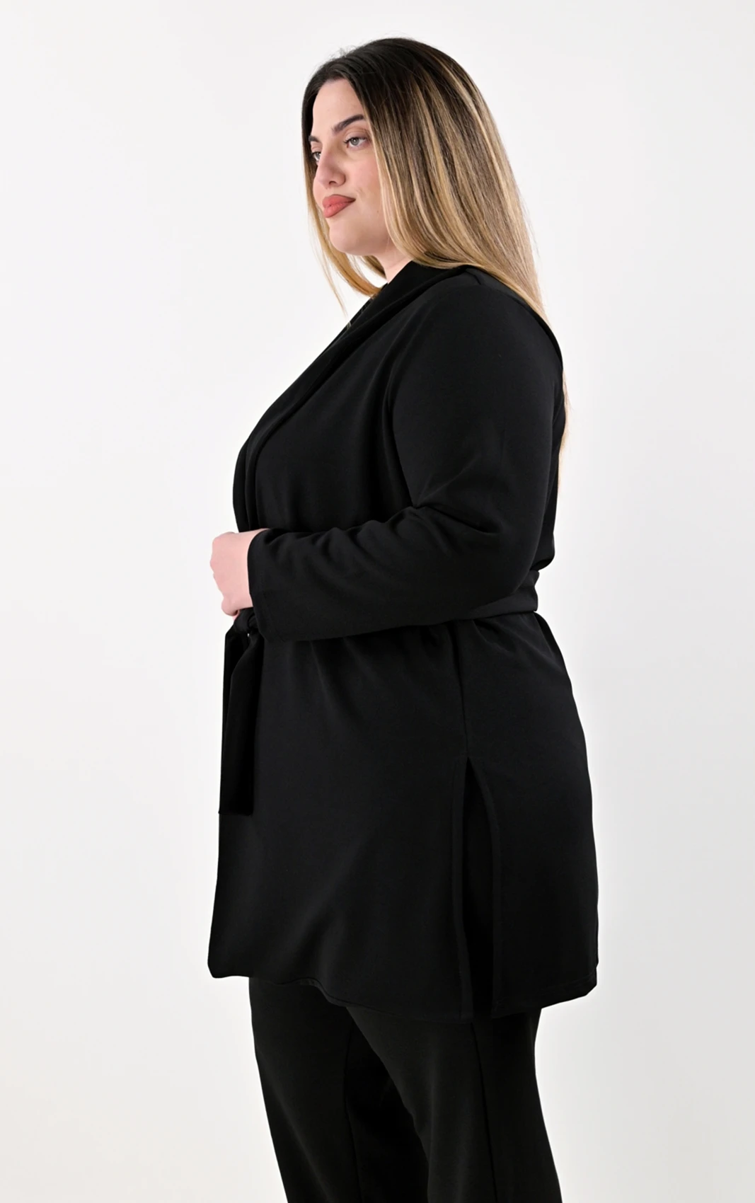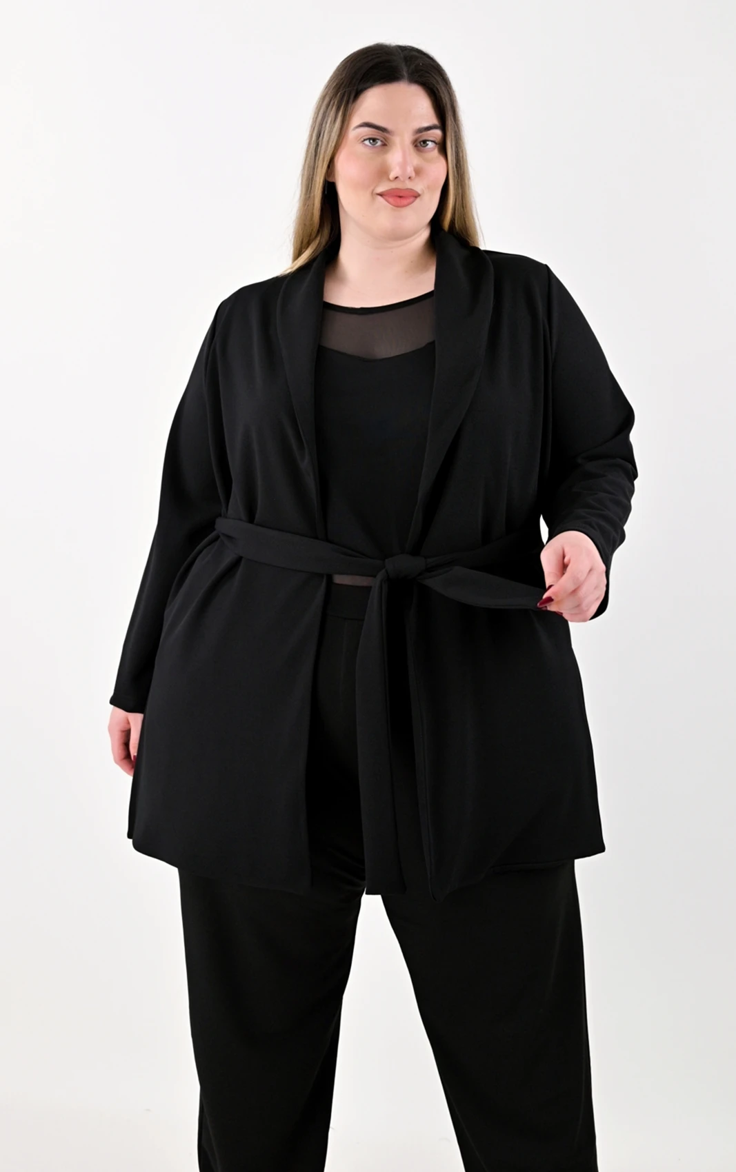 Μαύρο Σακάκι Τύπου Ζακέτα με Ζώνη