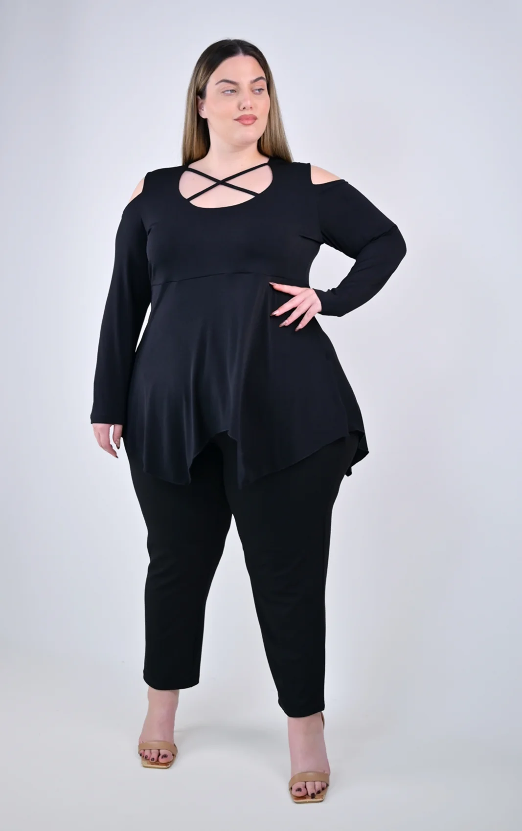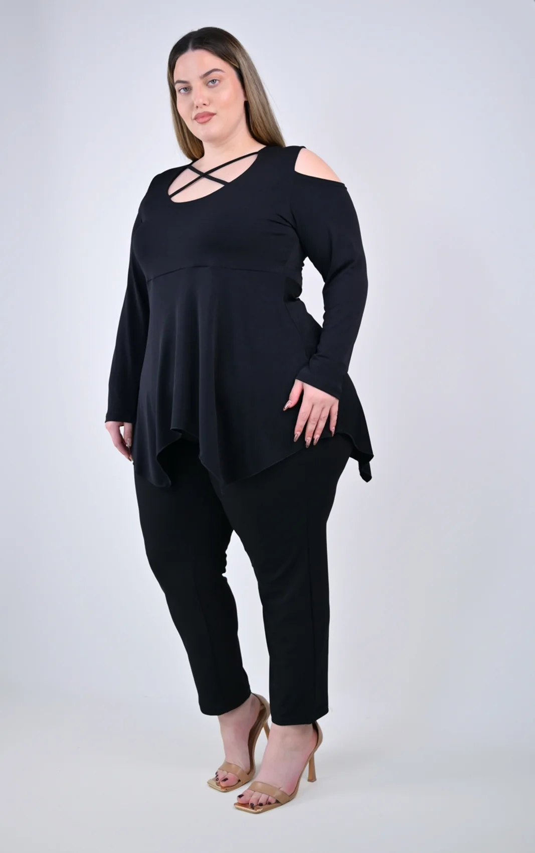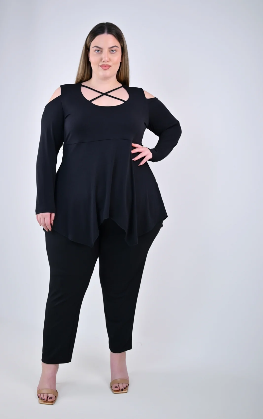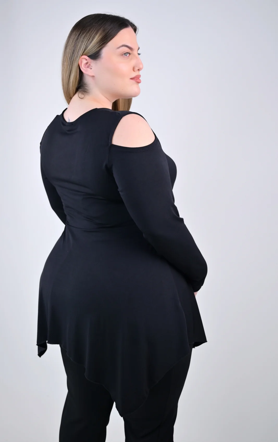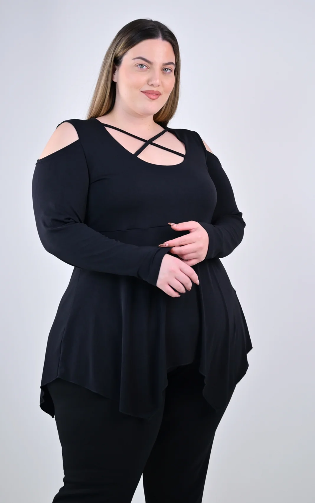 Ασύμμετρη Μαύρη Μπλούζα με Χιαστί Ντεκολτέ