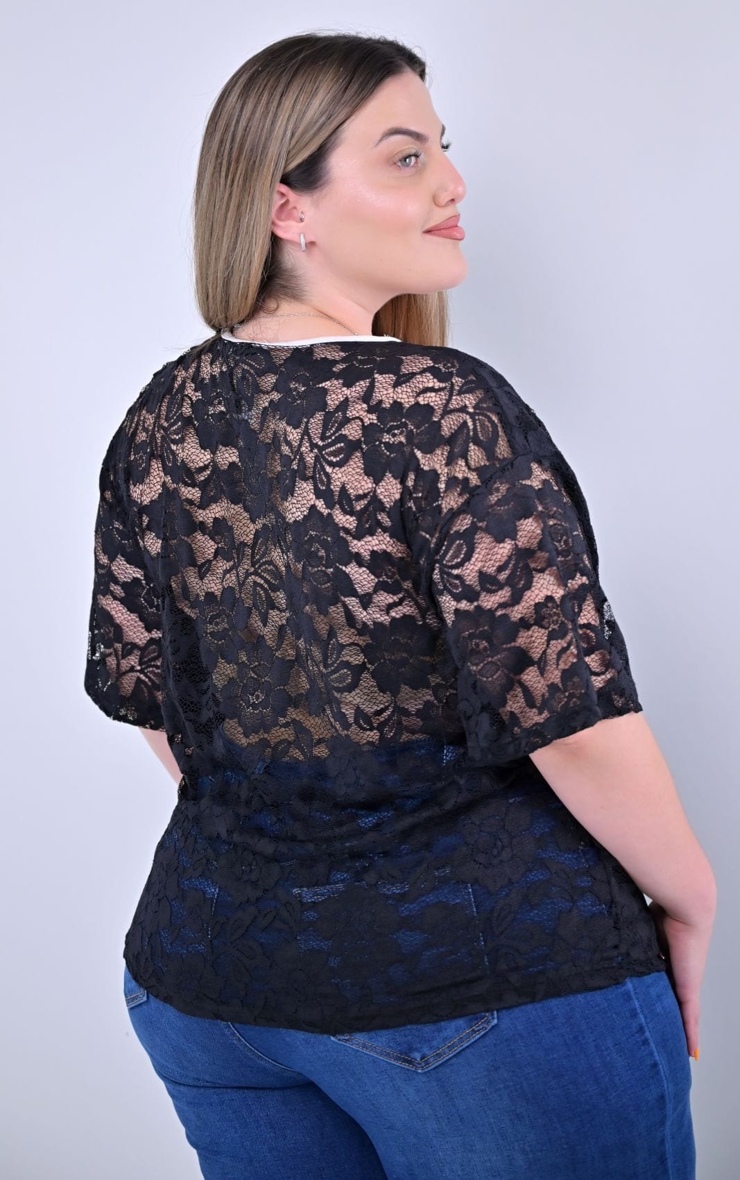 Μαύρη Μπλούζα Δαντέλα με Τύπωμα