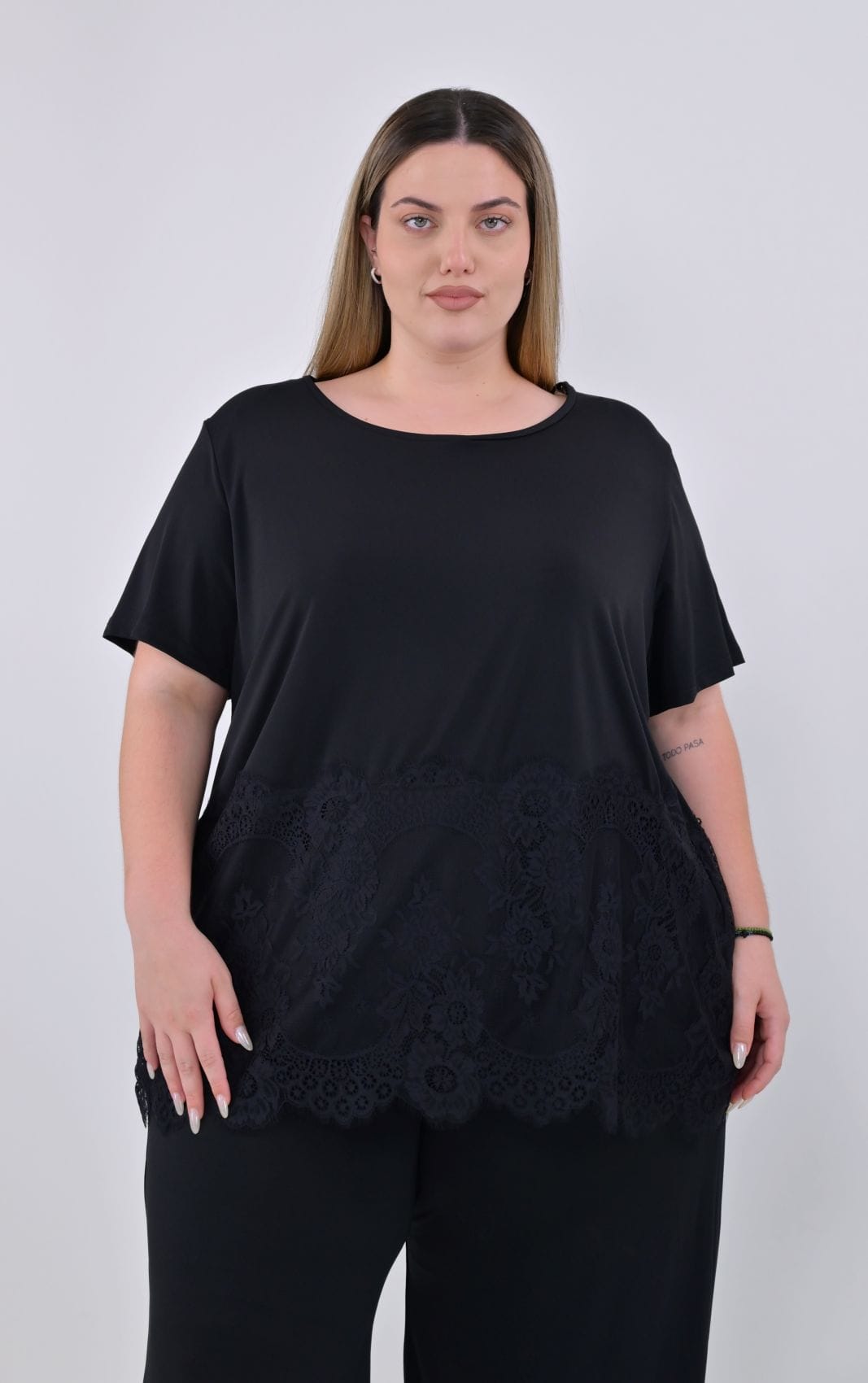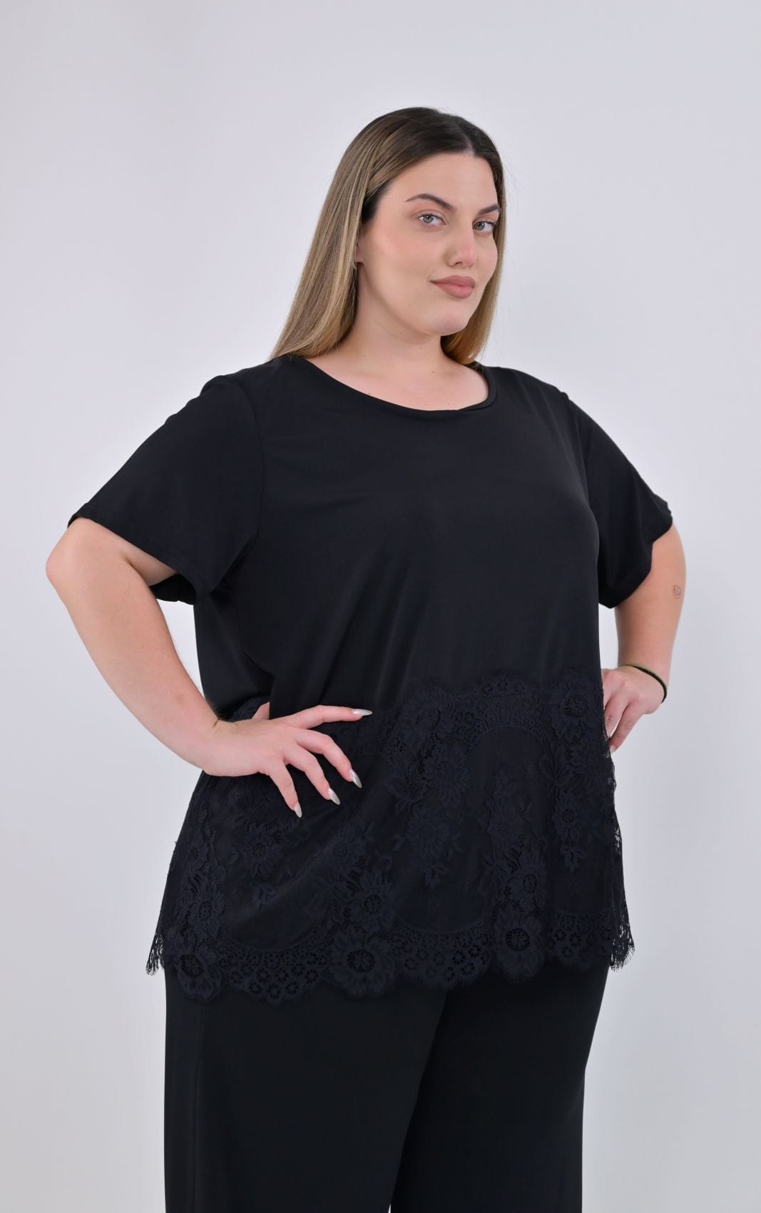 Μαύρη Μπλούζα με Μαύρη Δαντέλα