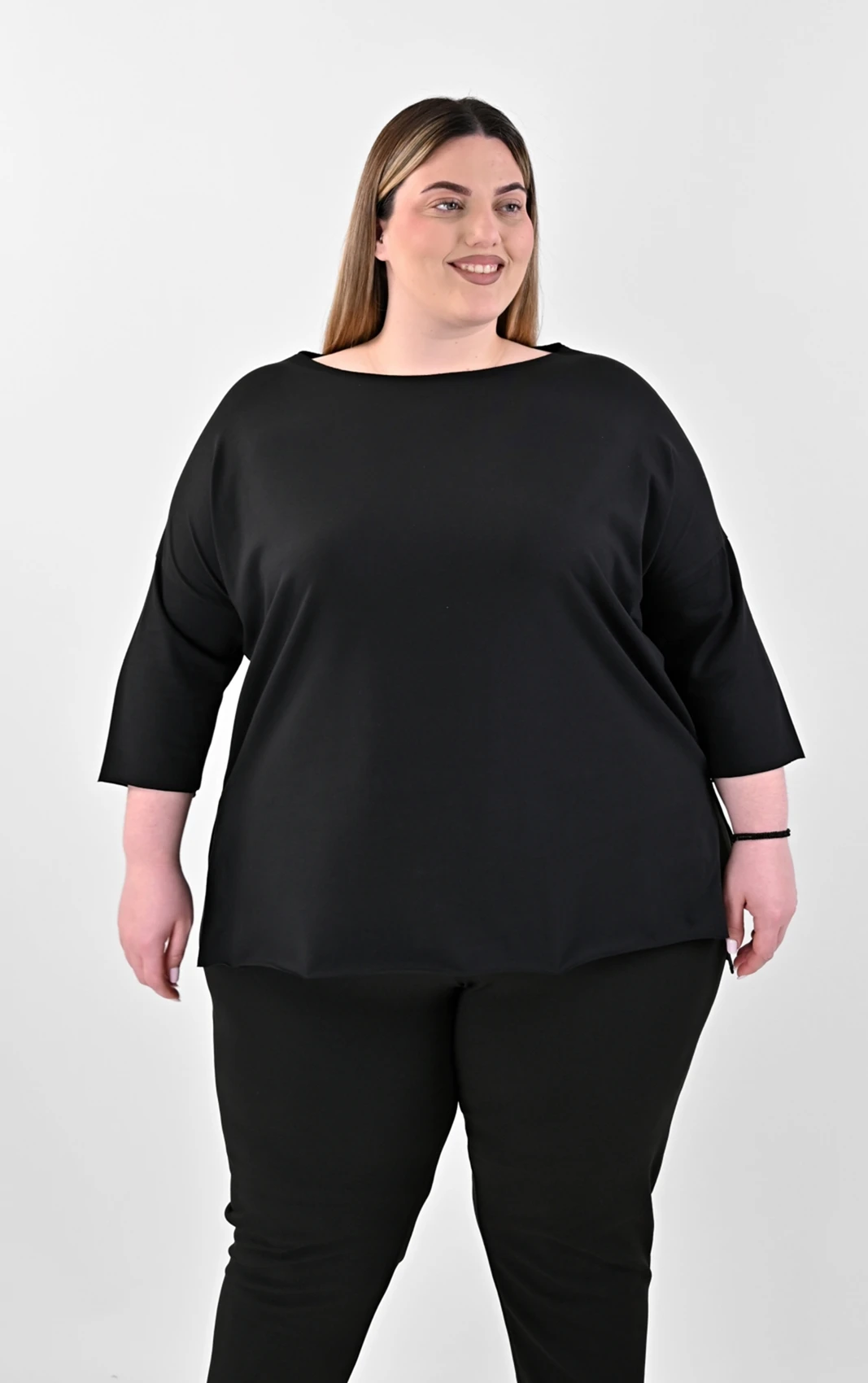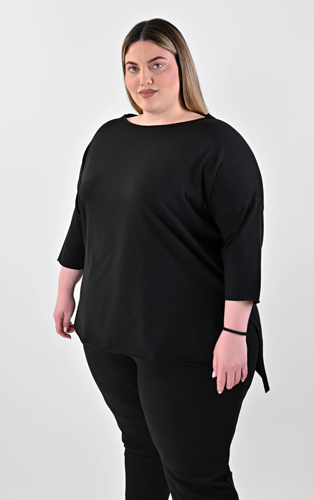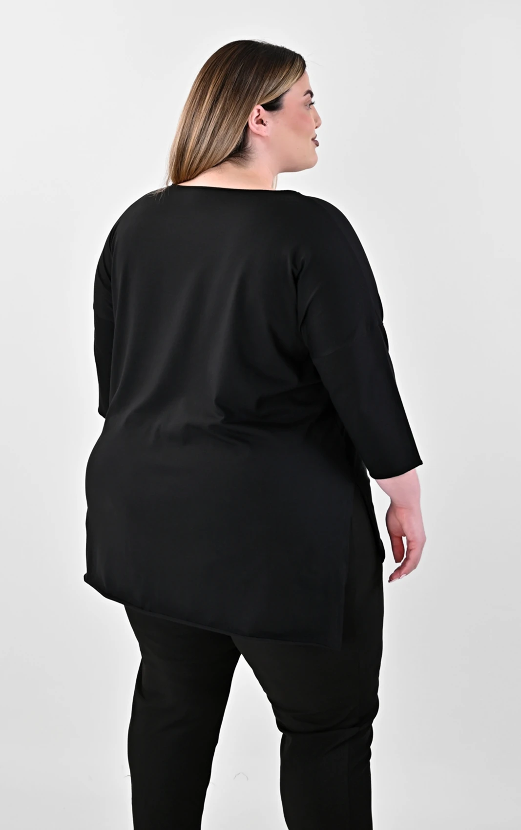 Ανανεώστε την γκαρνταρόμπα σας με αυτή την εξαιρετικά άνετη και καλόγουστη μαύρη μπλούζα. Σχεδιασμένη με έμφαση στην ελευθερία κινήσεων, διαθέτει χαλαρή γραμμή που κολακεύει κάθε σωματότυπο. Το ύφασμά της έχει απαλή υφή, εξασφαλίζοντας μια ευχάριστη αίσθηση στο δέρμα καθ’ όλη τη διάρκεια της ημέρας. Τα πλαϊνά ανοίγματα και το ασύμμετρο τελείωμα προσθέτουν μια σύγχρονη πινελιά, καθιστώντας την ιδανική επιλογή για τις καθημερινές σας δραστηριότητες αλλά και για το γραφείο.