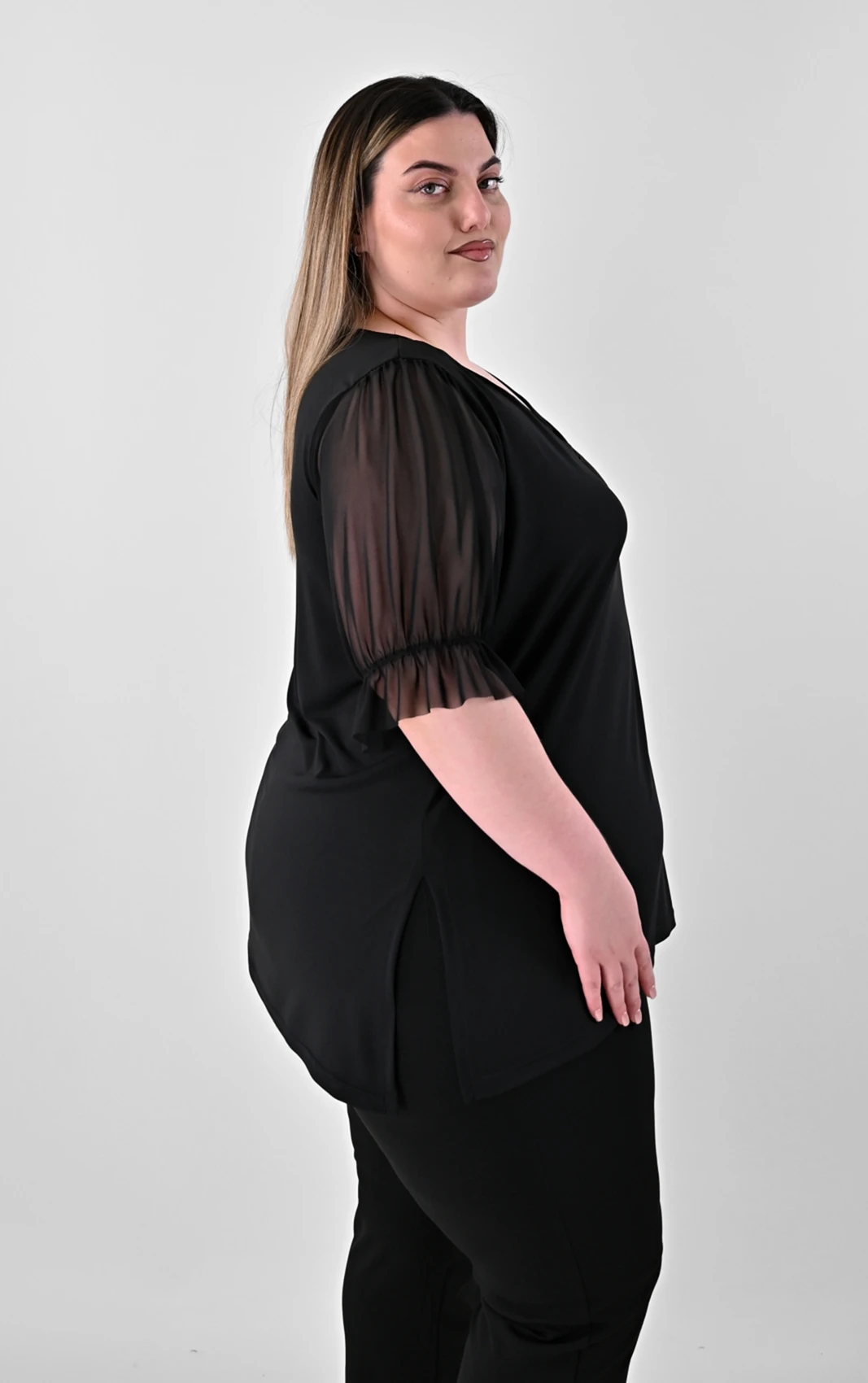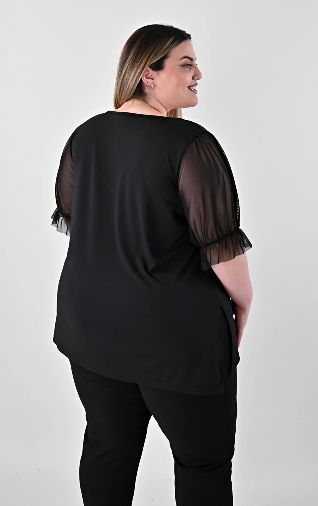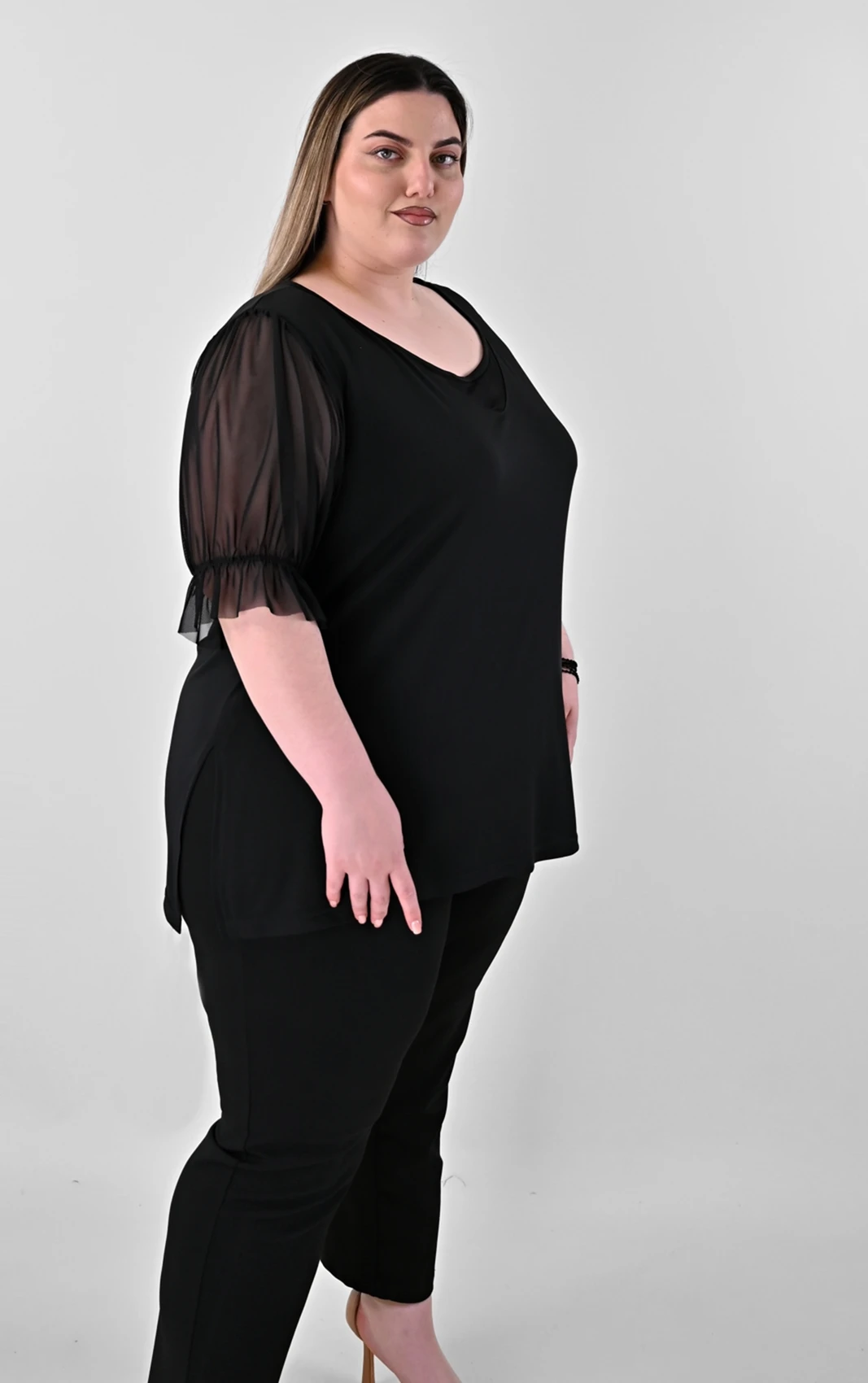 Μαύρη Μπλούζα με V Λεπτομέρεια Διαφάνειας