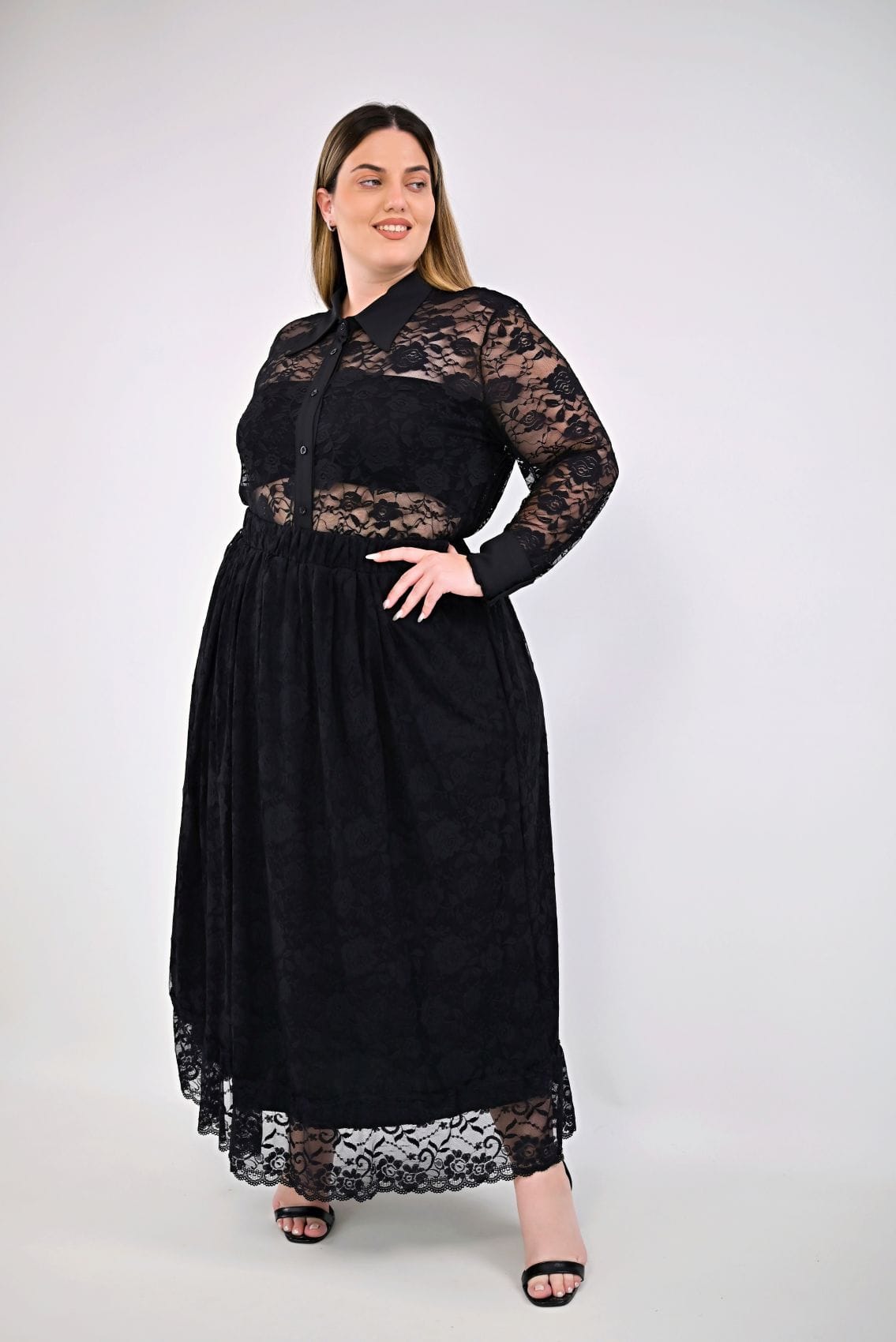 Αποκτήστε σήμερα αυτή την plus size μαύρη φούστα με δαντέλα και νιώστε αυτοπεποίθηση και άνεση σε κάθε σας εμφάνιση!