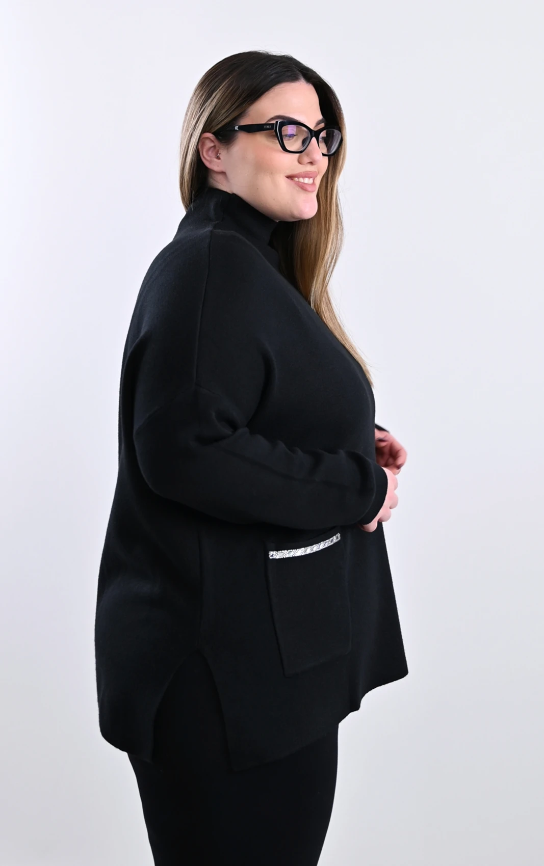 Μαύρη Πλεκτή Μπλούζα με Τσέπες