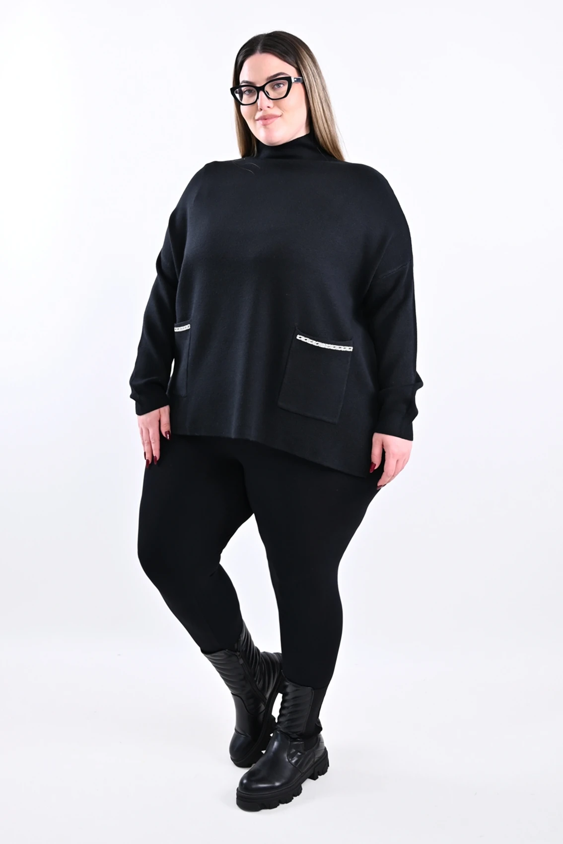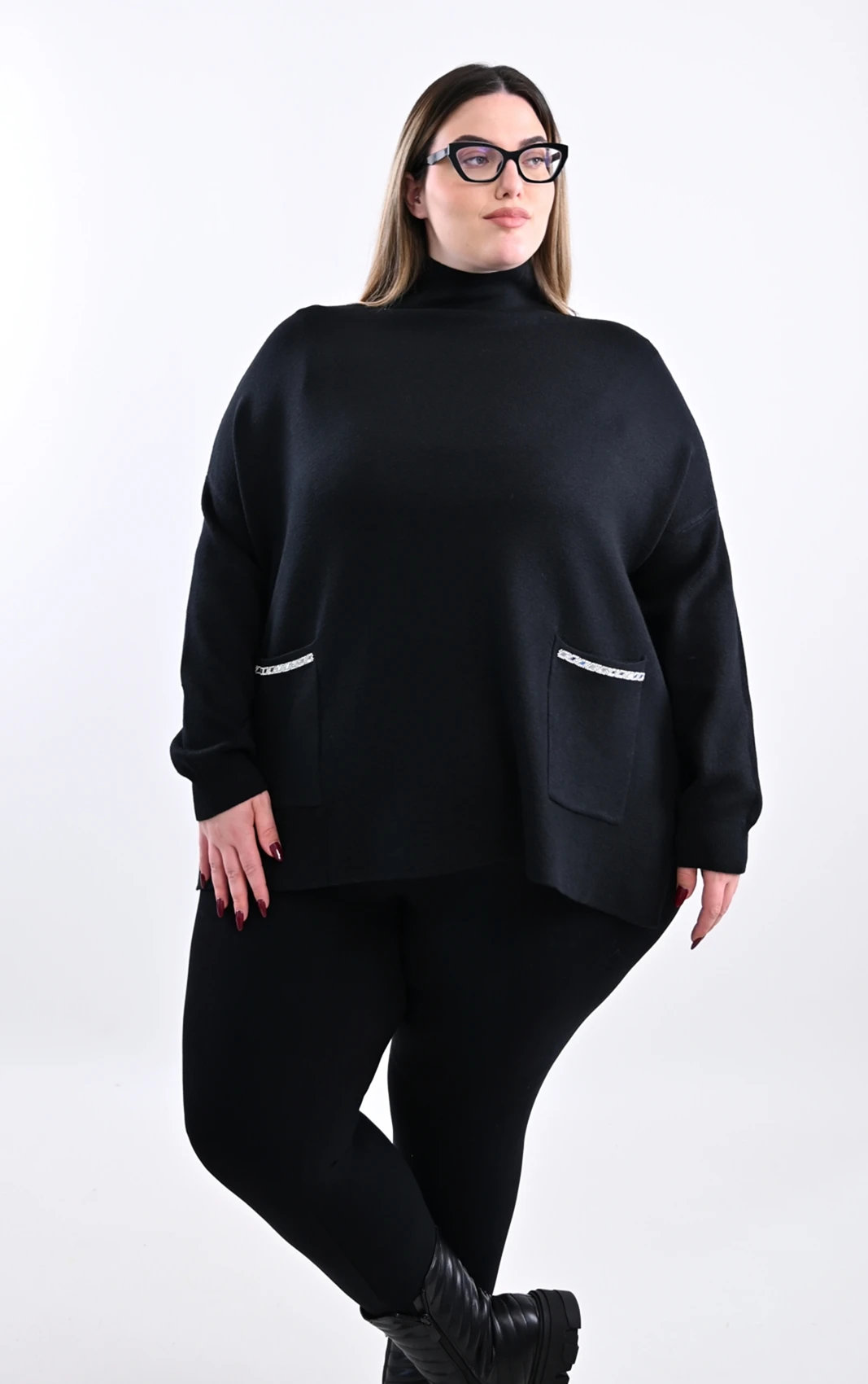 Συνδυάστε την άνεση με το μοντέρνο στυλ με αυτή την υπέροχη πλεκτή μπλούζα. Σχεδιασμένη σε μια άνετη, χαλαρή γραμμή που αγκαλιάζει όμορφα το σώμα χωρίς να το περιορίζει, είναι το ιδανικό κομμάτι για plus size σιλουέτες. Η μαλακή, ζεστή πλέξη της προσφέρει μια υπέροχη αίσθηση, κάνοντάς την την τέλεια επιλογή για τις κρύες μέρες.