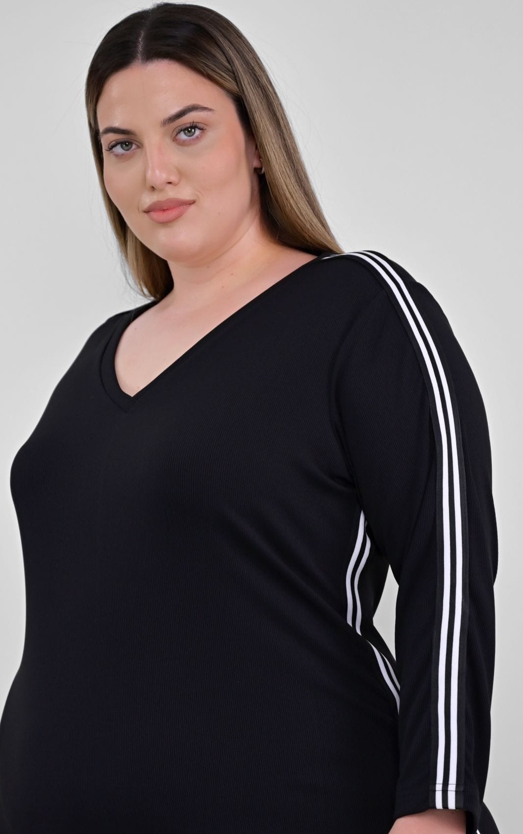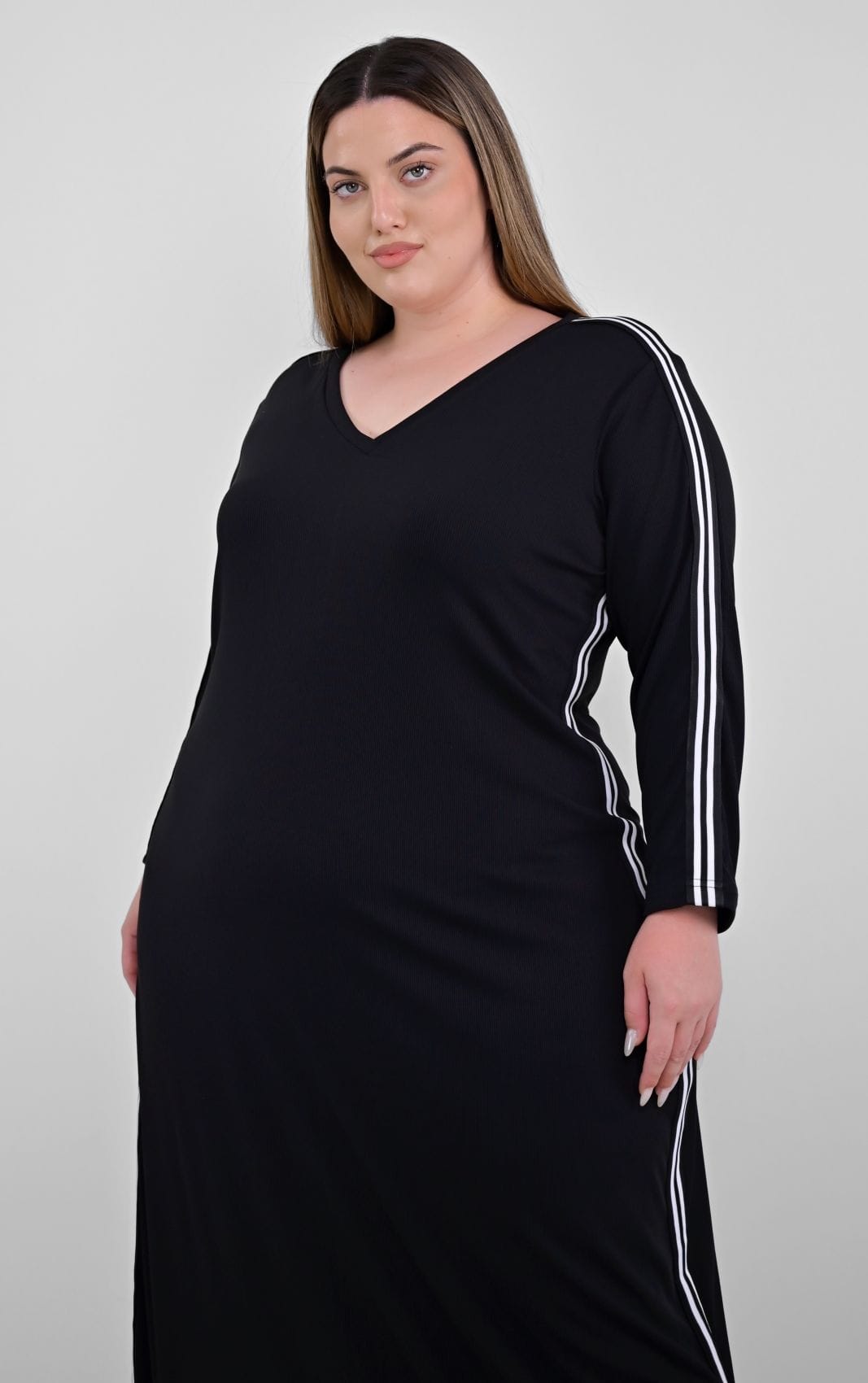 Το plus size μαύρο αθλητικό φόρεμα με ρίγα της PsX Fashion είναι ιδανικό για καθημερινές εμφανίσεις με στυλ και άνεση. Είναι φτιαγμένο από ριπ ύφασμα με έντονη ελαστικότητα, αγκαλιάζει διακριτικά τη σιλουέτα χωρίς να πιέζει και προσαρμόζεται εύκολα στις κινήσεις του σώματος.