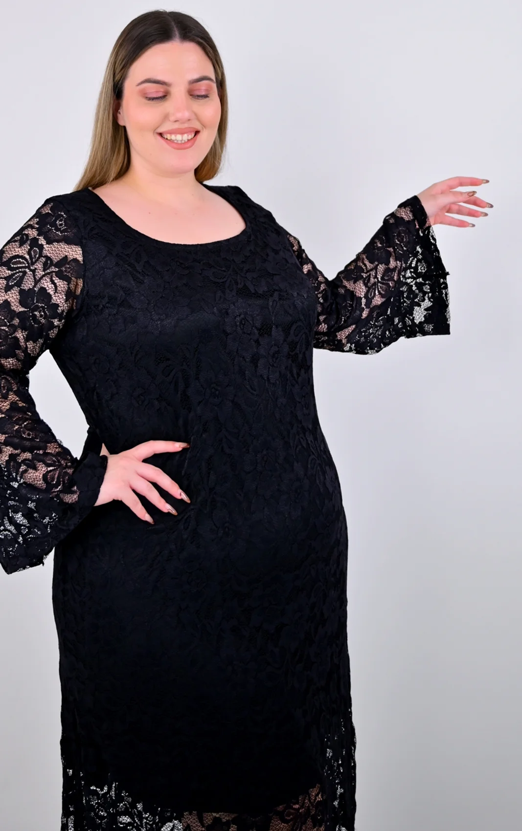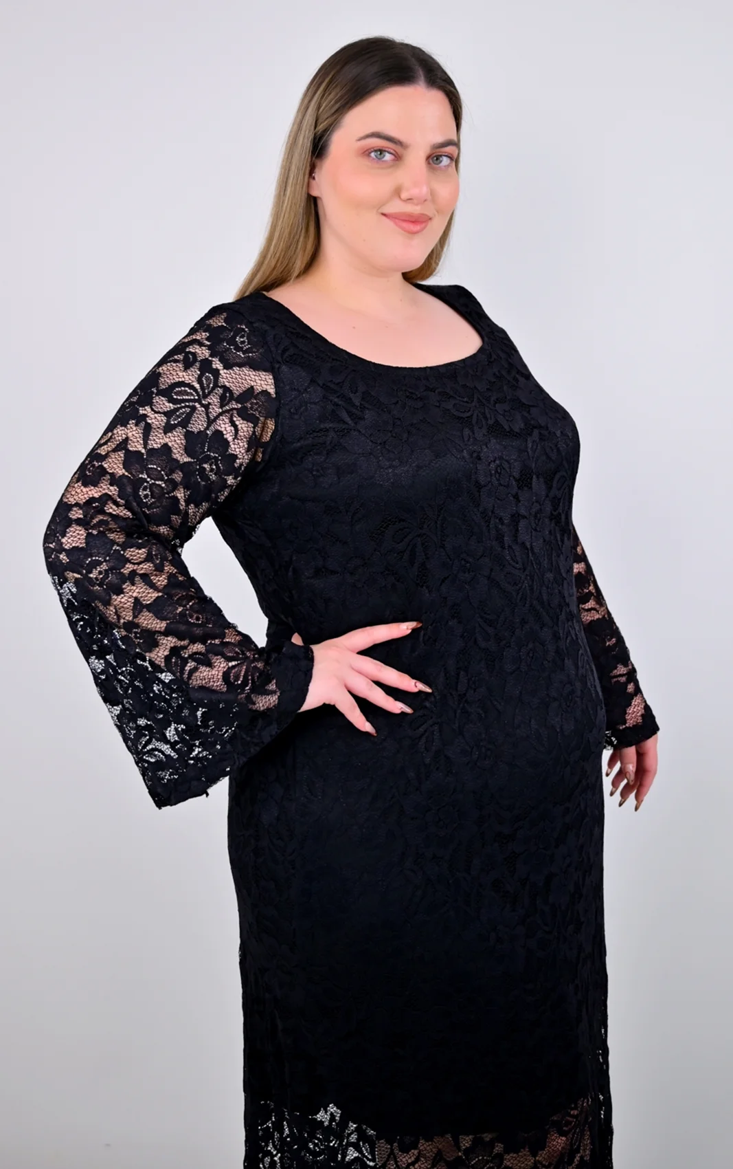 Αγκαλιάστε τη διαχρονική γοητεία της δαντέλας με αυτό το εντυπωσιακό plus size μαύρο φόρεμα. Είναι το κομμάτι που συνδυάζει τον ρομαντισμό με το μοντέρνο στυλ, σχεδιασμένο για να σας κάνει να νιώθετε υπέροχα σε κάθε επίσημη περίσταση.