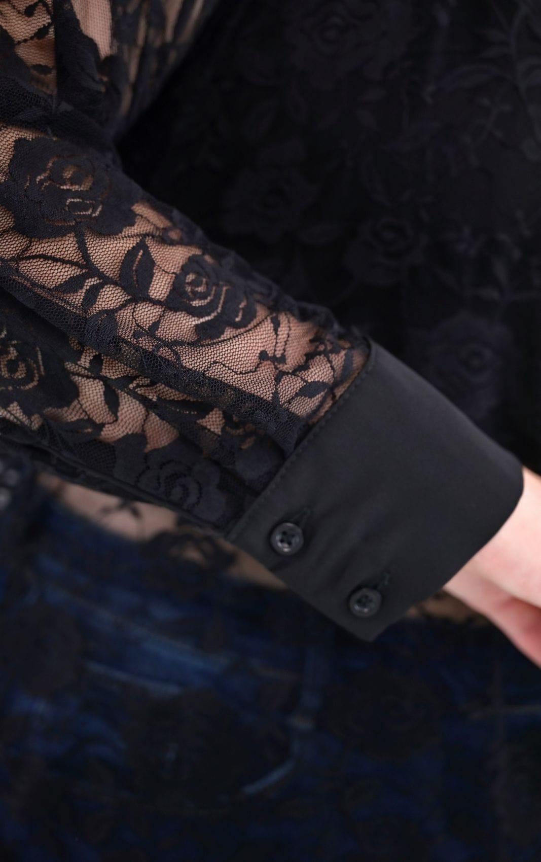 - Λεπτομέρειες από Ποιοτική Δαντέλα: Προσδίδουν μια αίσθηση φινέτσας και αναβαθμίζουν το κλασικό μαύρο πουκάμισο.