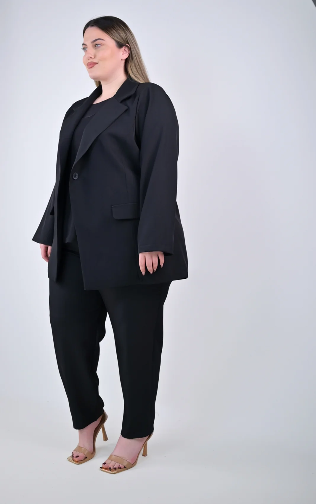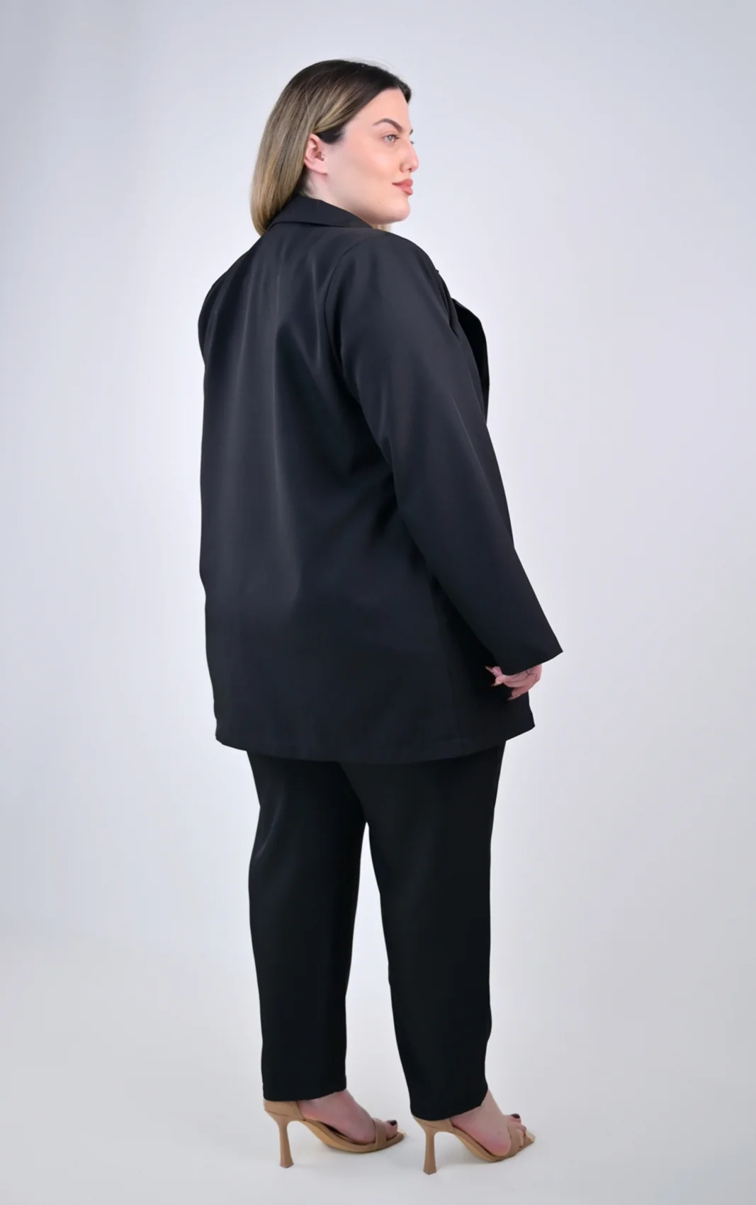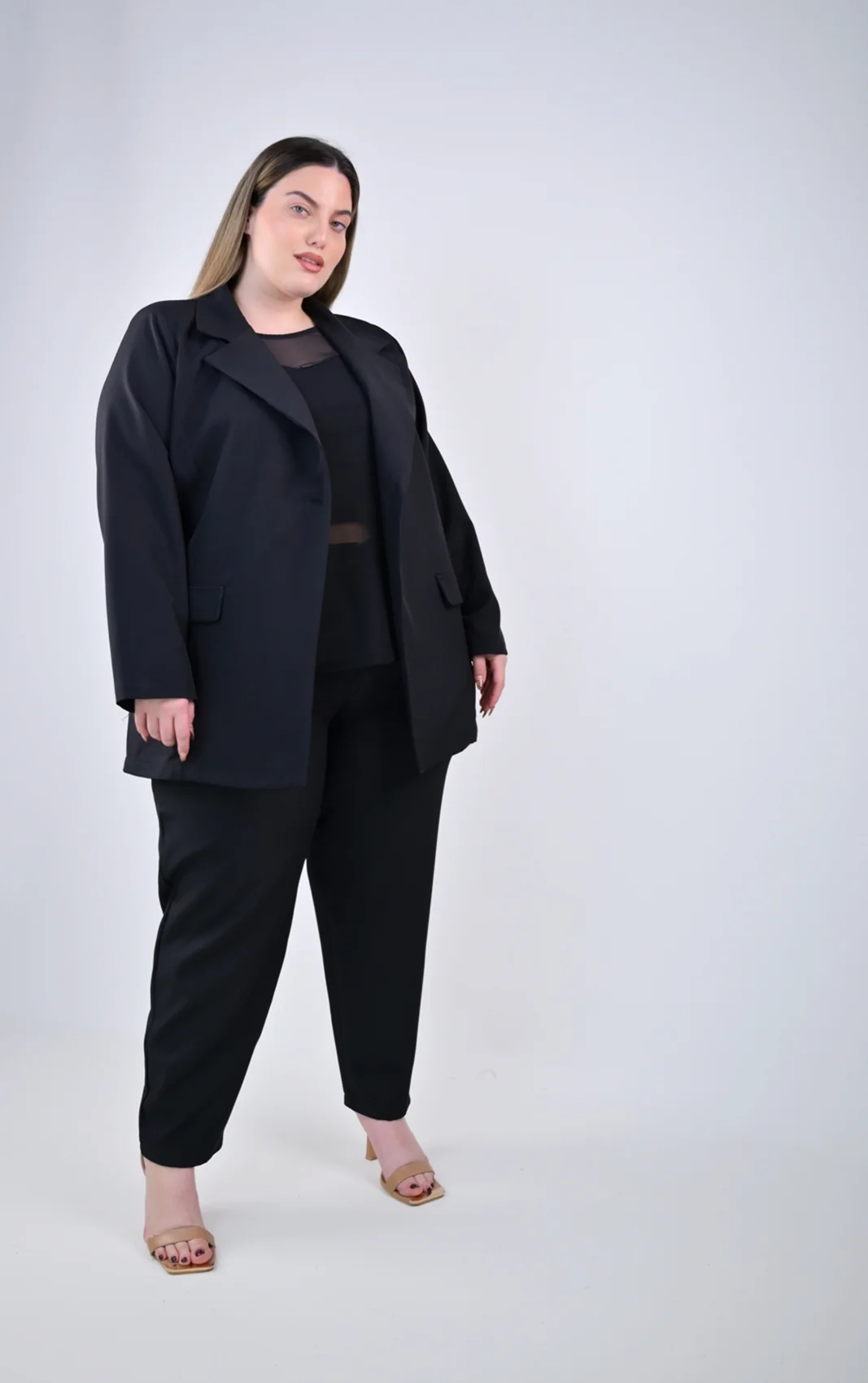 Αναβαθμίστε αμέσως την γκαρνταρόμπας σας με αυτό το plus size μαύρο σακάκι, το απόλυτο σύμβολο δυναμικού στυλ. Σχεδιασμένο για να σας συνοδεύει από τις επαγγελματικές συναντήσεις μέχρι τις χαλαρές βόλτες, προσφέρει την τέλεια ισορροπία μεταξύ άνετης εφαρμογής και προσεγμένης εμφάνισης, χαρίζοντας αυτοπεποίθηση σε κάθε σας βήμα.