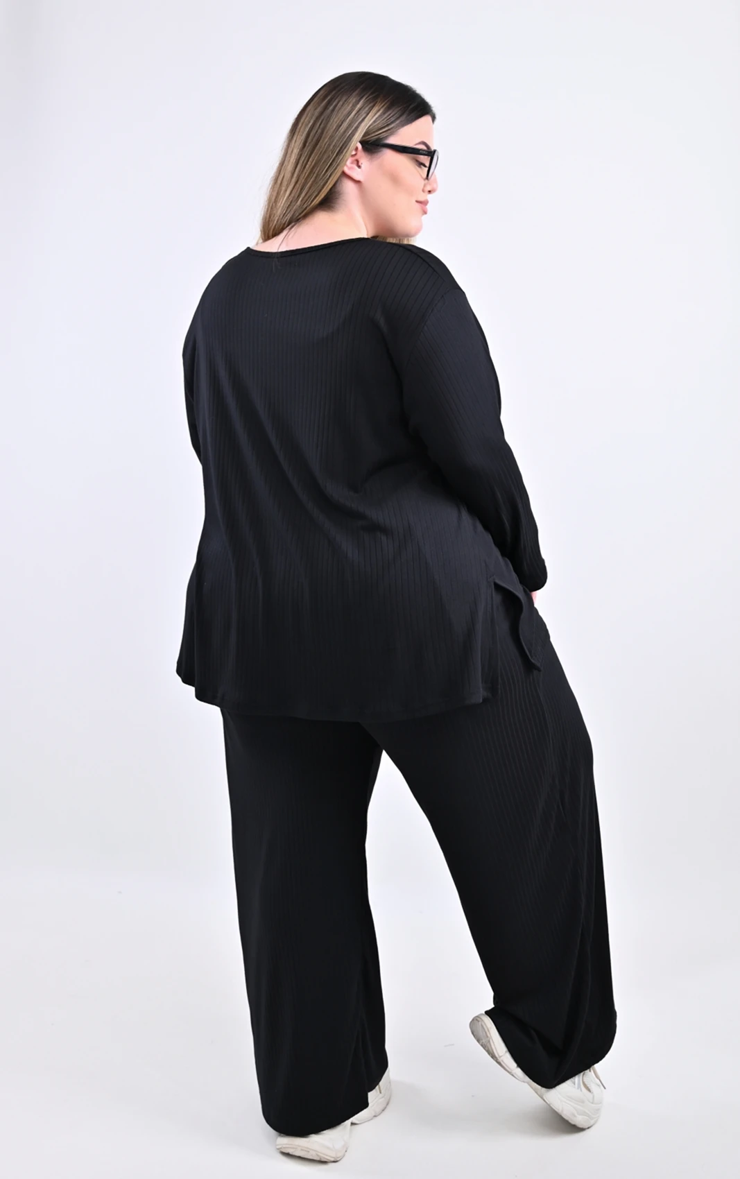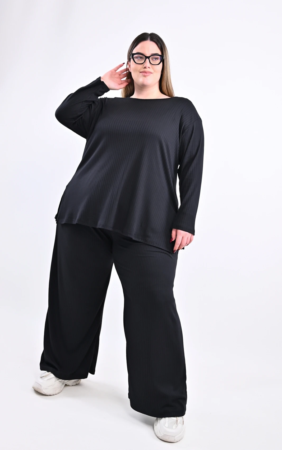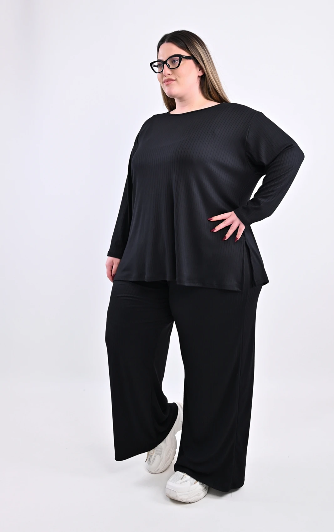 Ανακαλύψτε αυτό το υπέροχο σετ δύο τεμαχίων. Σχεδιασμένο για να προσφέρει μια χαλαρή και ταυτόχρονα καλόγουστη εμφάνιση, είναι η ιδανική επιλογή για την γυναίκα που θέλει να νιώθει άνετα και όμορφα όλη μέρα. Η απαλή, ριπ πλέξη του έχει υπέροχη υφή και κίνηση, ενώ το διαχρονικό μαύρο χρώμα του το καθιστά ένα απόλυτα ευέλικτο κομμάτι-κλειδί.