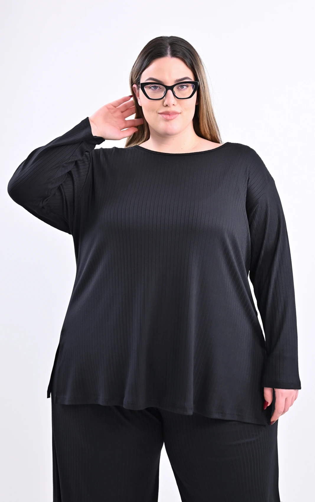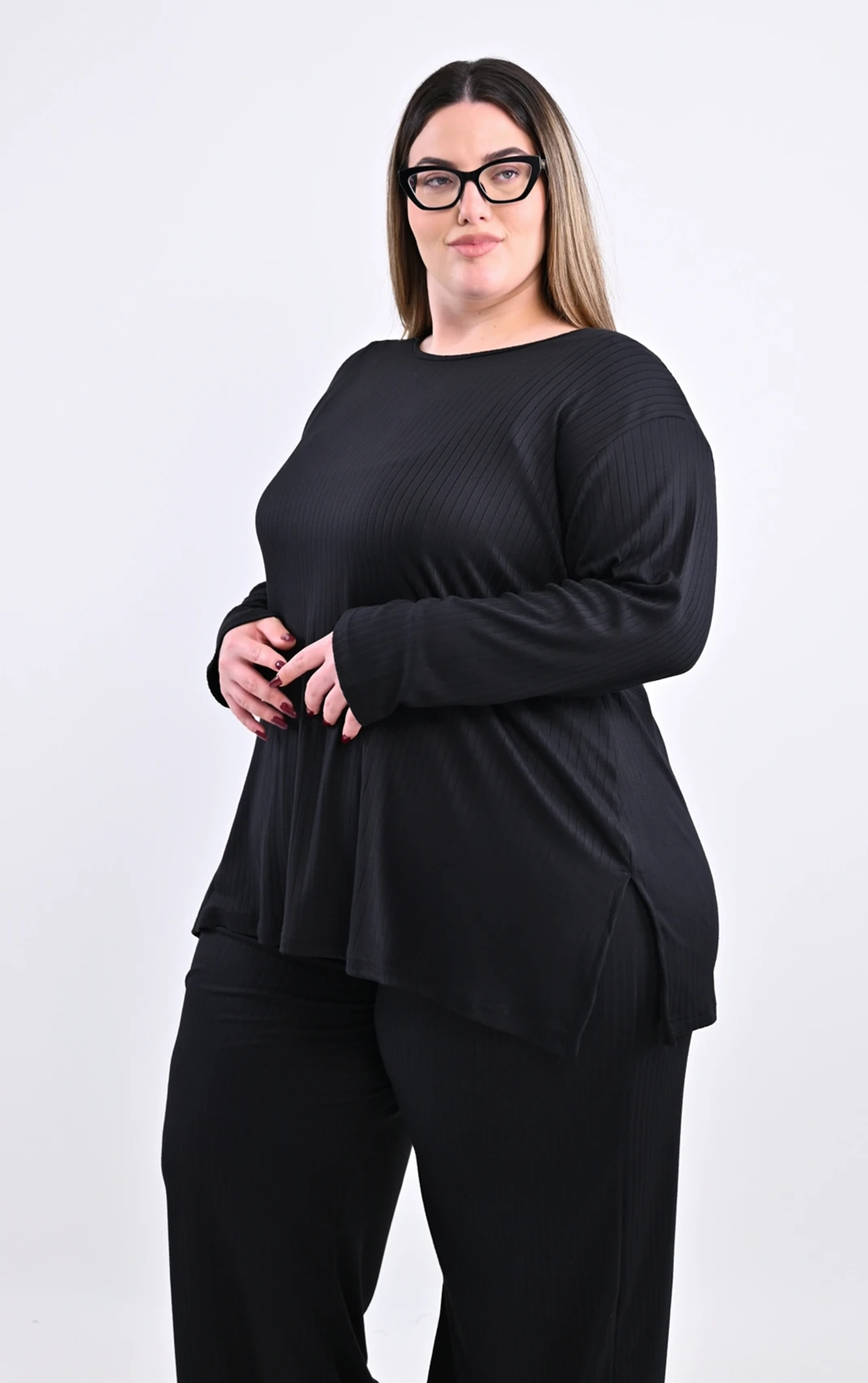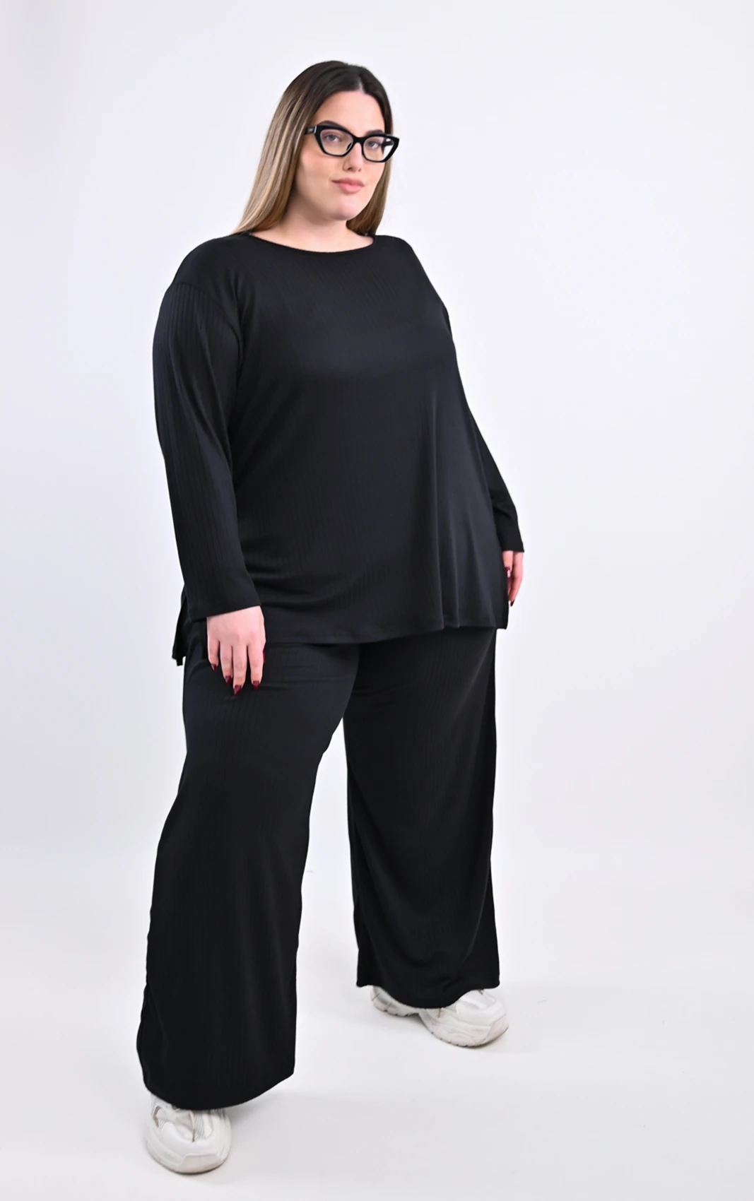 Ανακαλύψτε αυτό το υπέροχο σετ δύο τεμαχίων. Σχεδιασμένο για να προσφέρει μια χαλαρή και ταυτόχρονα καλόγουστη εμφάνιση, είναι η ιδανική επιλογή για την γυναίκα που θέλει να νιώθει άνετα και όμορφα όλη μέρα. Η απαλή, ριπ πλέξη του έχει υπέροχη υφή και κίνηση, ενώ το διαχρονικό μαύρο χρώμα του το καθιστά ένα απόλυτα ευέλικτο κομμάτι-κλειδί.