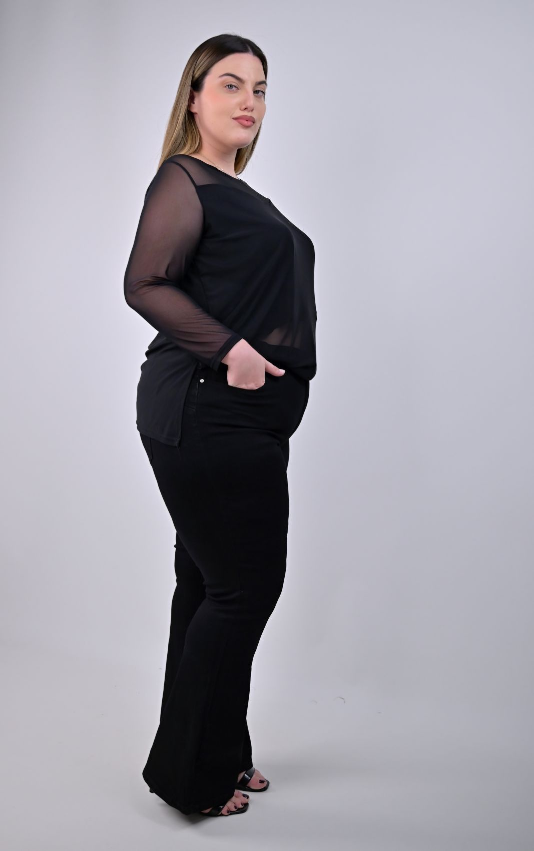 Ιδέες styling για το plus size μαύρο τζιν καμπάνα