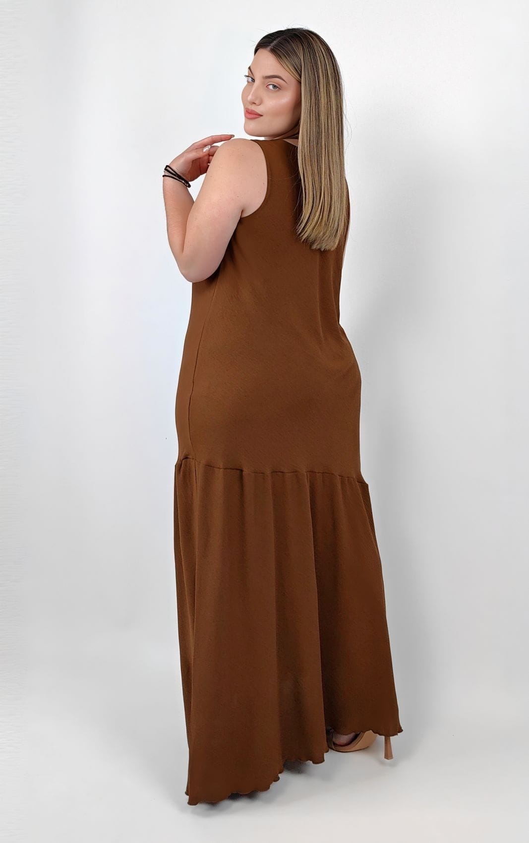 Μάξι Φόρεμα Καφέ Αμάνικο